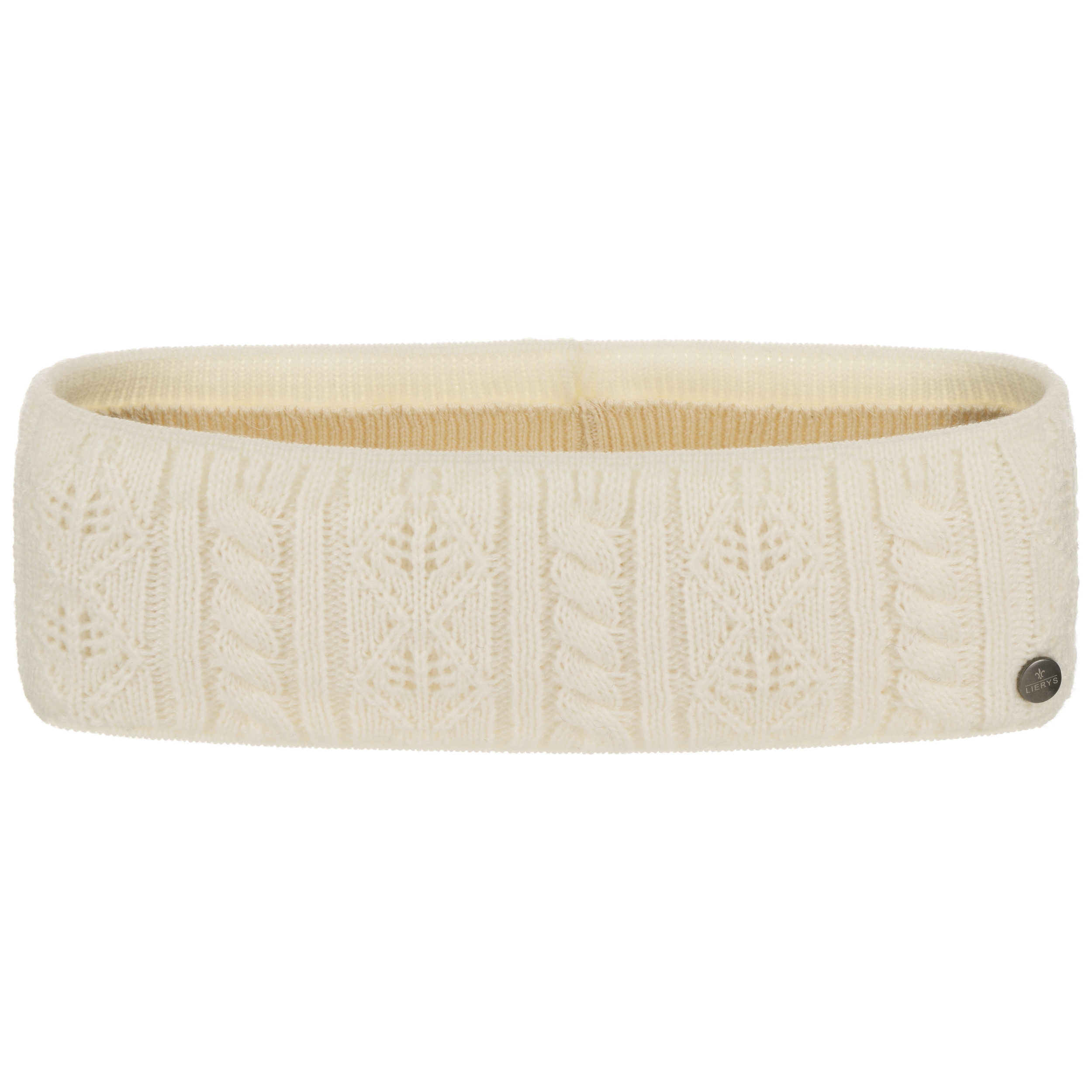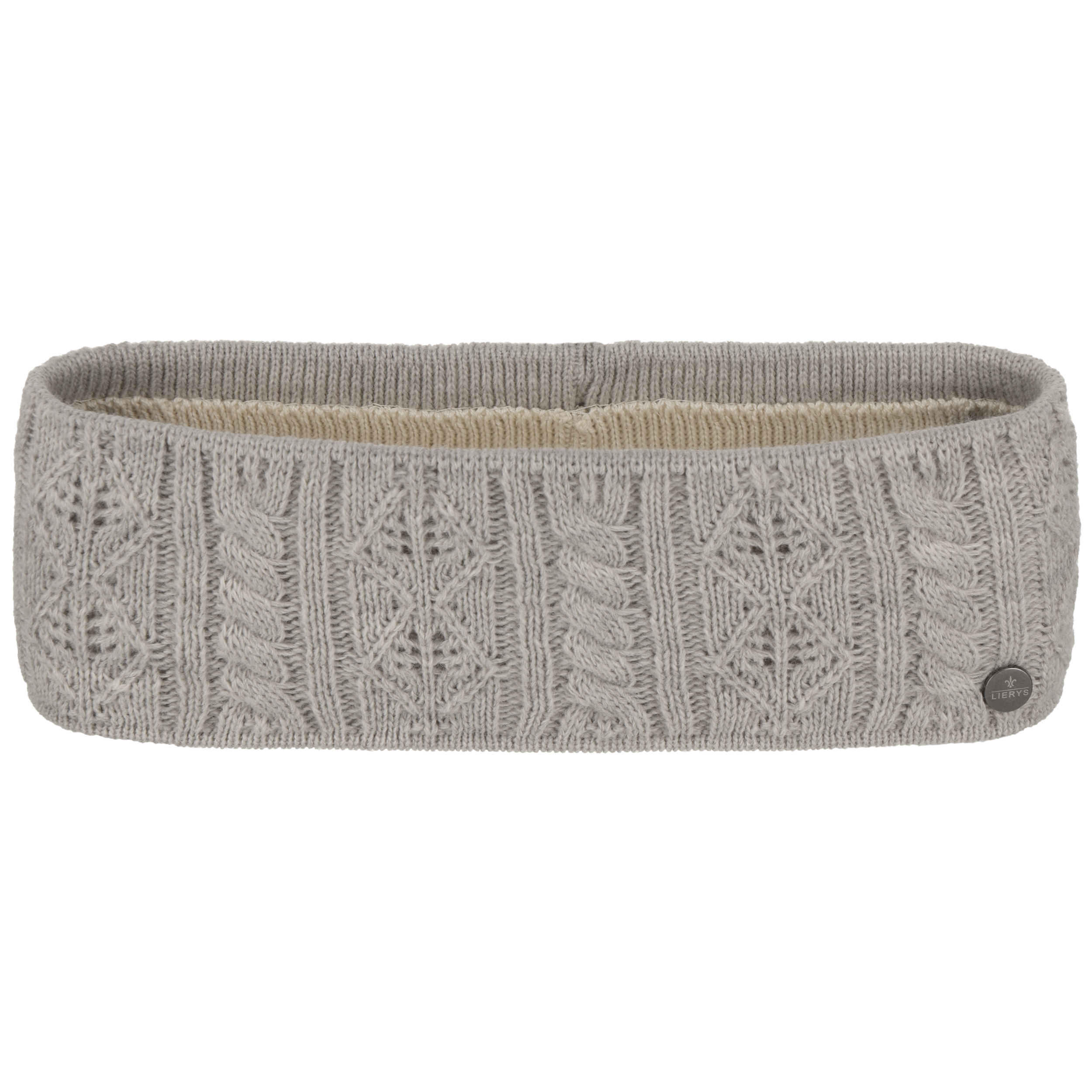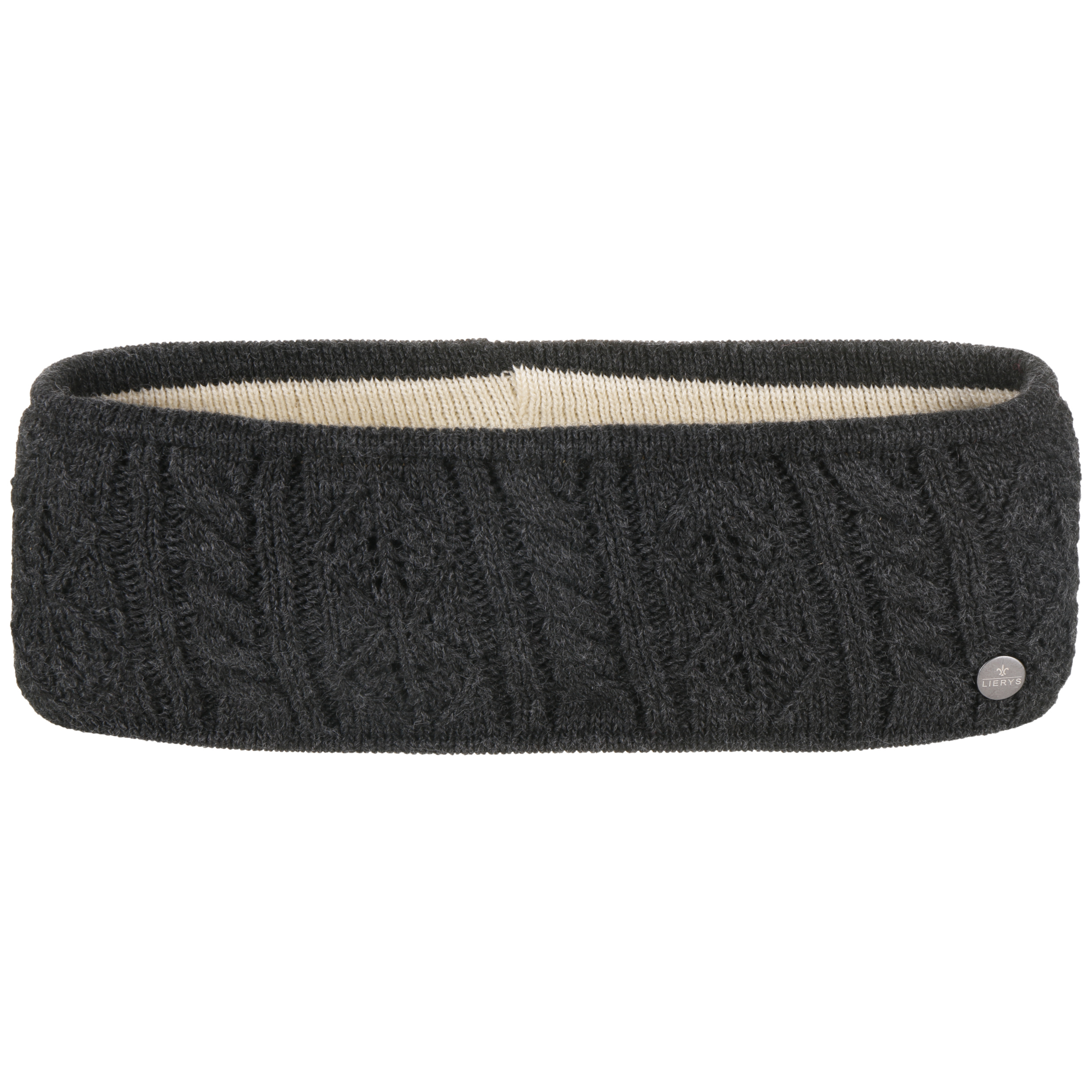 This headband from Lierys attracts attention with its intricate knitted pattern. A classic cable knit and delicate diamonds alternate with one another. The plain-coloured design harmoniously matches winter outfits. A lining of 100% natural cotton with breathable and skin-friendly properties ensures the item is very comfortable to wear.