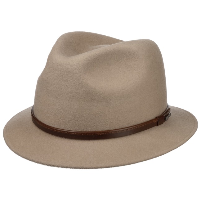 Since 1865, the name of John B. Stetson has been a synonym for best quality cowboy and Western hats. With the increasingly popular VitaFelt and VitaStraw collections, the U.S. brand has become pioneer of lightweight, water repellent and packable headwear. In the meantime, Stetson manufactures a wide range of first-class styles: army and baseball caps, flat hats, docker caps, beanies, trilbies and cowboy hats in many different designs.- Scotstown Traveller Wool Hat by Stetson - beige 1