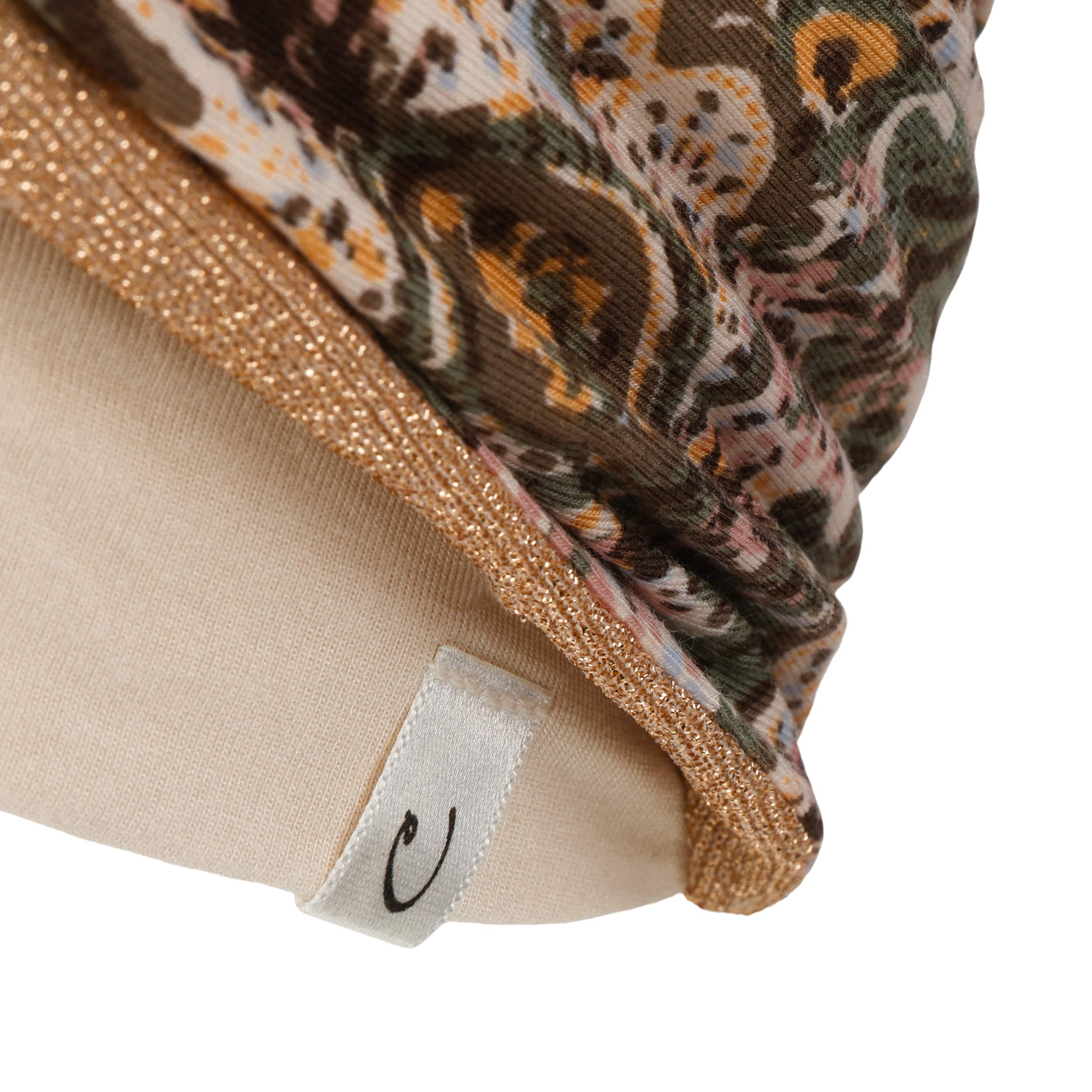 Christine Headwear presents this light linen turban with a tropical blossom design that feels wonderfully soft against the skin. The breathable linen blend with elastane ensures a comfortable fit, while the sewn-in stretch band allows the turban to sit securely and adapt gently to the head. A soft viscose lining with elastane provides extra comfort for sensitive scalps during warmer days.