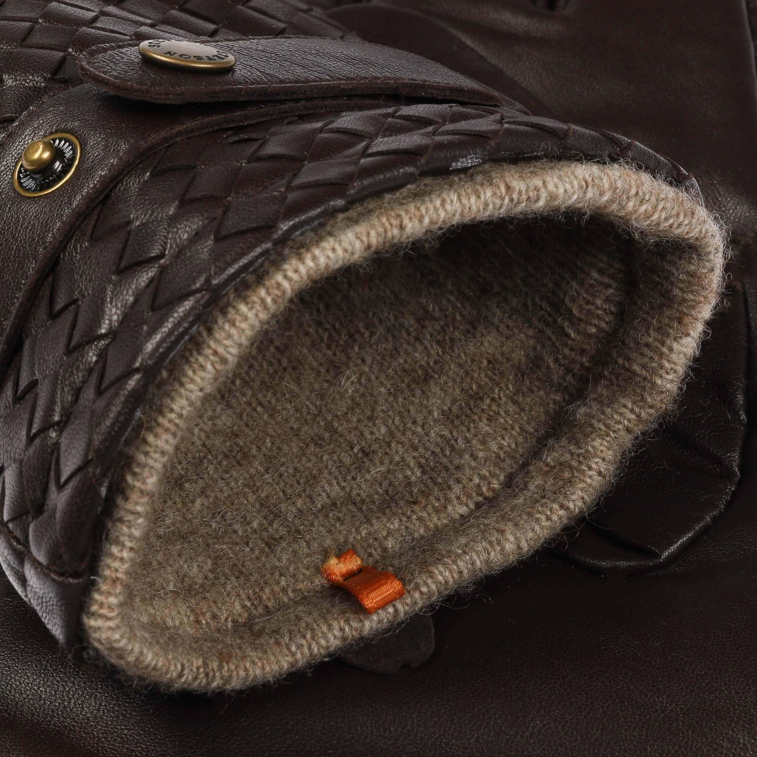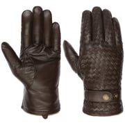 In these gloves by Stetson, the fingers are free to move and yet they stay cosy and warm. On the outside, leather in handmade quality ensures protection and a smooth grip; on the inside, the lining caresses your hand with a noticeable amount of wool content. Even visually, these gloves score extra points with a woven look on the back of the hands, as well as straps with press studs at the wrist, which serve both to regulate the size and round off the elegant look with brand embossing.