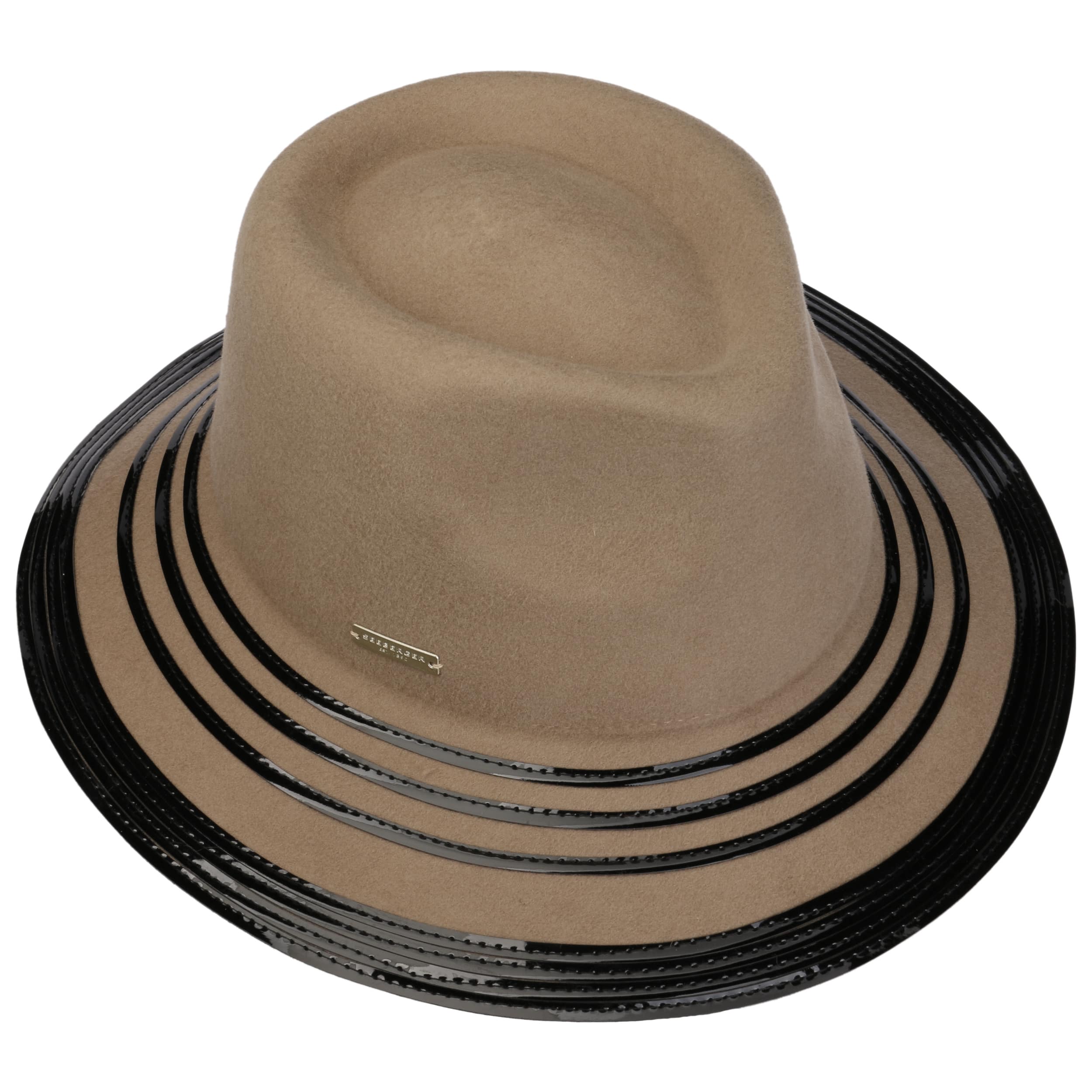 The family-owned entreprise from Allgaeu established in 1890 is known for stylish and timeless women's headwear. Using sophisticated fabrics pleasant to wear, Seeberger stands for very feminine, eye-catching women's hats: winter caps, cloth hats as well as different types of baker boy hats, broadbrimmed hats and berets.- Shiny Details Fedora Wool Hat by Seeberger - black 1