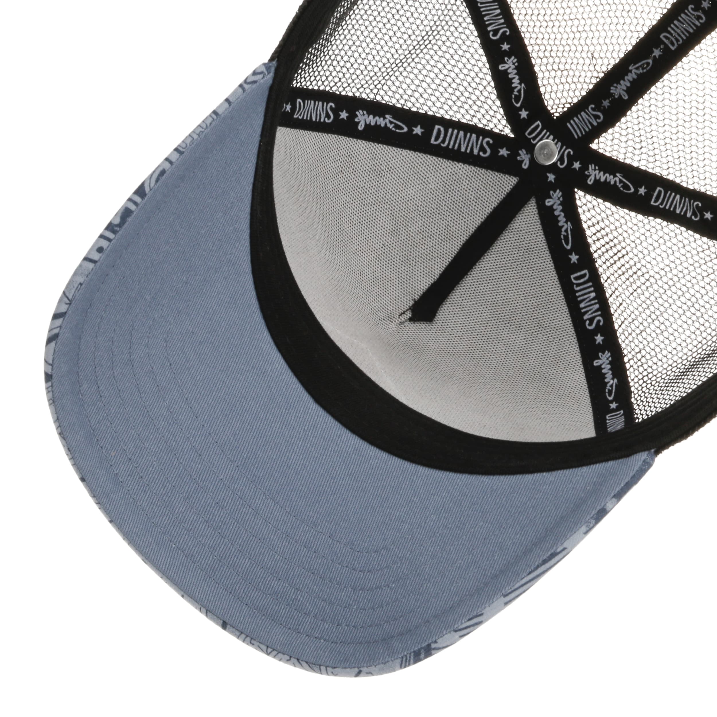 The trucker cap features a sporty curved peak and trendy snapback fastening. Eye-catching patterns and the airy mesh at the back of the head are reminiscent of casual street fashion and summer adventures. Djinns combines cotton with functional mesh, giving the cap a pleasantly light and fresh feel. The snapback version can be infinitely adjusted in size. A stylish companion for urban looks, sunny days and sporting activities.