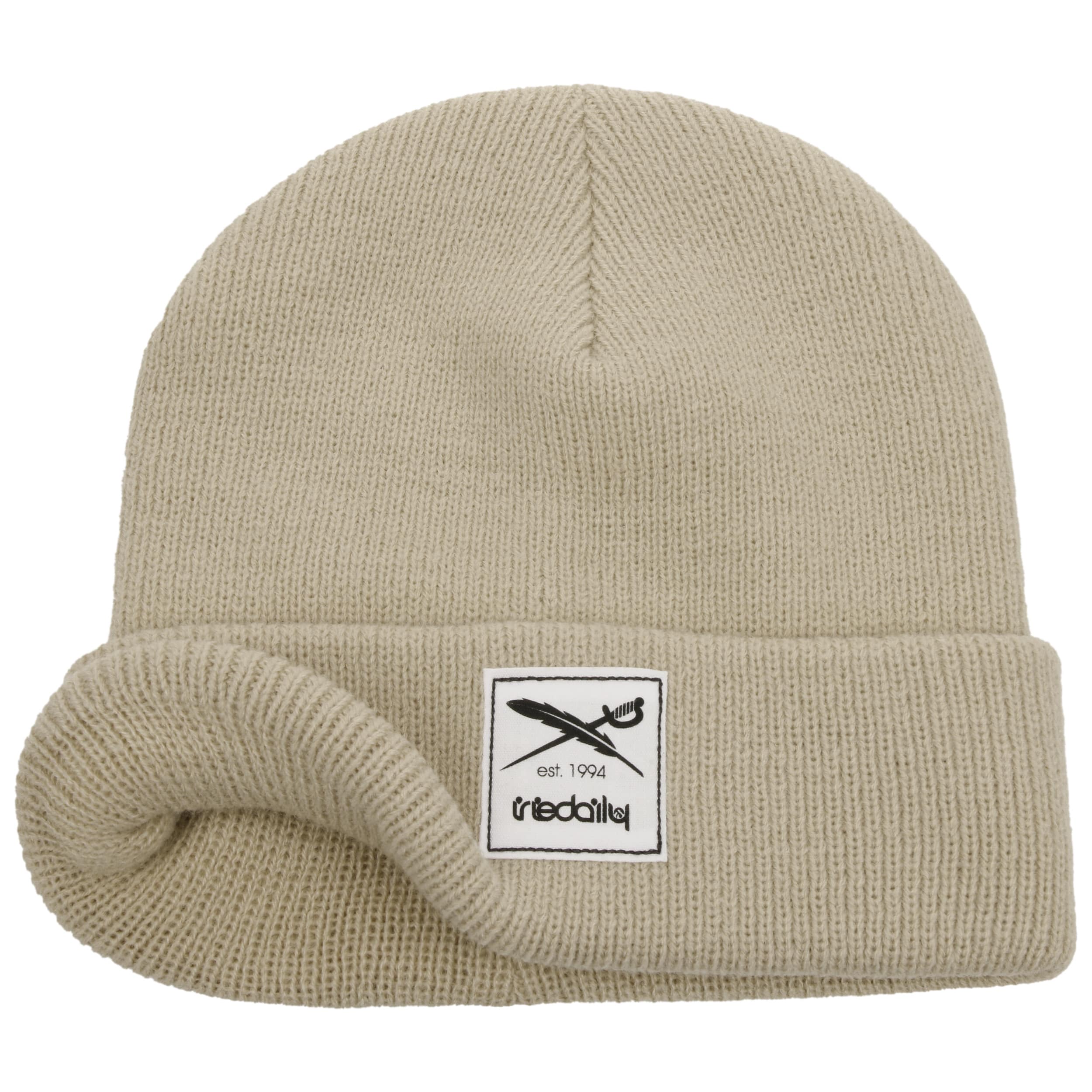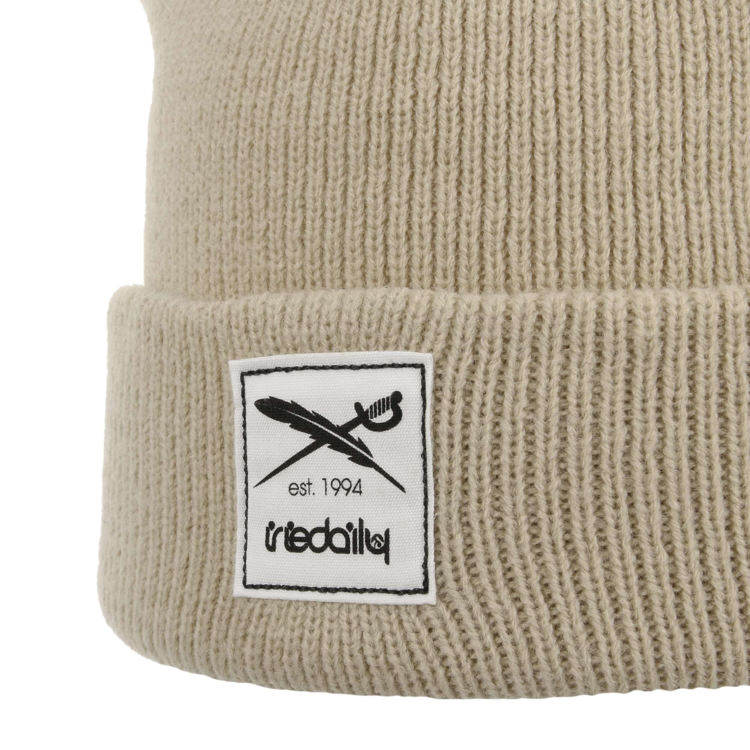 The story of the Berlin label iriedaily began with its launch in 1990. To start with, the focus was on printing T-shirts, which led to the first contacts with the textiles business. Shirts were also initially produced at this time for a few Berlin bands, but this line of business was discontinued in 1994. This was because the attention of the founders had shifted to setting up their own streetwear label and realising their own design ideas. This decision paid off, and iriedaily is now sold in 15 countries and more than 400 stores. The range also includes stylish headgear such as caps and bucket hats in addition to T-shirts, sweaters, jackets, trousers, and skate decks. Be inspired by the casual look of this fashion label!- Smurpher Beanie Knit Hat by iriedaily - beige 1