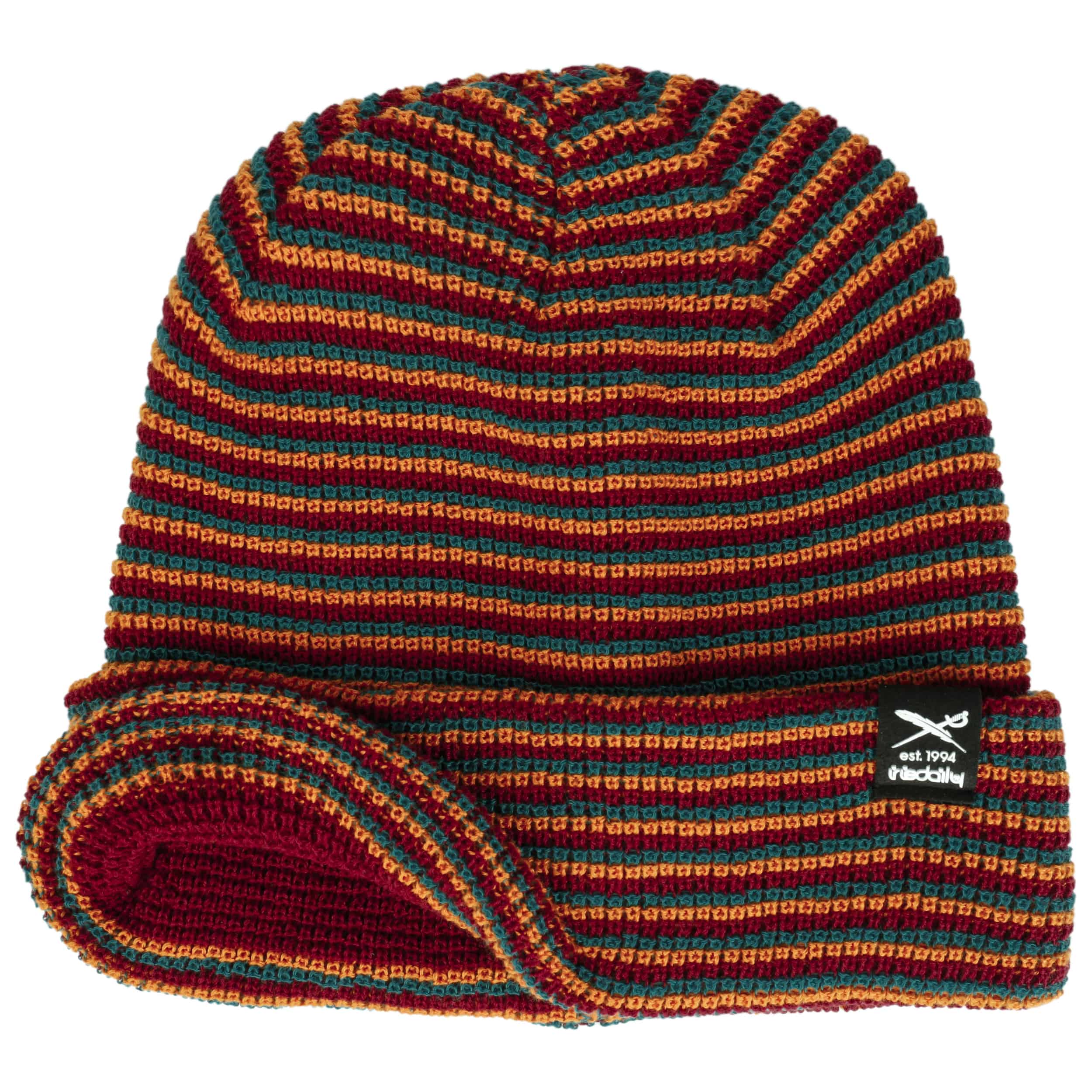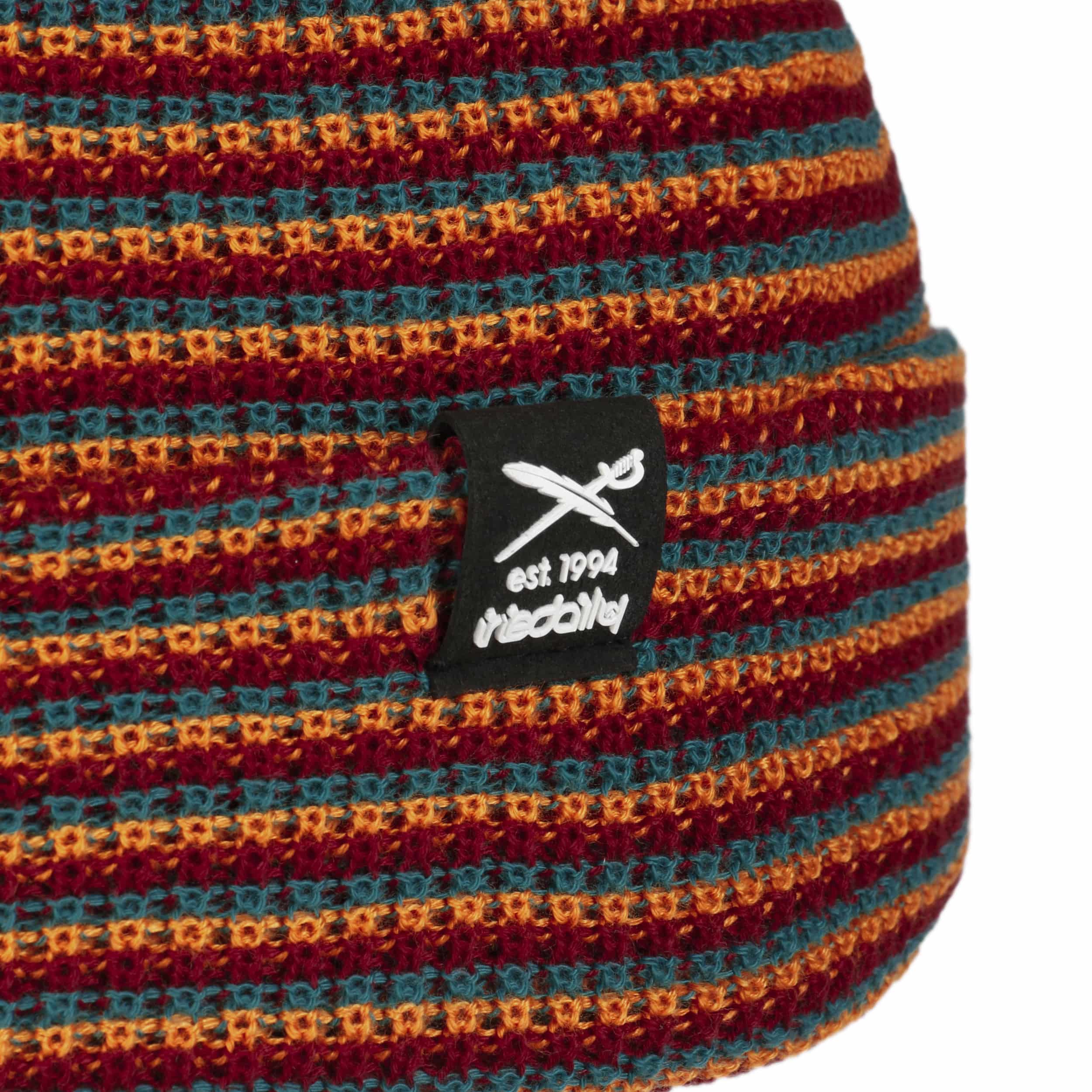 The story of the Berlin label iriedaily began with its launch in 1990. To start with, the focus was on printing T-shirts, which led to the first contacts with the textiles business. Shirts were also initially produced at this time for a few Berlin bands, but this line of business was discontinued in 1994. This was because the attention of the founders had shifted to setting up their own streetwear label and realising their own design ideas. This decision paid off, and iriedaily is now sold in 15 countries and more than 400 stores. The range also includes stylish headgear such as caps and bucket hats in addition to T-shirts, sweaters, jackets, trousers, and skate decks. Be inspired by the casual look of this fashion label!- Smurpher Striped Beanie Hat by iriedaily - mixed colours 1