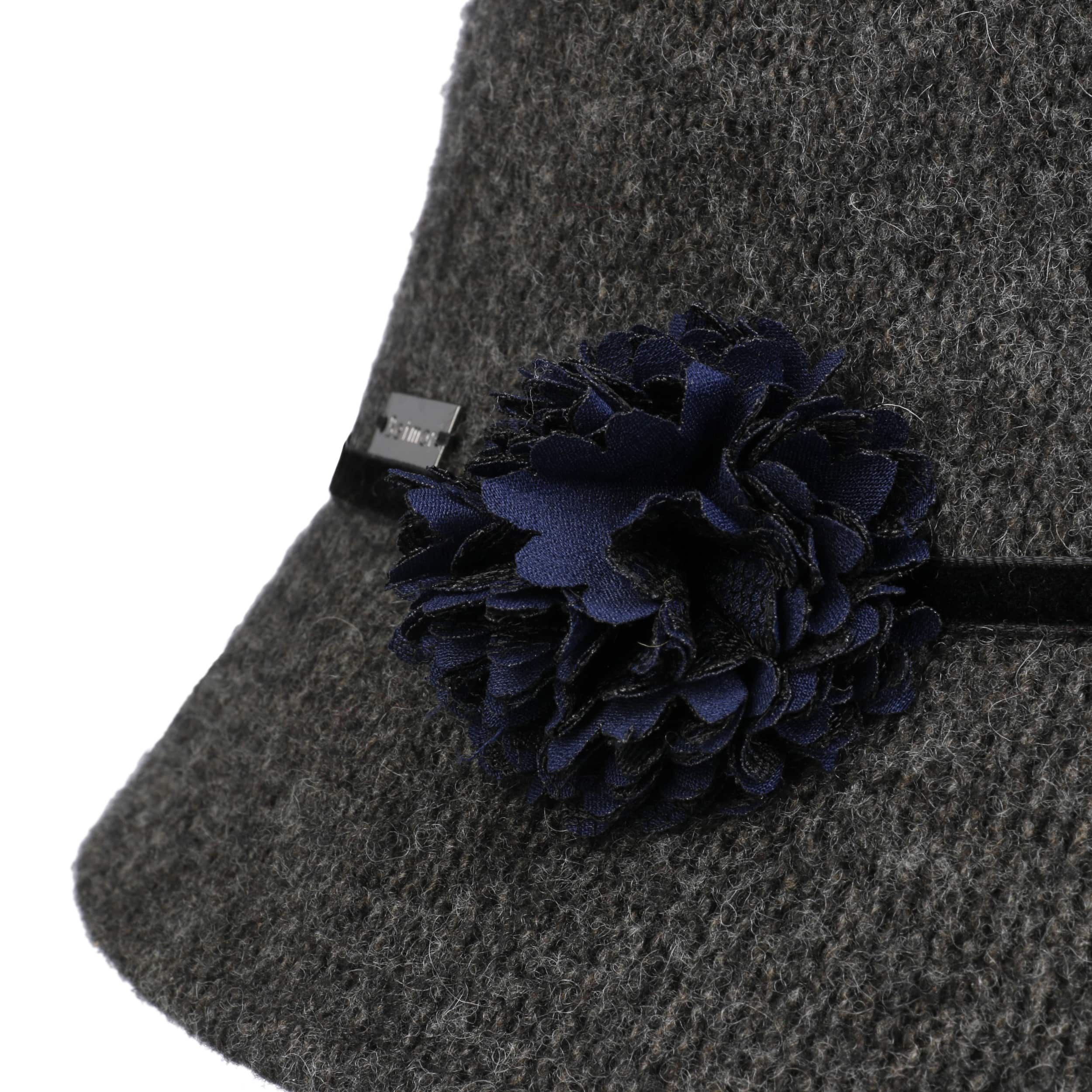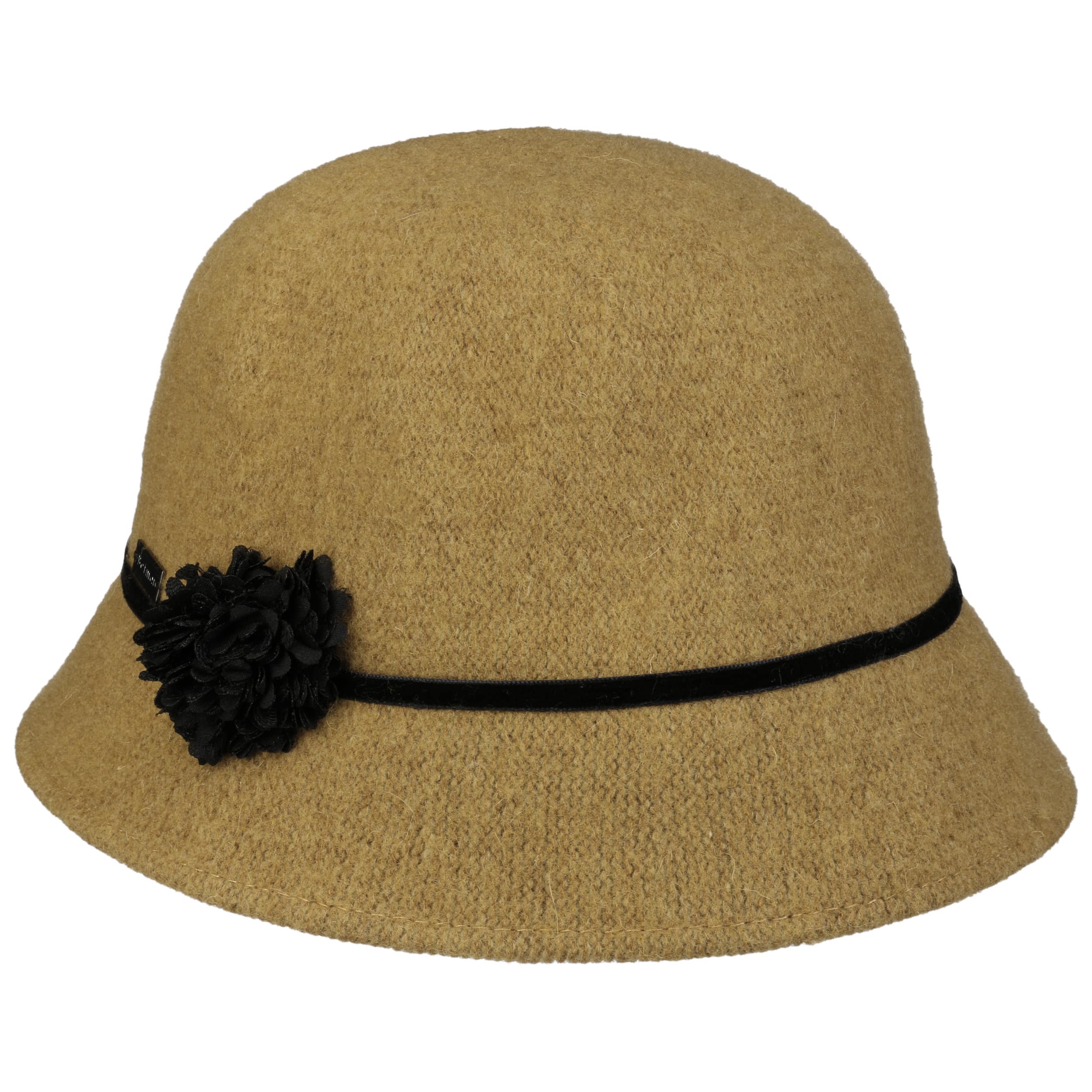 What does this cute cloche have that others don’t? Of course: A wonderful, knitted look, a high wool content and above all a gorgeous decoration. An elegant, narrow band runs around the crown just above the brim and is decorated with a fluffy flower on the side. The stylish winter hat goes with the elegant coat as well as the sporty anorak.