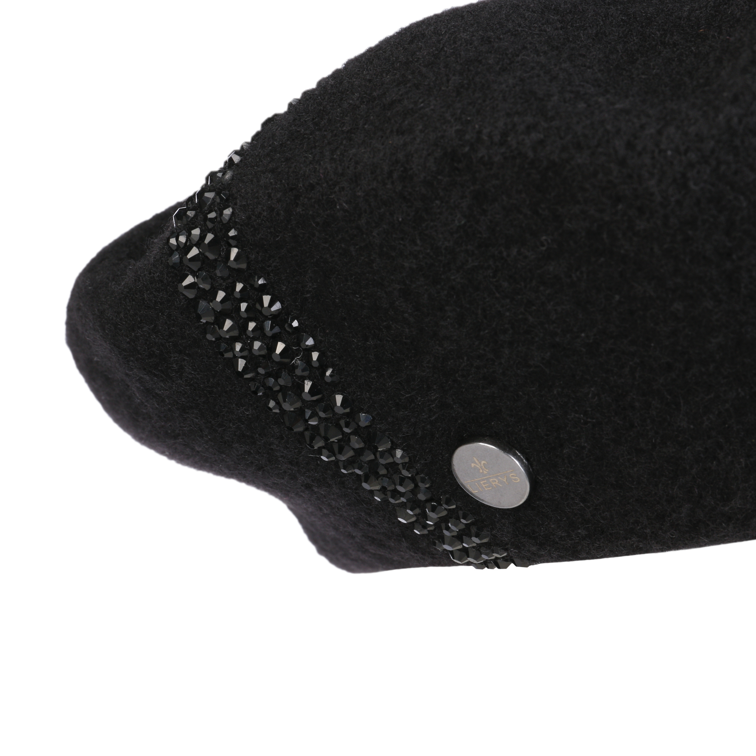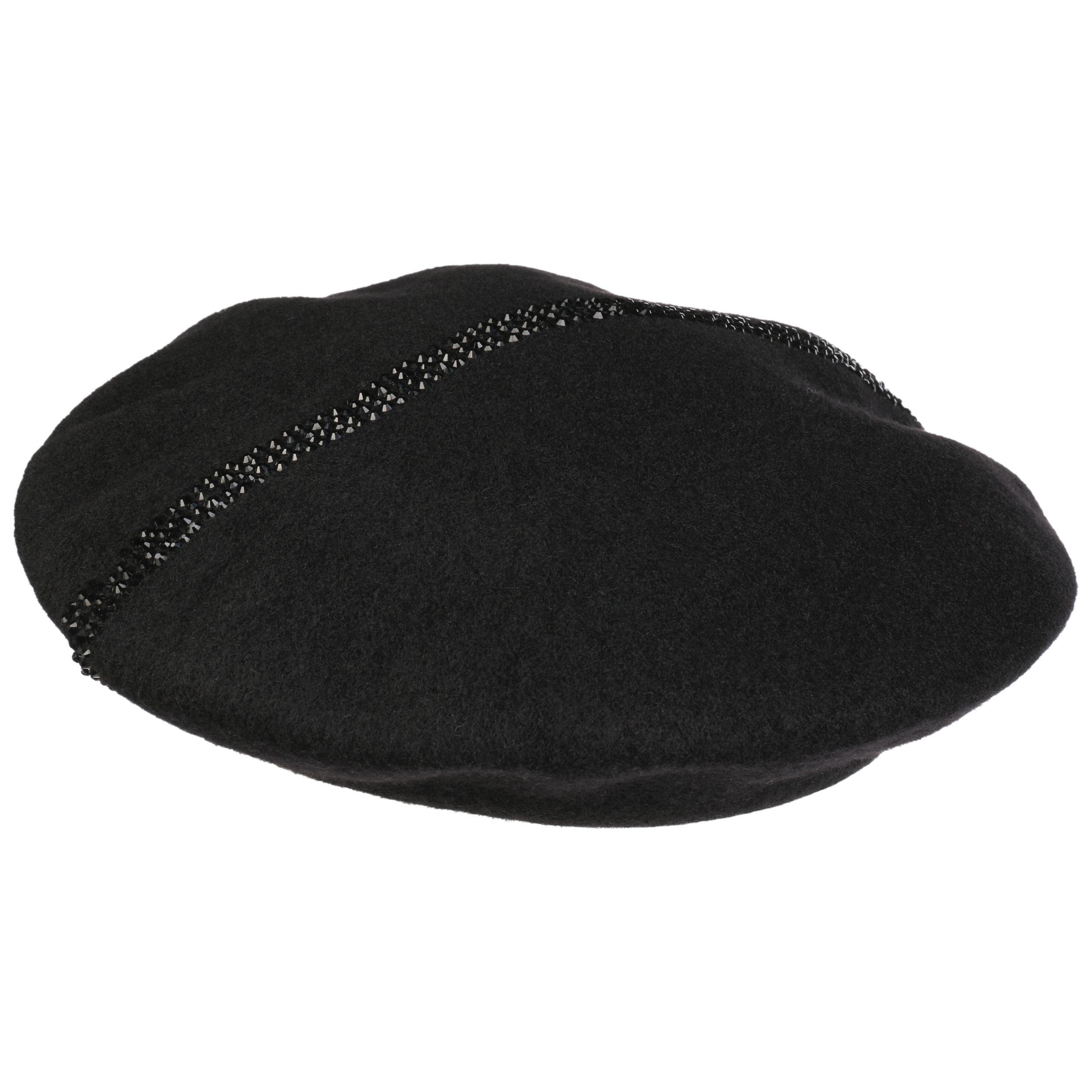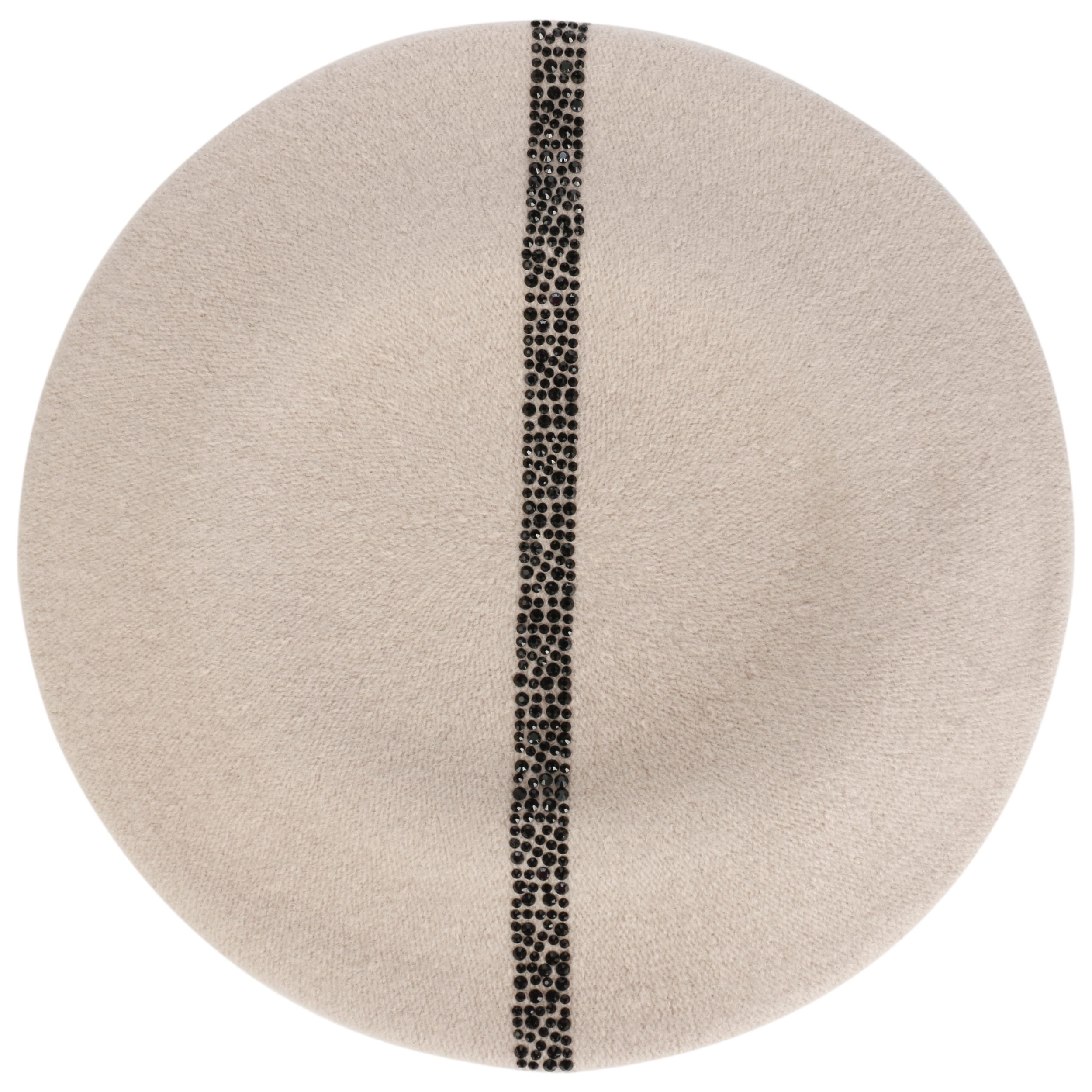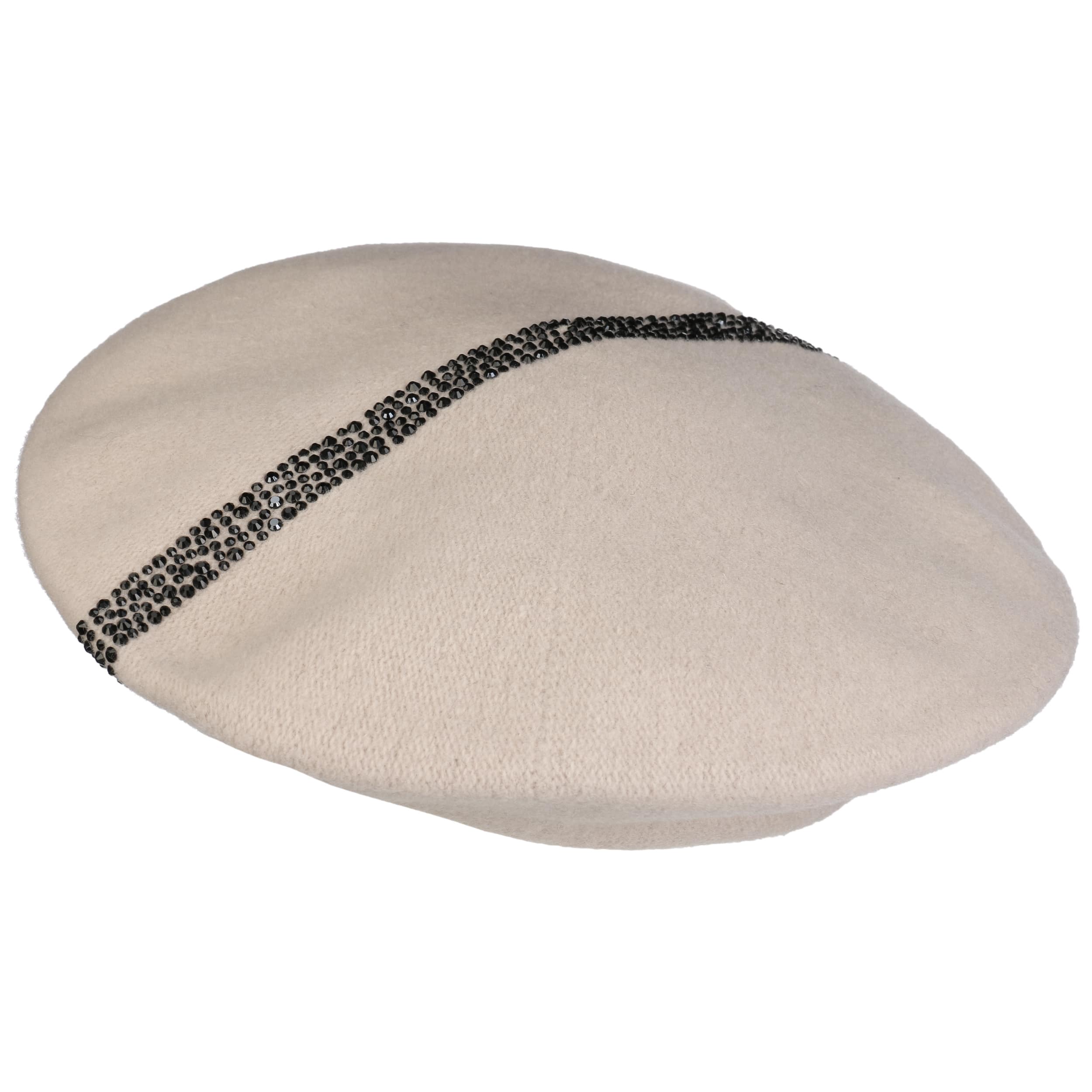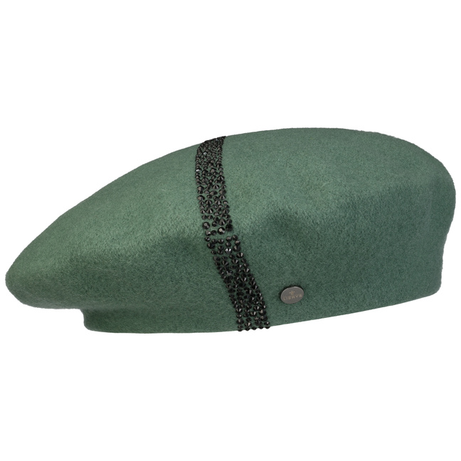 The traditionally cut felt cap from Lierys adorns long or short hair and goes with feminine as well as sporty clothing. In addition to the many different ways of wearing a Basque beret, this model also scores with an eye-catching decoration of gems.