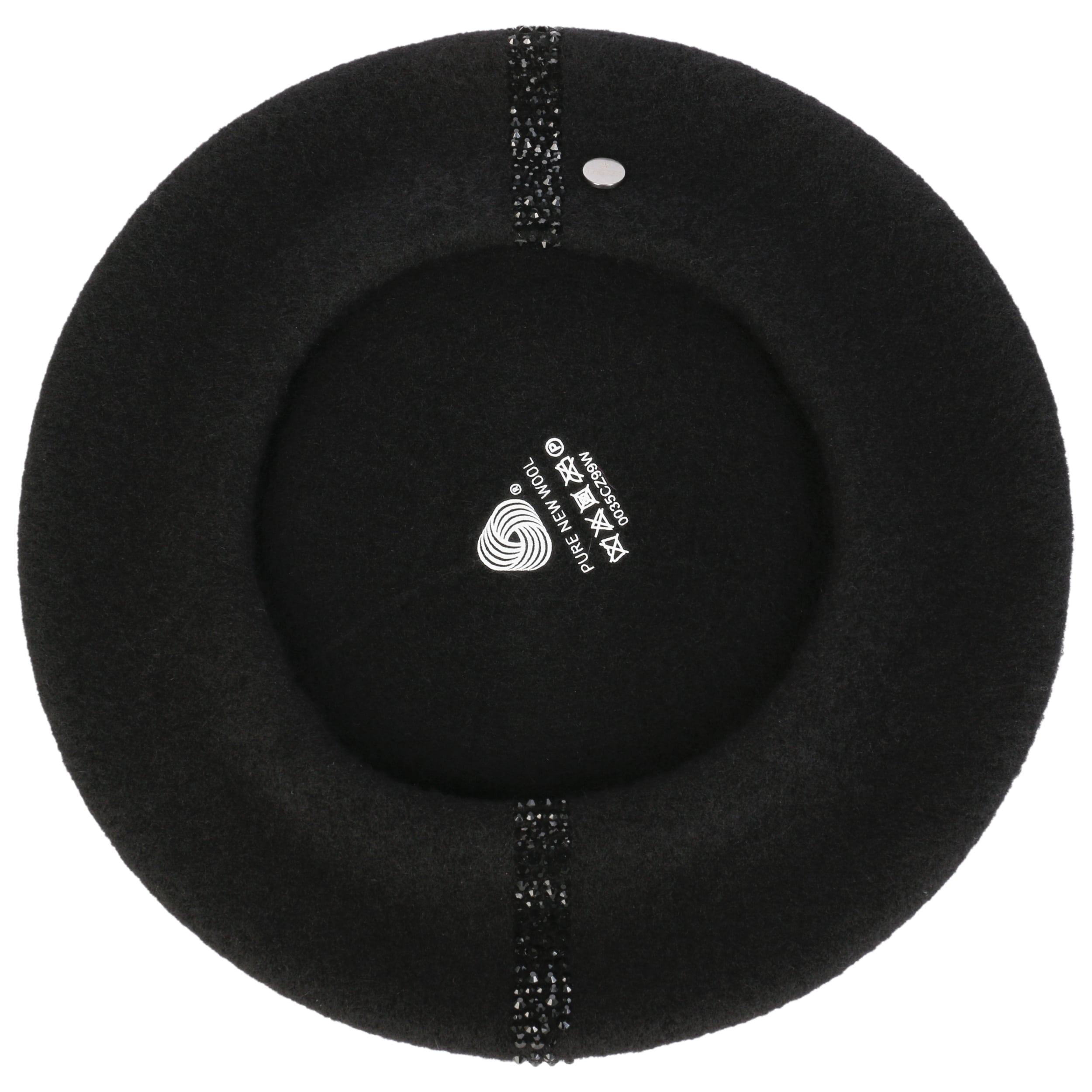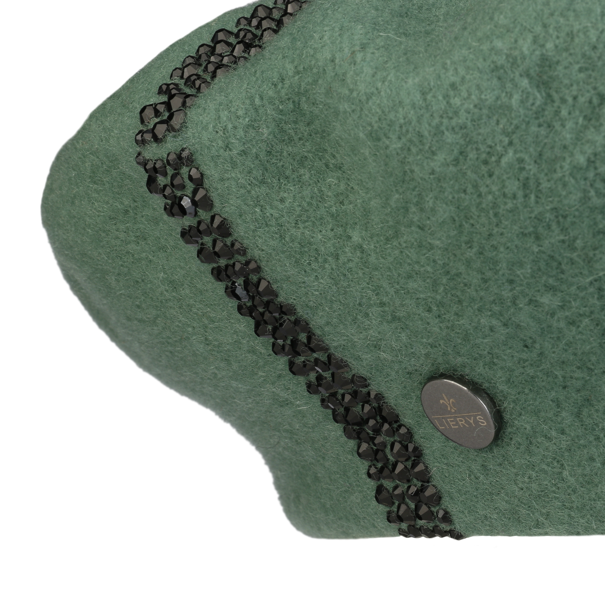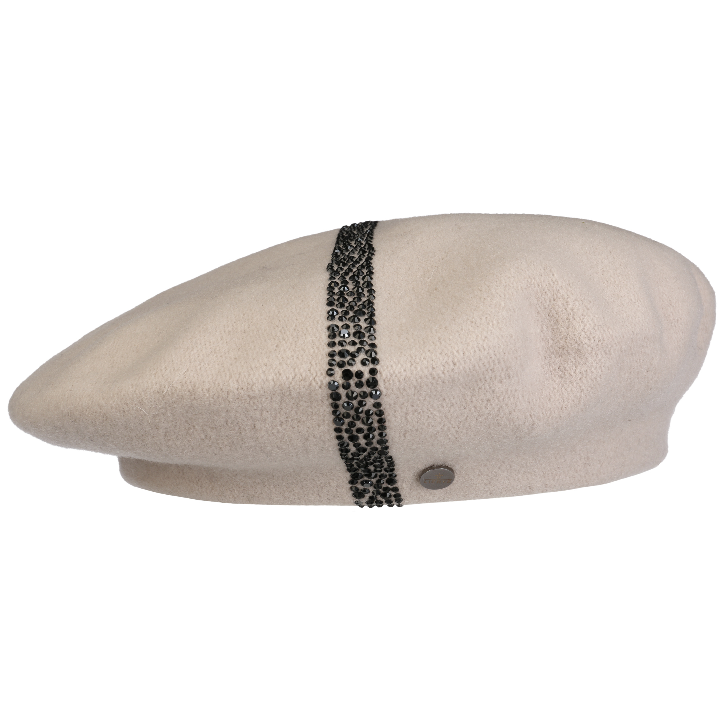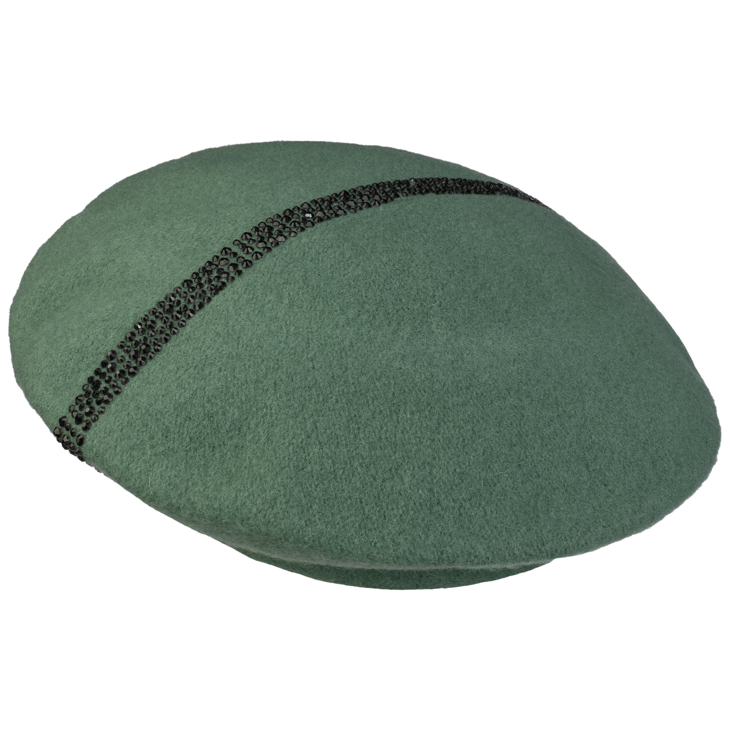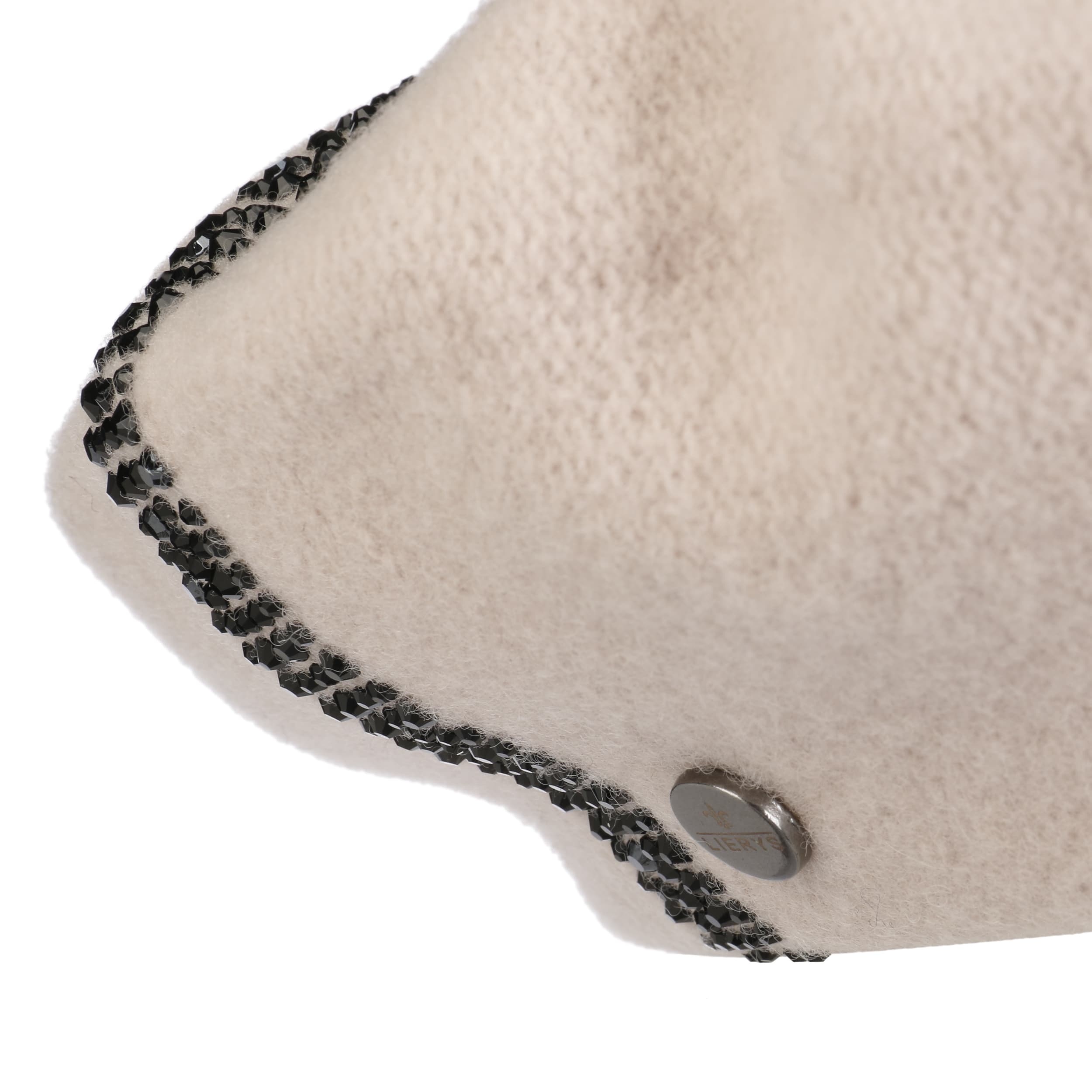 The traditionally cut felt cap from Lierys adorns long or short hair and goes with feminine as well as sporty clothing. In addition to the many different ways of wearing a Basque beret, this model also scores with an eye-catching decoration of gems.