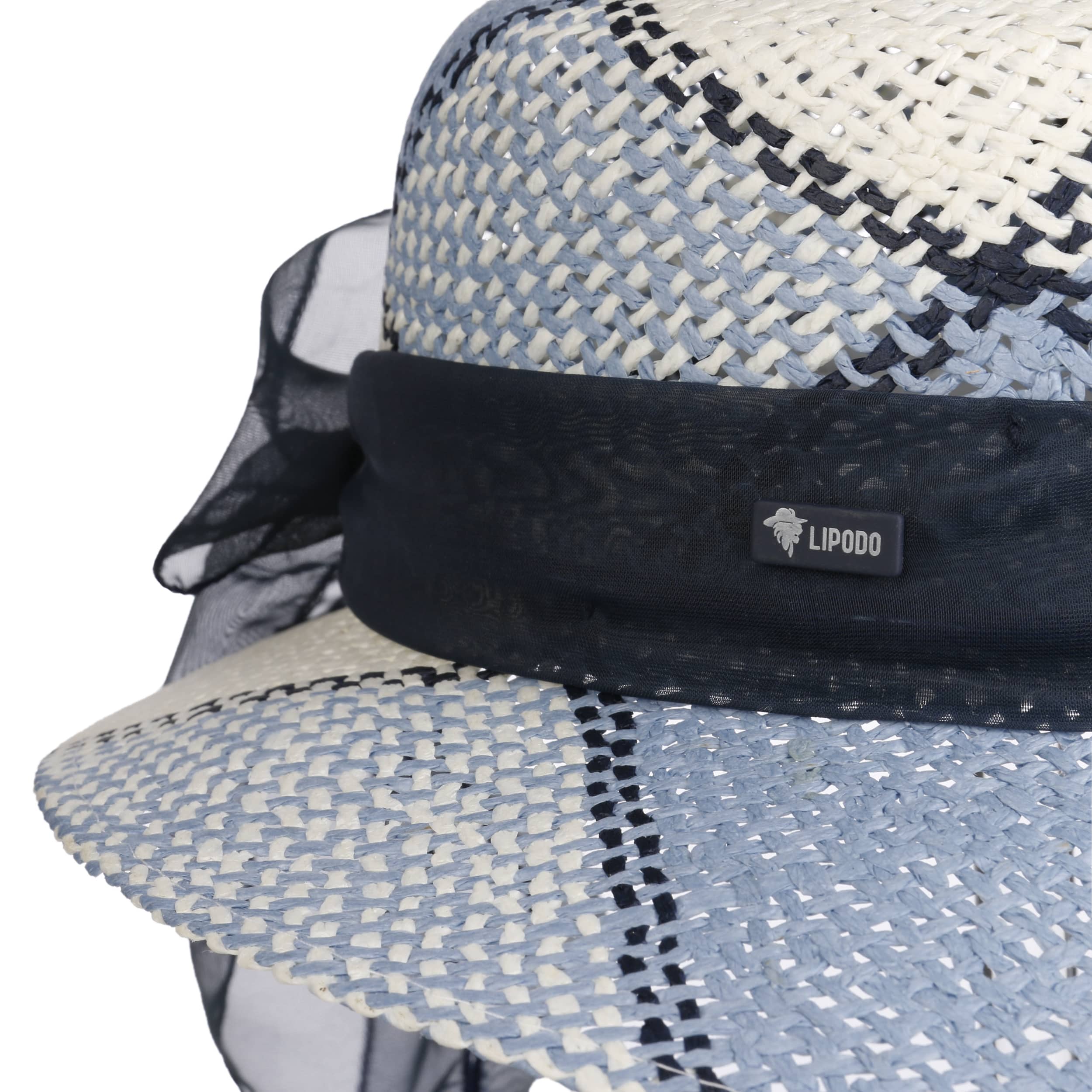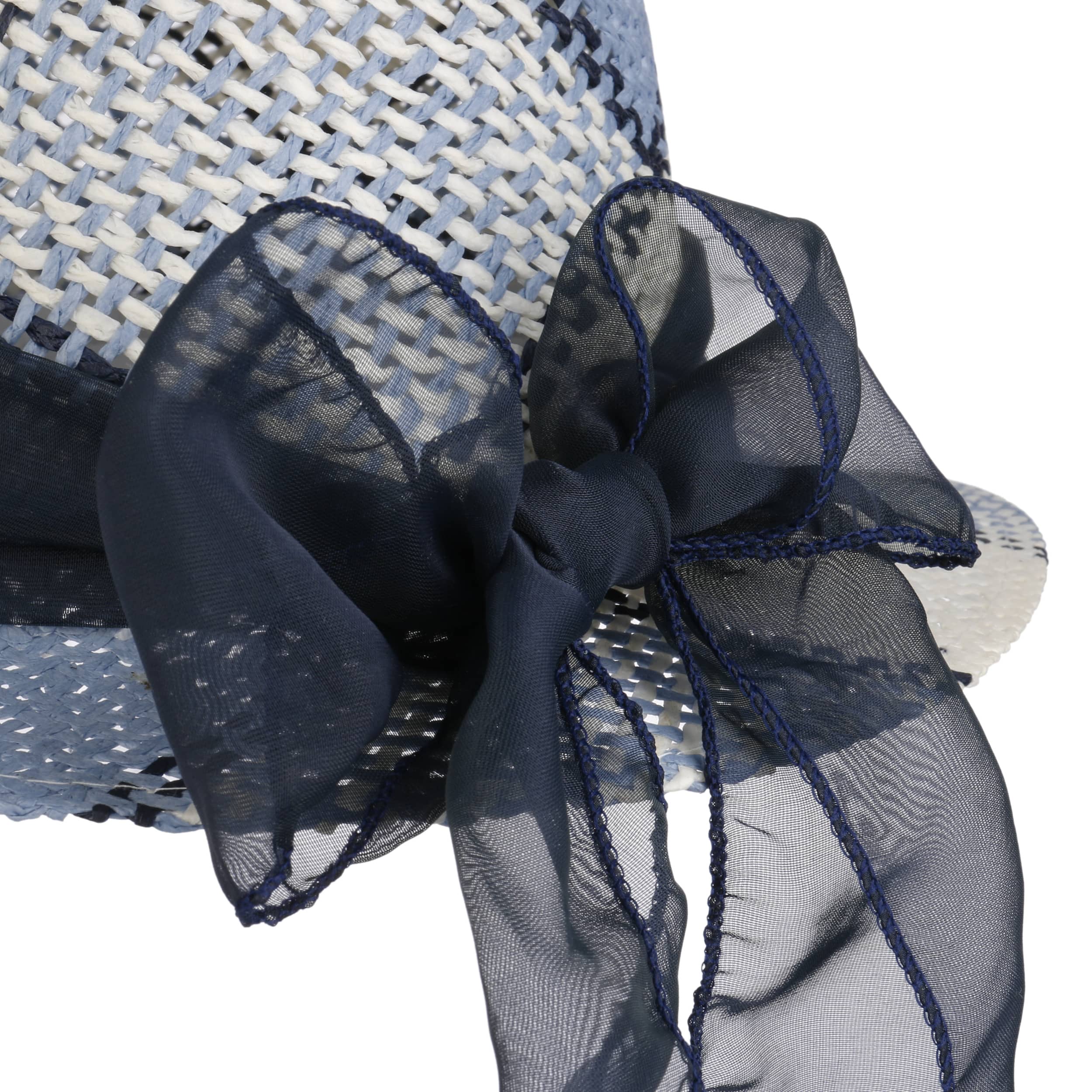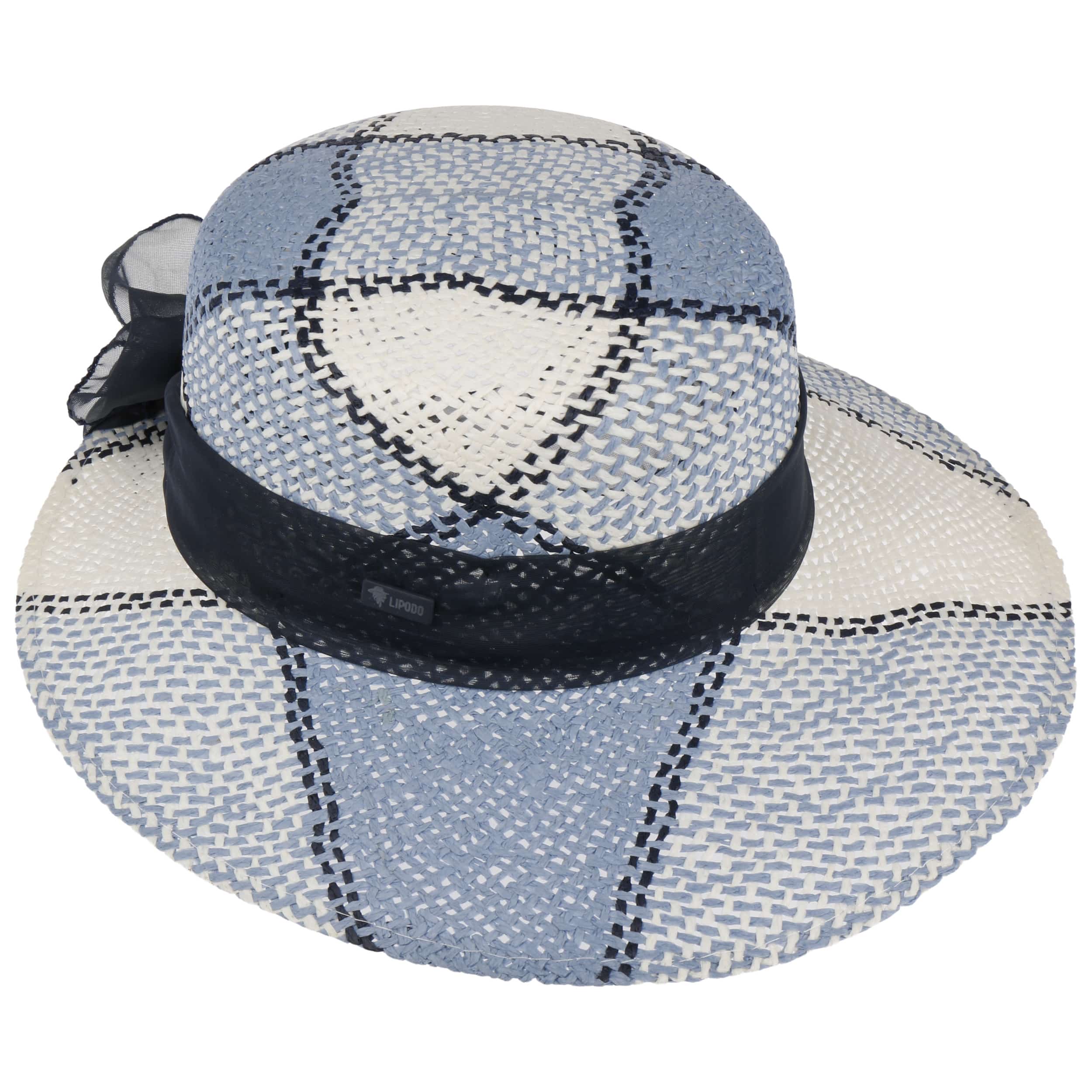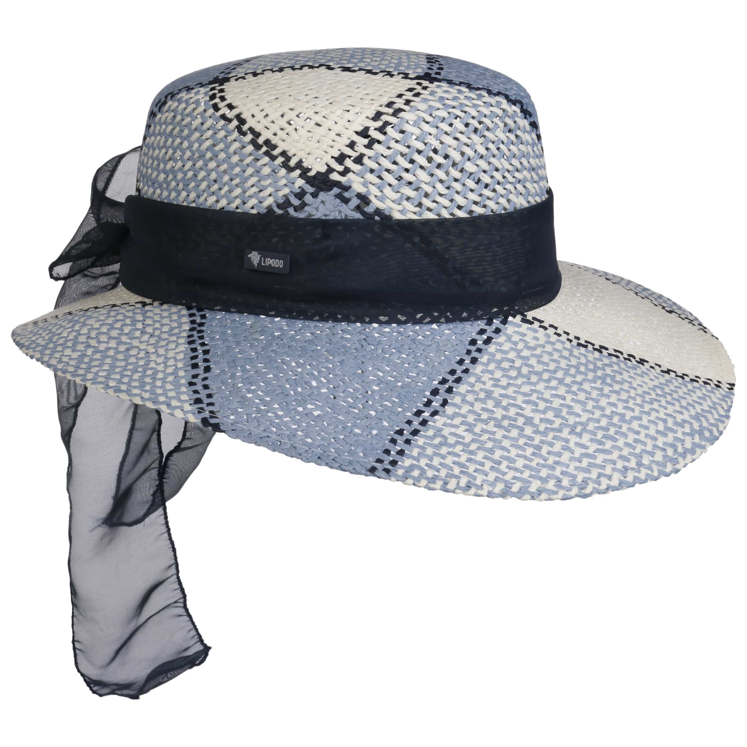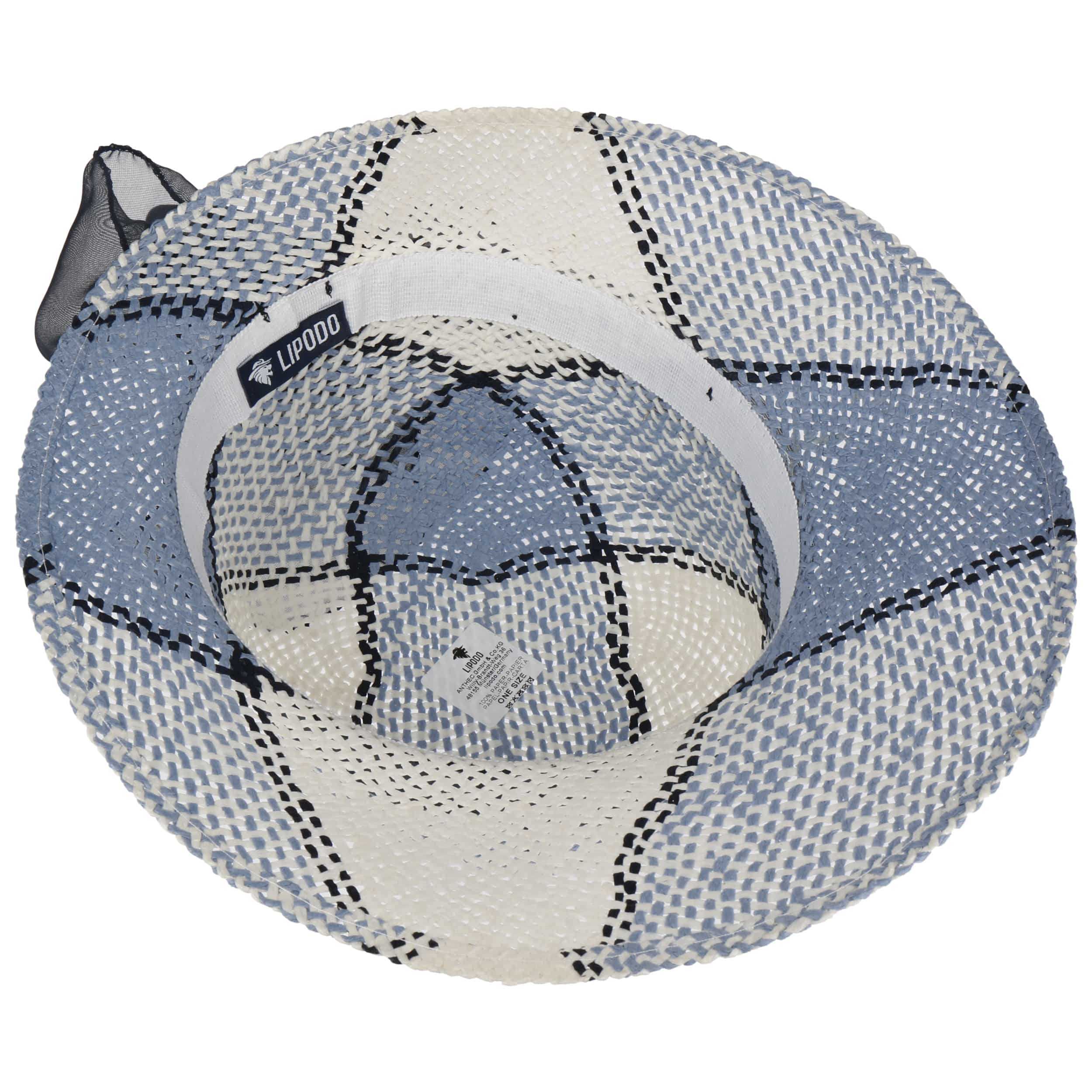 This feminine straw hat from Lipodo attracts attention with its gossamer fabric band and refined pattern. Ladies are able to stay cool on hot days beneath the striking sun hat made from gently interwoven paper straw. An asymmetric brim makes the holiday hat into a charming shady spot. The patterned summer hat is encircled by a wide fabric trim, whose sumptuous bow falls casually over the neck.