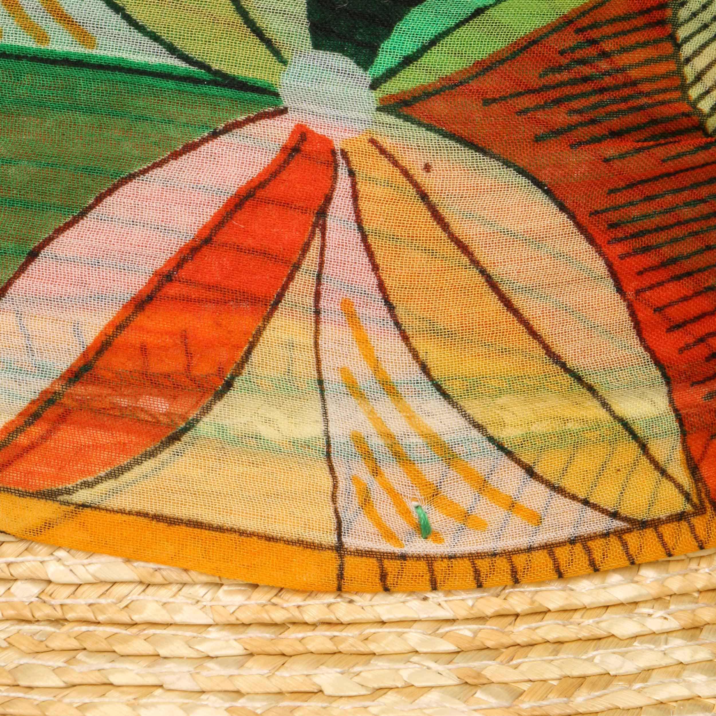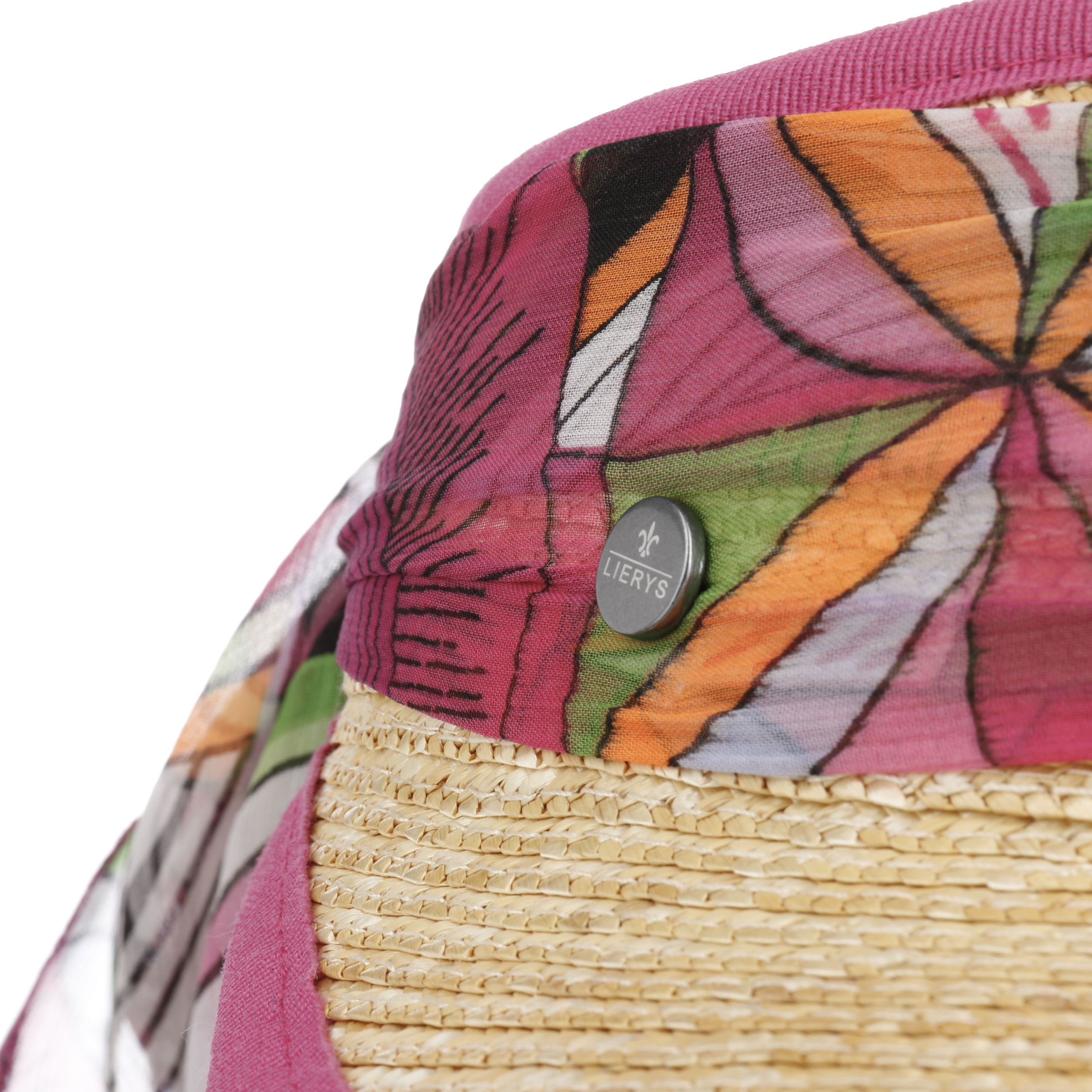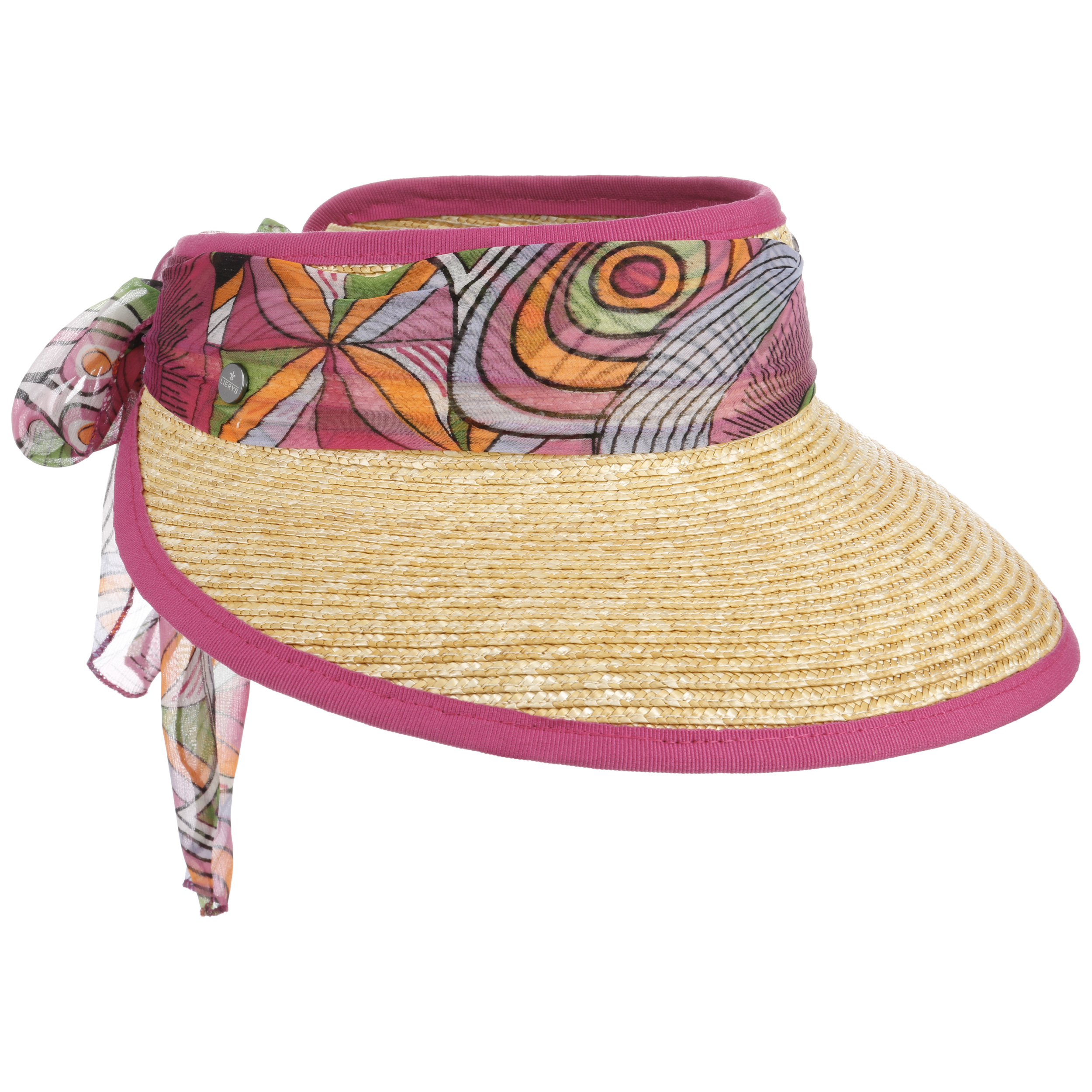 With its summery appearance, this visor from Lierys enhances modern leisure outfits with a lively spirit for beautiful and bright sunny days. Rich colours and a gorgeous pattern with floral shapes attract attention. The carefully woven 100% lightweight straw gives the look a stylish touch. The size can be adjusted using the pretty tie at the back.