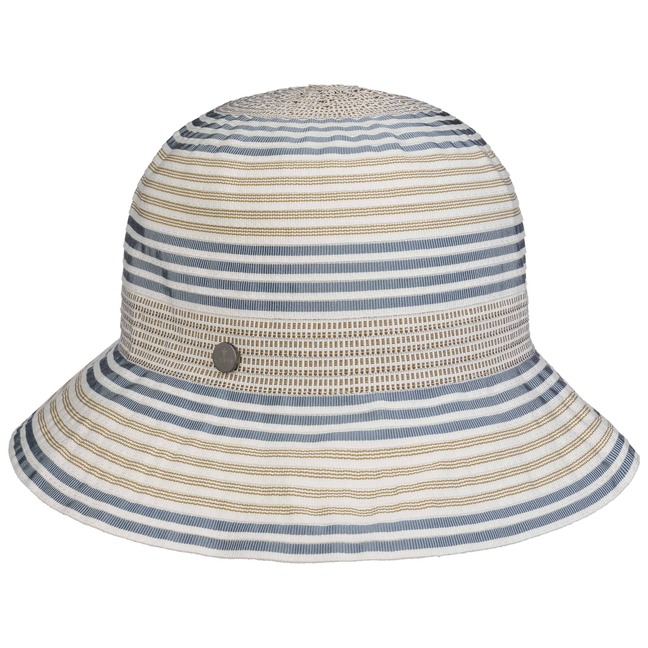 The label with the iris logo has dedicated itself to making modern, stylish and comfortable headwear along with matching accessories. Baseball caps, Trilby hats and Bogart hats have been made into timeless designs that give an outfit a classy splash of colour and bring a smart cut to your headwear. High quality knitted sets, which are available individually as beanies, peak pull on hats, Laplander hats, headbands, scarves, gloves etc., discreetly accentuate each lady’s or gentleman’s individuality. From woollen hats to flat caps, Lierys accessories can be worn in endless fashionable combinations.- Summertime Stripes Braided Hat by Lierys - blue 1