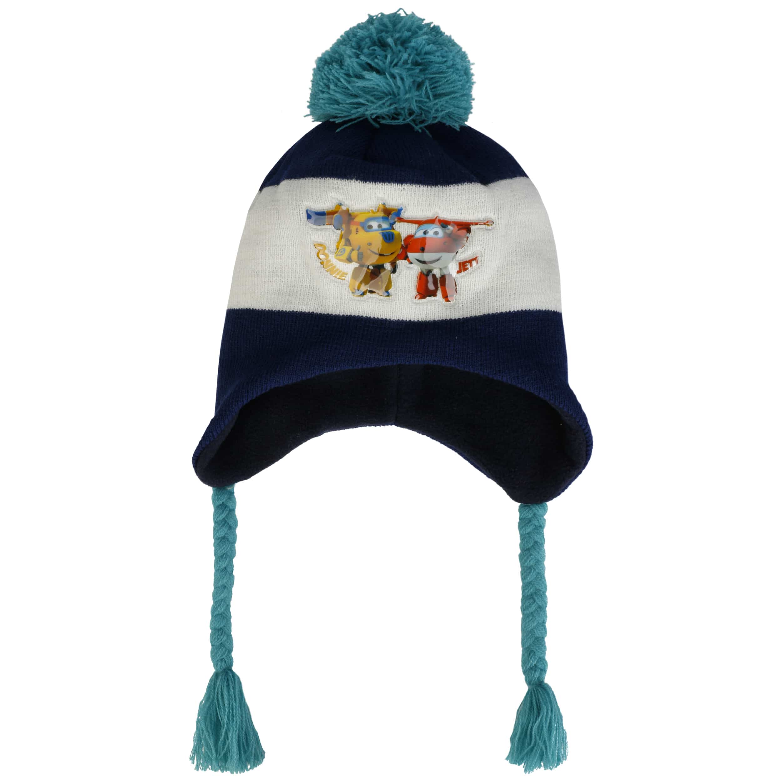 Fans of the TV series Super Wings will love this cap. The colourful appliqué of the two heroes Jett and Donnie gives it a mighty cool look that will make you the centre of attention in any playground. Parents will be pleased that the warm pom-pom hat always stays where it belongs thanks to the drawstrings for tying.