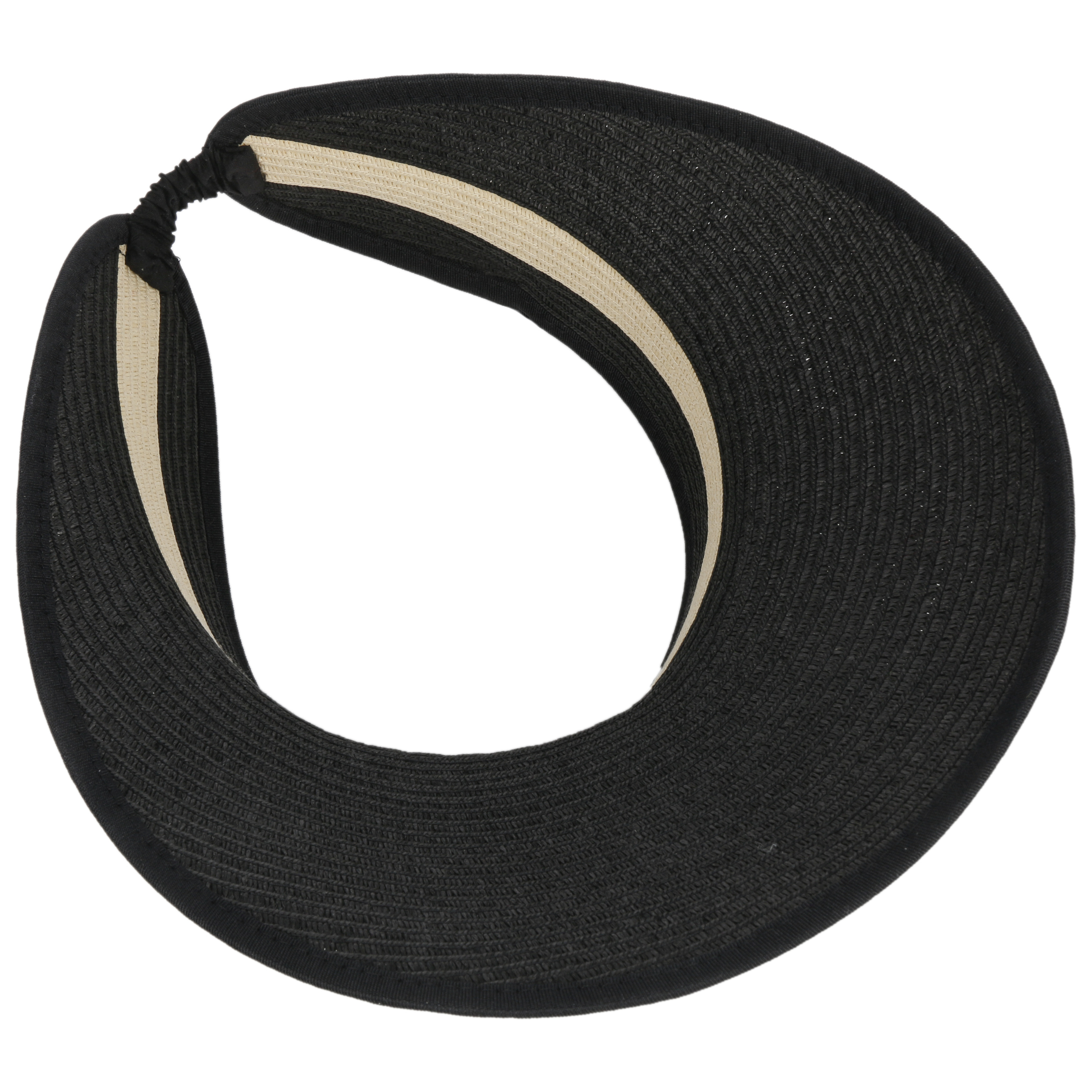 Braids of flexible paper straw make up the colourfully striped visor and provide a sense of summery lightness. As an alternative to a peaked cap, it can be worn with short hairstyles, hair worn down, a pony tail and dreadlocks, and the accessory is also flexible to combine with outfits. The straw cap comfortably adjusts to suit your head size with the stretch fitting at the back, and a plain-coloured edging around the brim ensures the visor keeps its shape well.