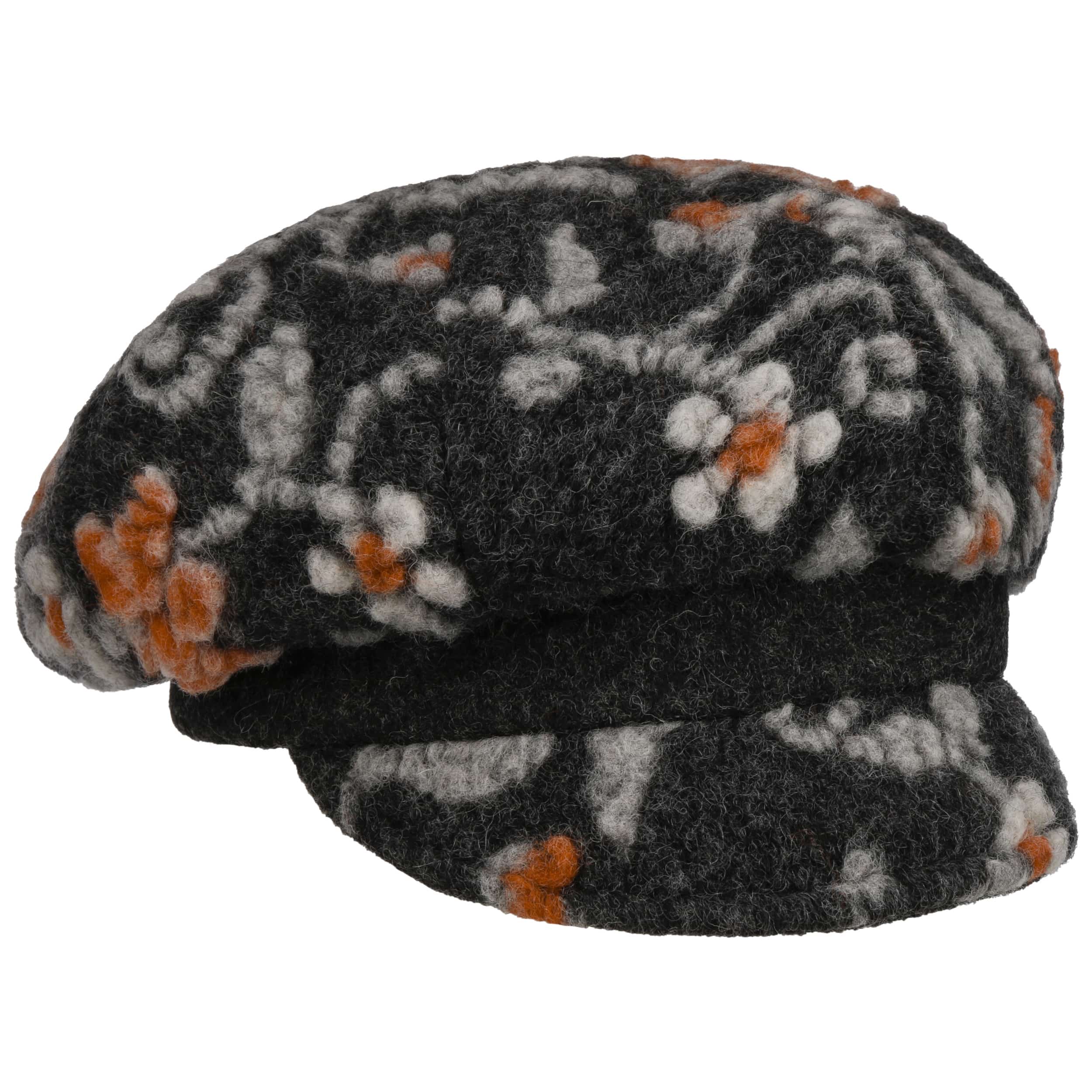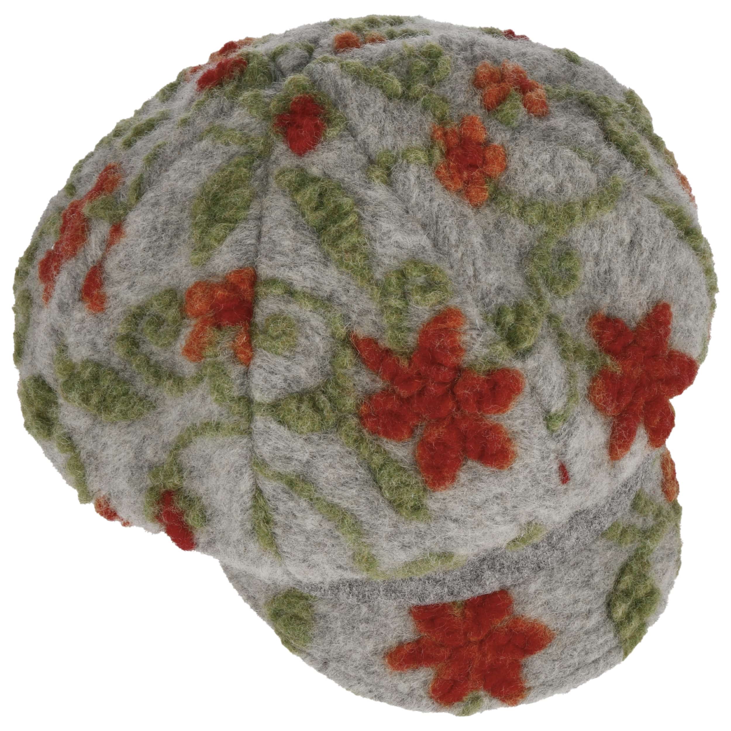 The Gebeana baker boy cap is made from virgin wool, normal wool and cotton, making it breathable and pleasant to the touch. The high level of comfort is further optimised by the cotton lining with elastane. The felt hat has a 5 cm peak and is visually appealing with its attractive pattern and embroidered flowers.