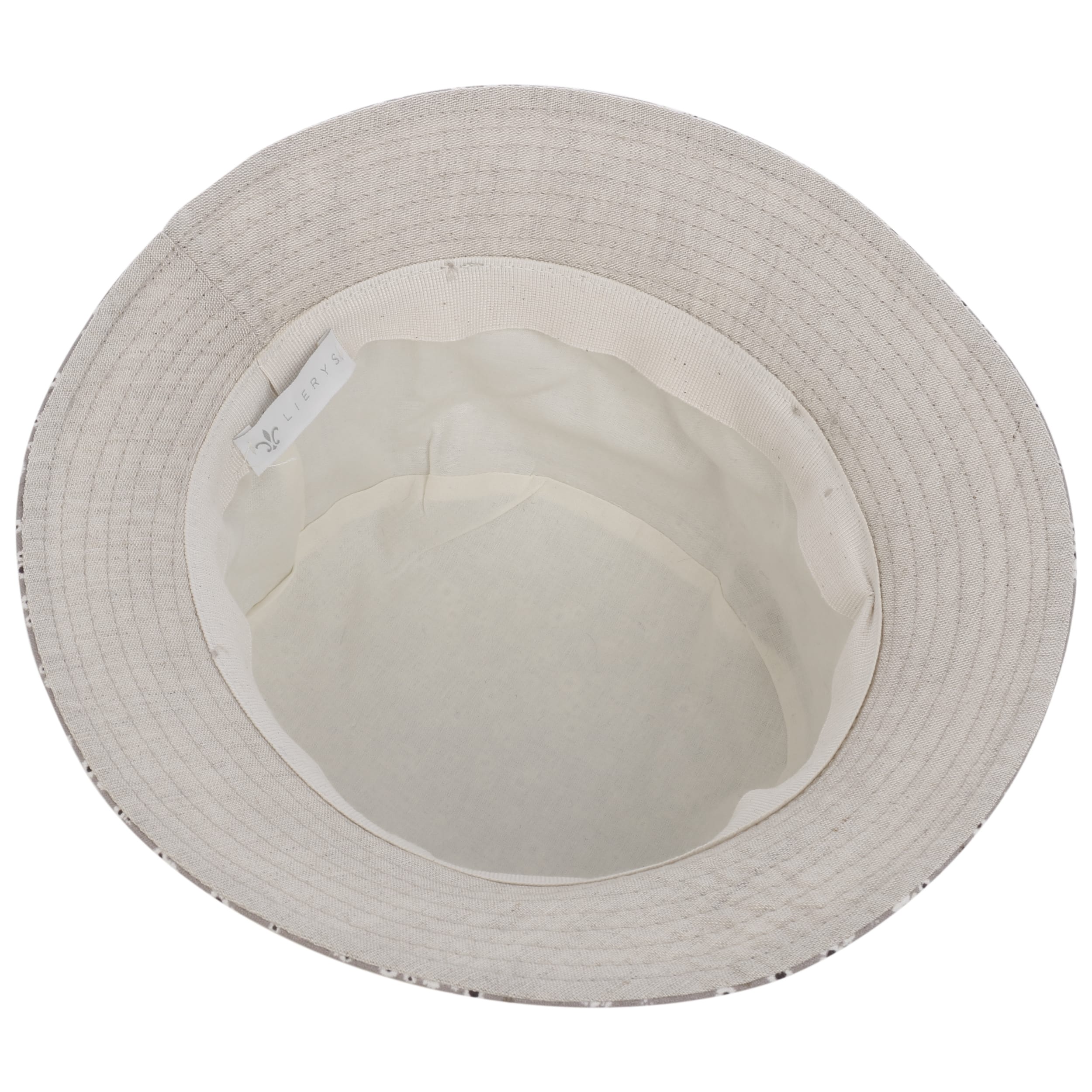 The flower is the focus of the design of the handmade bucket hat from Lierys. A beautiful vivid pattern of small flowers adorns the hat from the flat crown to over the downward sloping brim. It is accompanied by a lush floral appliqué placed on the colour-coordinated grosgrain ribbon.