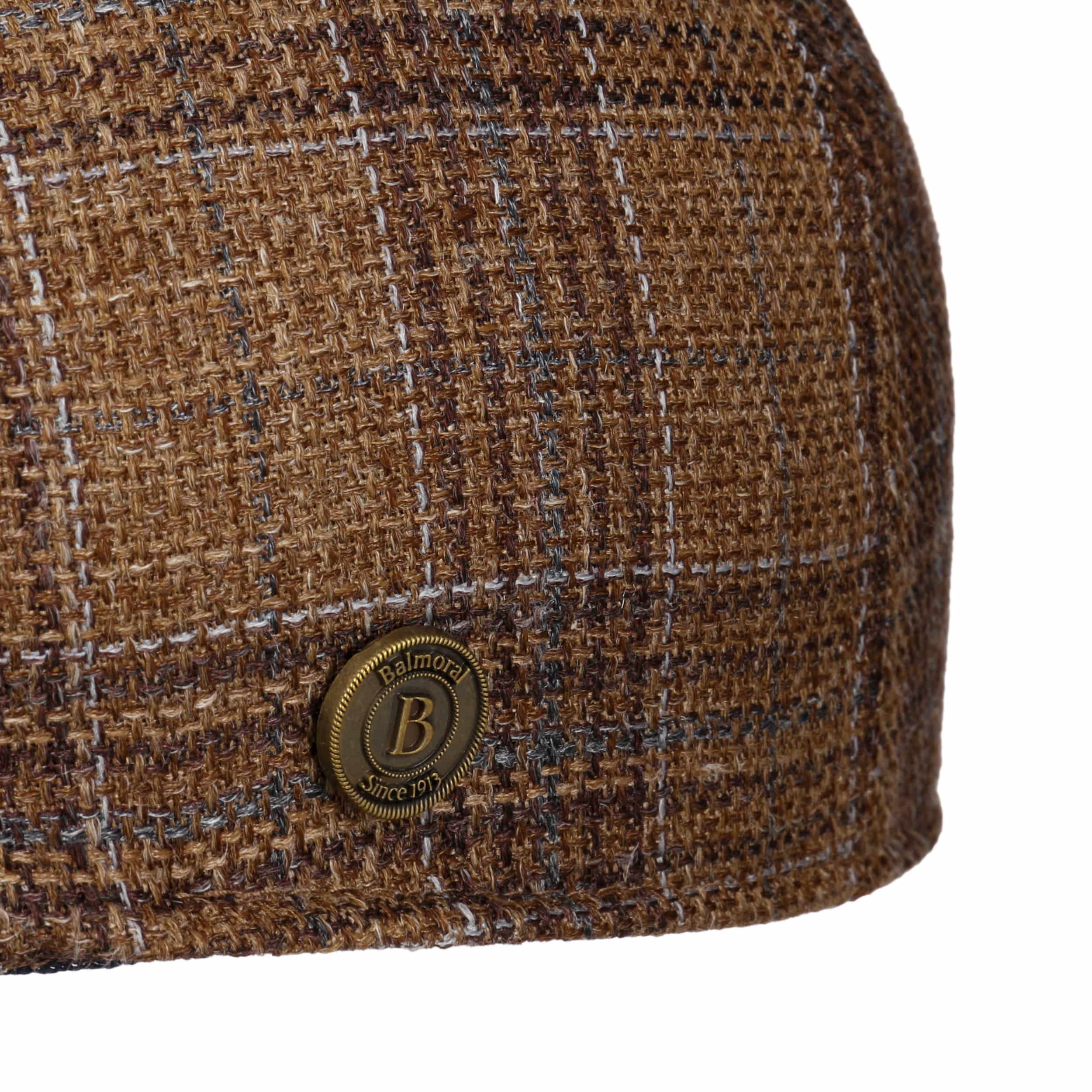 This refined flat cap by Balmoral is crafted in the EU from a luxurious blend of virgin wool, silk and linen, complete with breathable cotton lining for added comfort. Its classic checked pattern with overcheck gives the streamlined ivy shape a subtly distinctive character, making it an effortless companion for both city wear and outdoor pursuits.