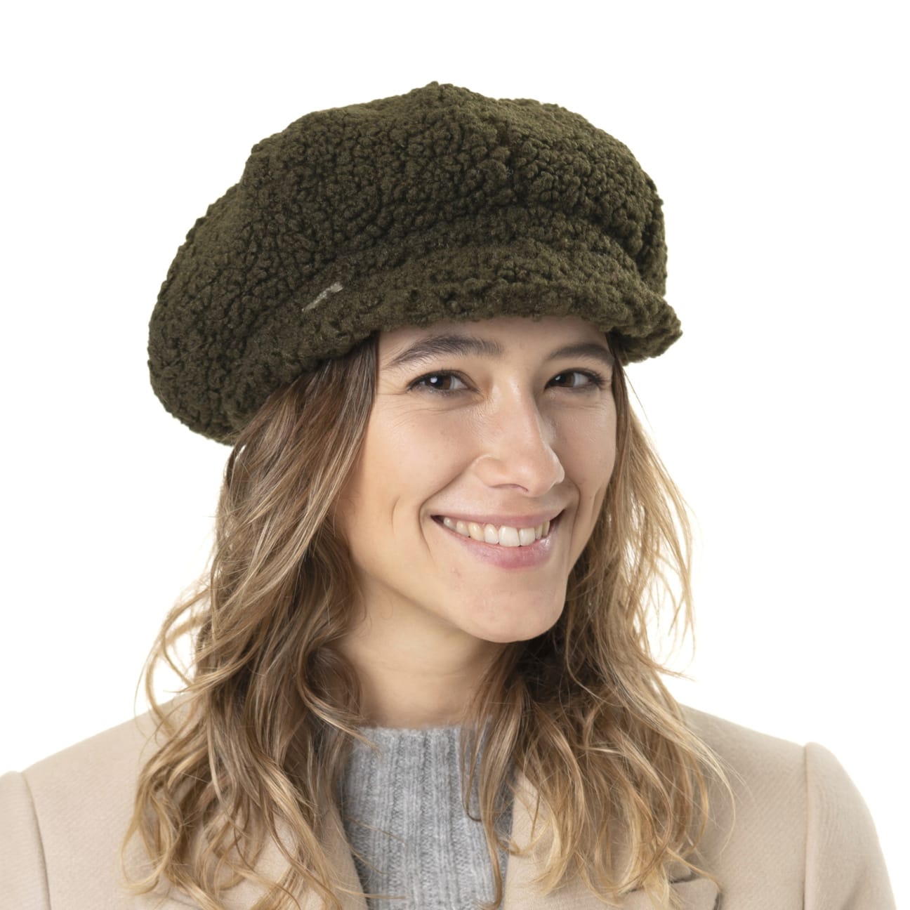 - Teddy Fur Newsboy Cap by Seeberger - olive 1