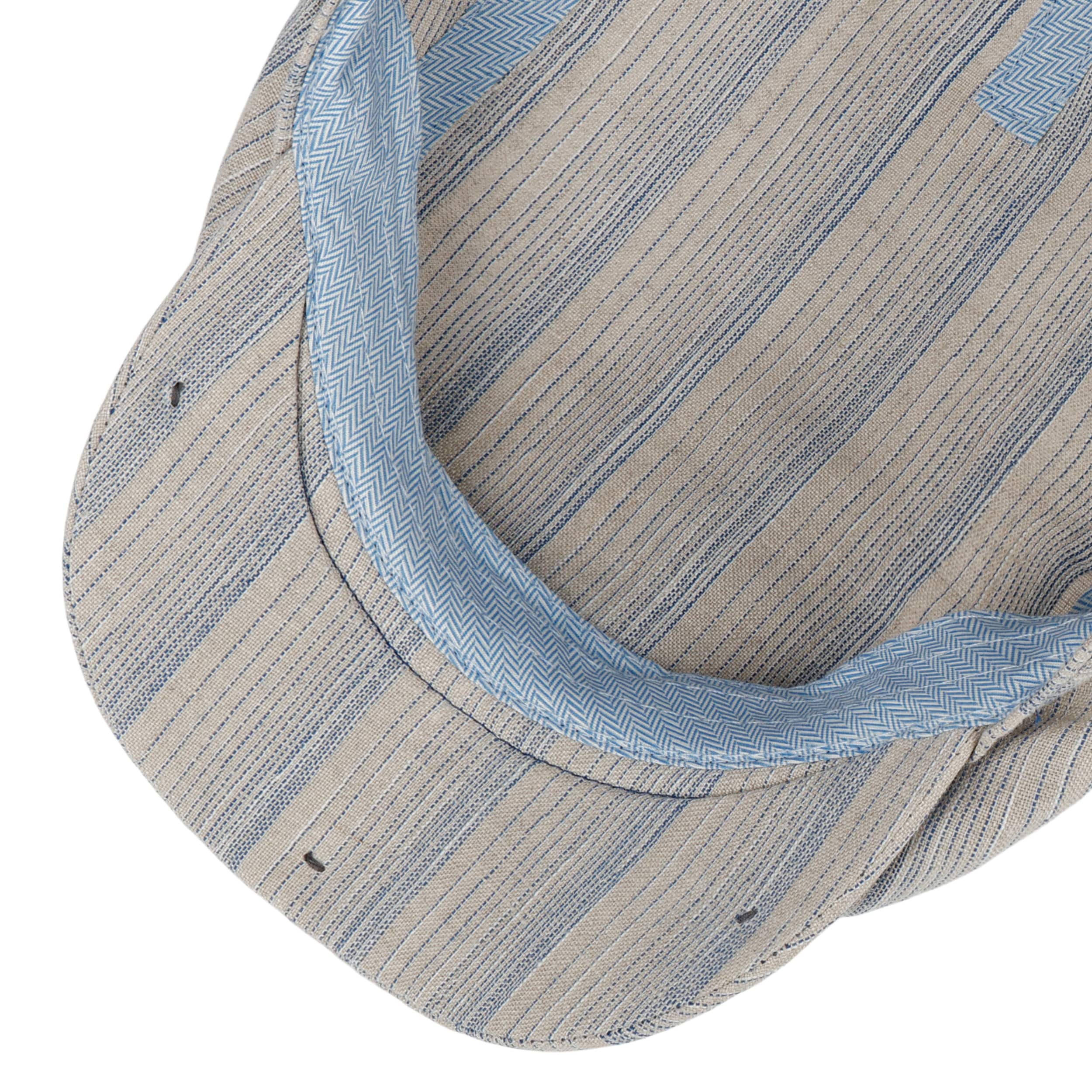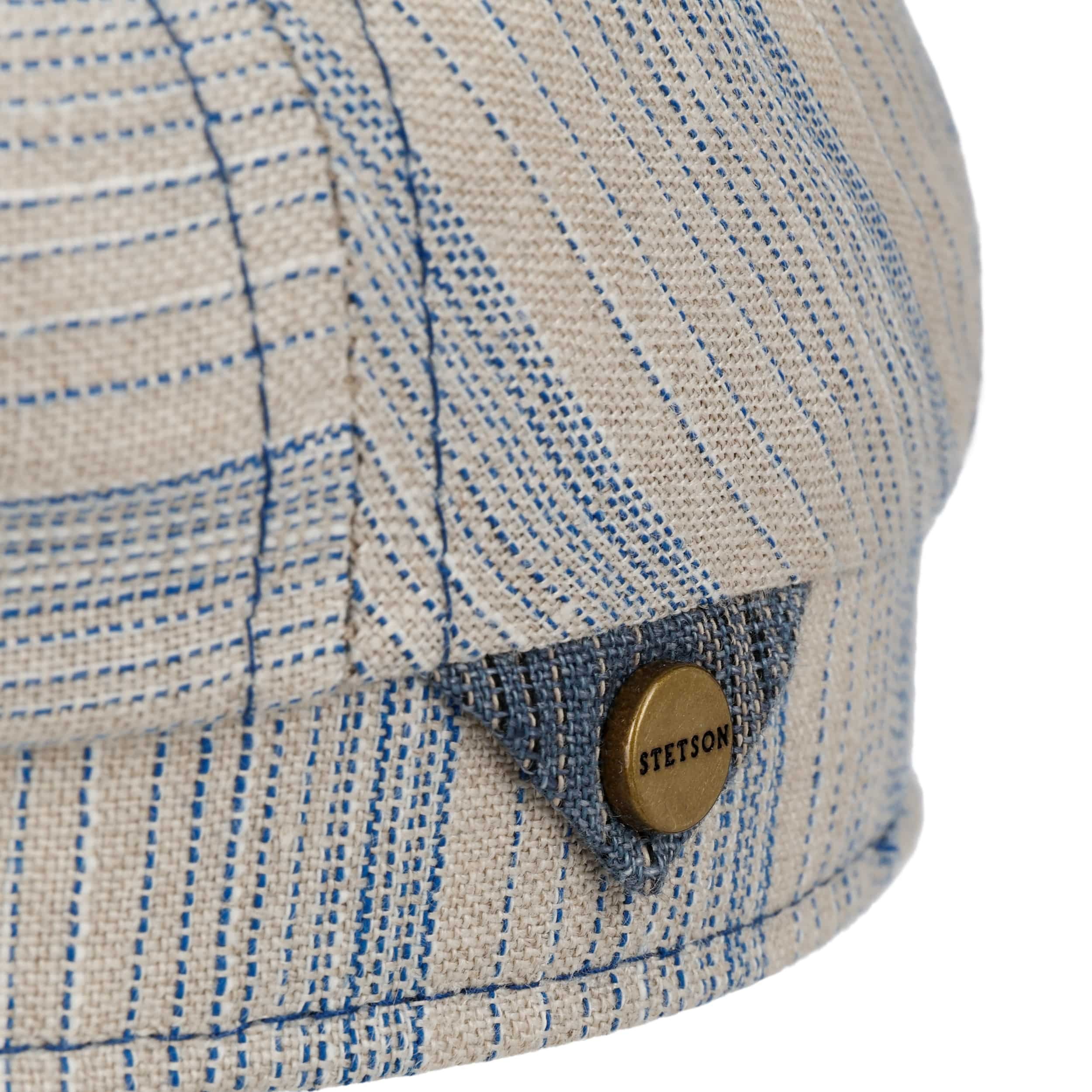 Since 1865, the name of John B. Stetson has been a synonym for best quality cowboy and Western hats. With the increasingly popular VitaFelt and VitaStraw collections, the U.S. brand has become pioneer of lightweight, water repellent and packable headwear. In the meantime, Stetson manufactures a wide range of first-class styles: army and baseball caps, flat hats, docker caps, beanies, trilbies and cowboy hats in many different designs.- Tesrick Stripe Driver Linen Flat Cap by Stetson - blue 1