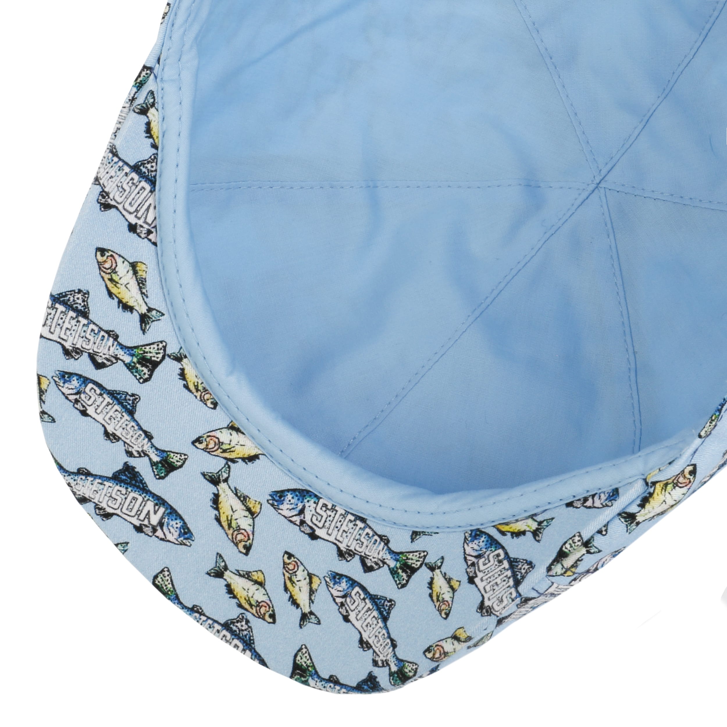 Stetson has opted for cotton for both the outer material and the lining, which offers summery quality with moisture-regulating properties. The flat cap is also equipped with EN-certified UV protection, making it ideal for holidays in southern European climes. It exudes a leisure and holiday feeling with its colourful fish pattern print made in Germany and cleverly integrated brand lettering.