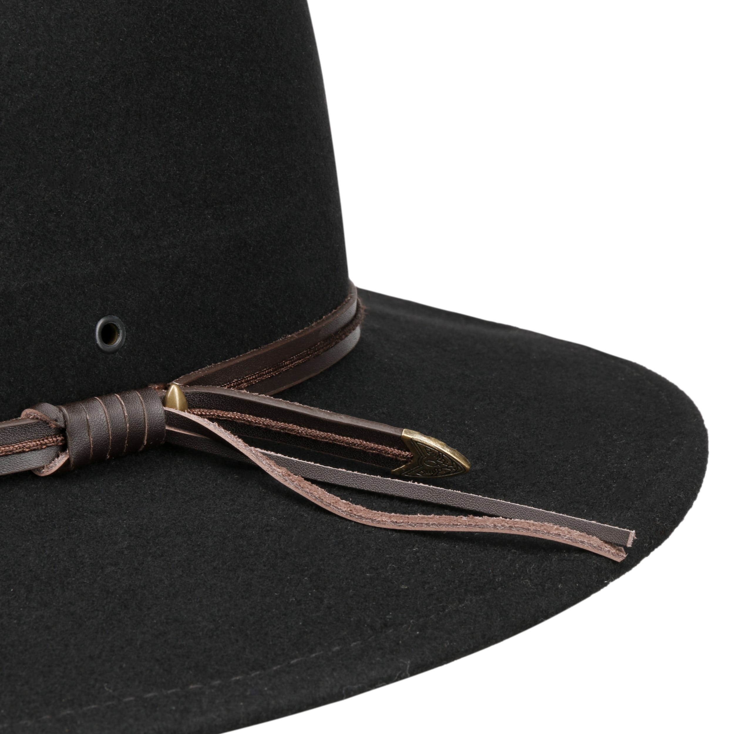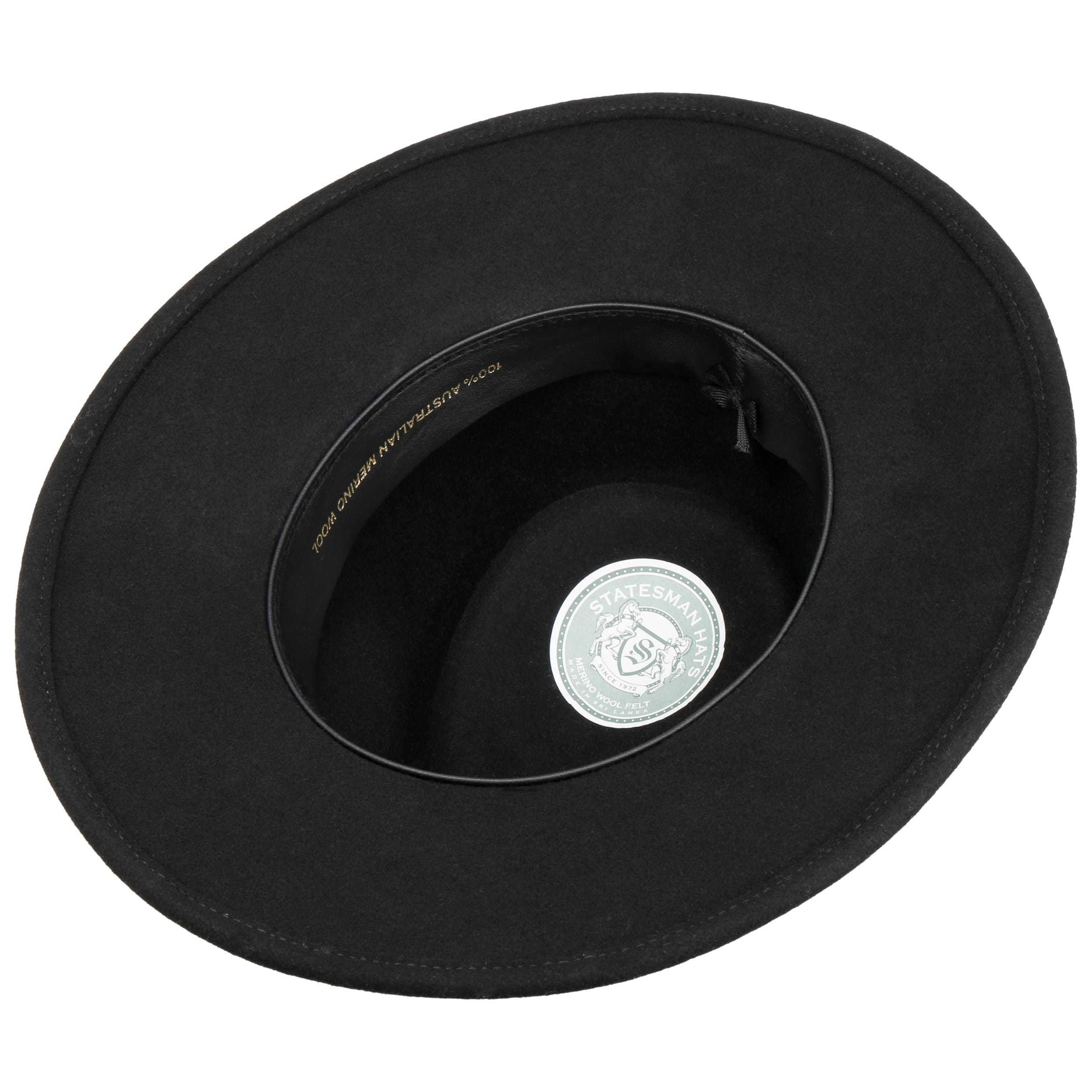 The Statesman traveller hat is made from 100% high-quality wool felt, which makes it pleasant to the skin and breathable. The timeless hat is visually impressive with a wide brim that offers welcome protection from the elements. The chic hatband is made from genuine leather, as is the exquisite lining band on the inside.