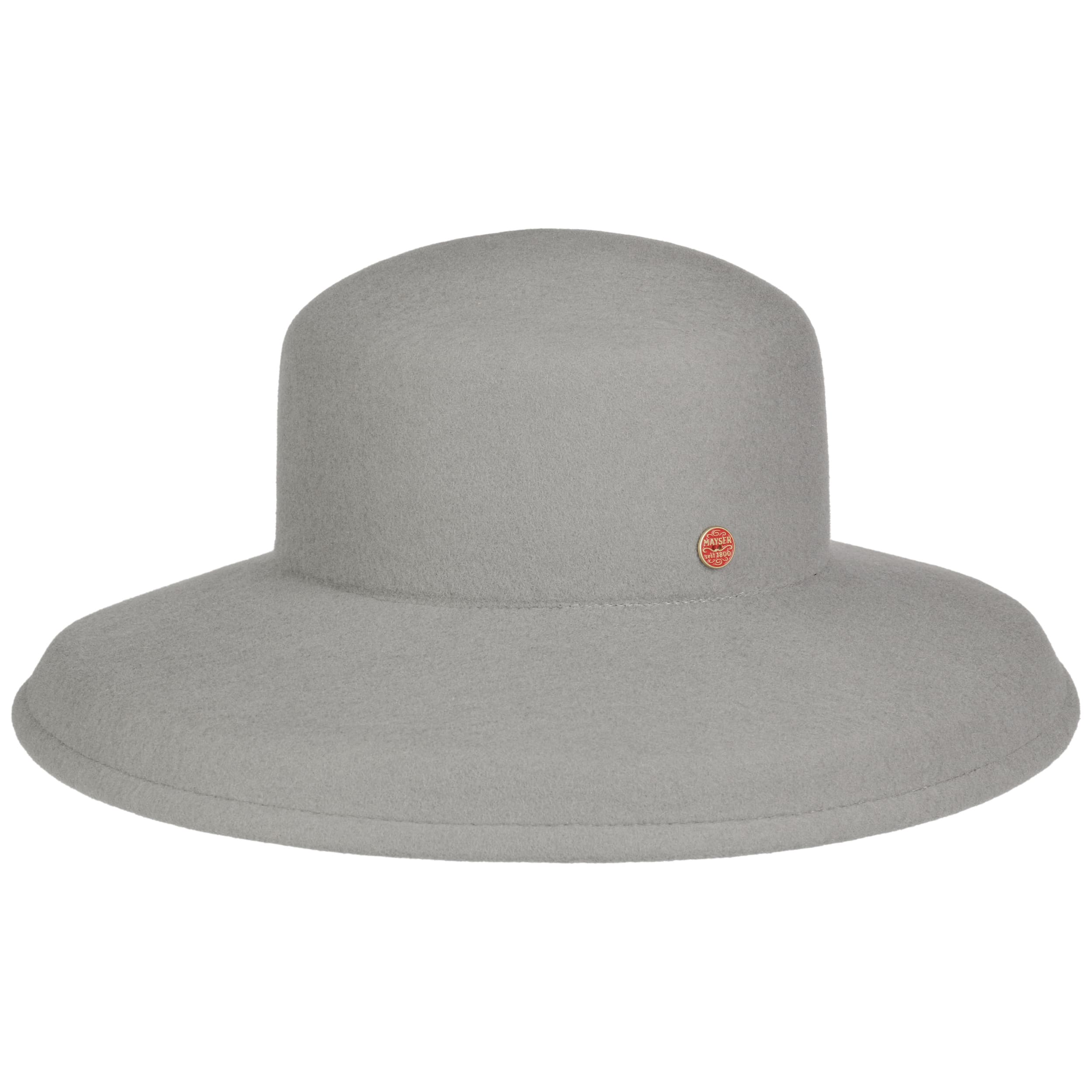 This elegant hat from Mayser enhances the modern outfits of self-confident ladies with its charming esprit. The focus of its plain-coloured design is its neat shape, which looks both attractive and striking. It is particularly the extravagantly downturned brim that makes this high-quality hat look so special.
