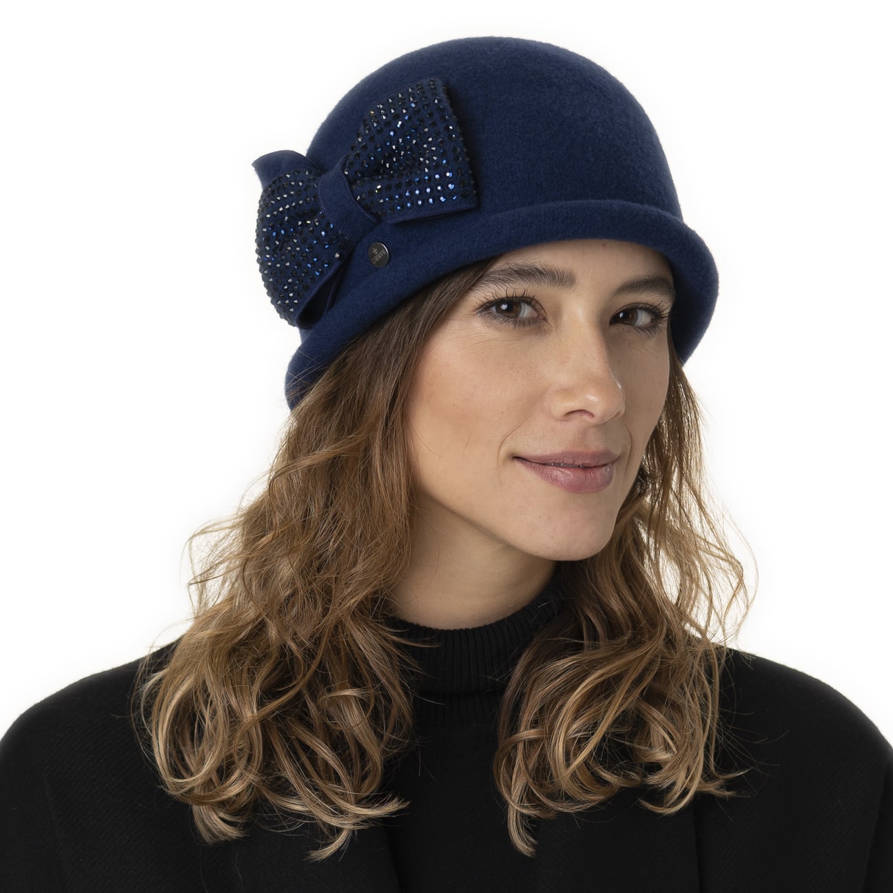 With its emphatically rounded shape, this wool hat from Lierys looks lively and invigorating. Added to this is the timelessly elegant appearance of the high-quality material from the Woolmark® brand. The felt is made of 100% new wool, which looks elegant and also offers reliable protection against the cold and wet. A bow with countless sparkling stones stands out as a visual highlight on this handmade headgear.