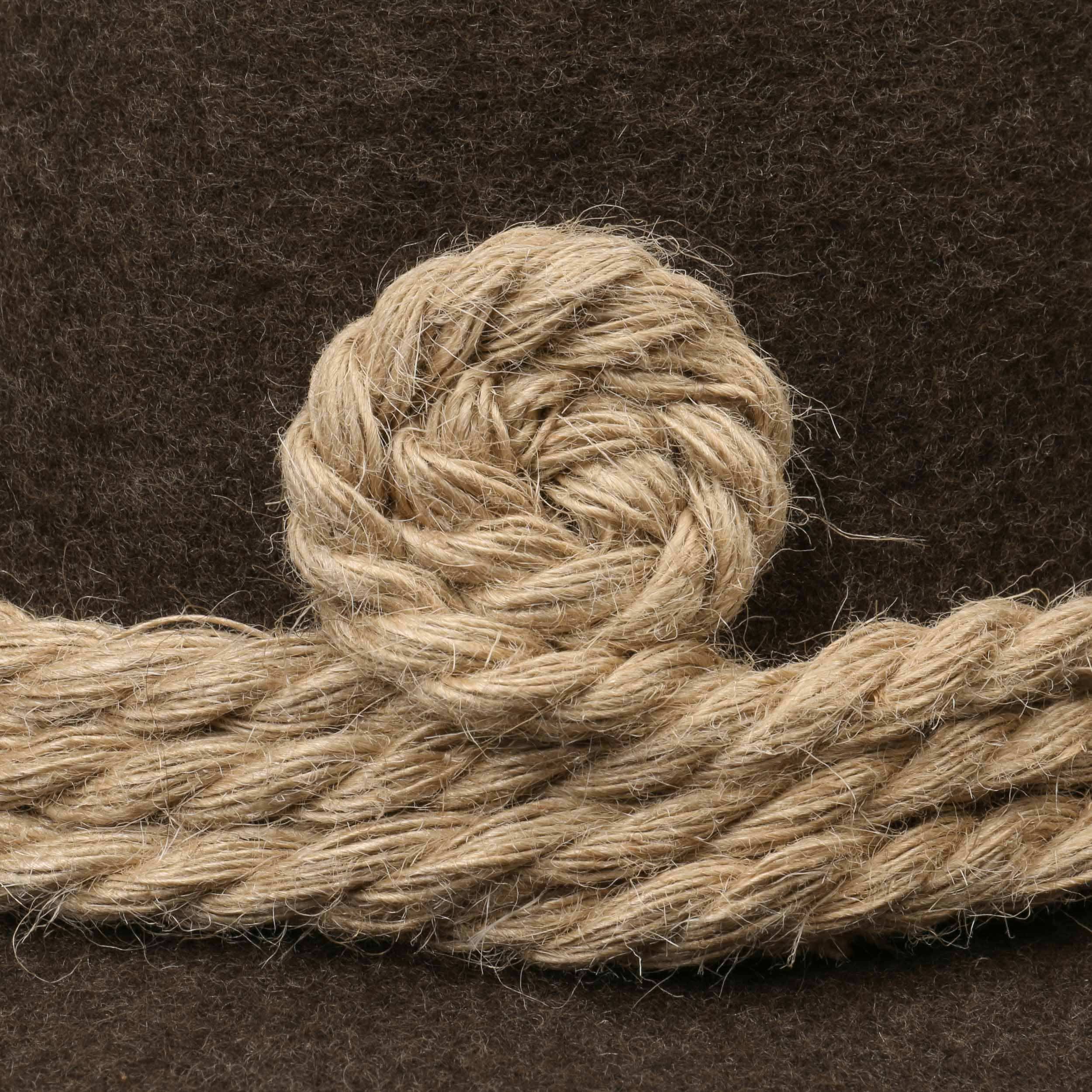 This traditional Tyrolean hat has a natural edge and is made of 100% wool felt. The three rows of cord trim that are wound together at the back ensure an expressive appearance. The slightly different appearance of one hat to another is a sign that each hat is made in the old milliner tradition and is therefore unique.