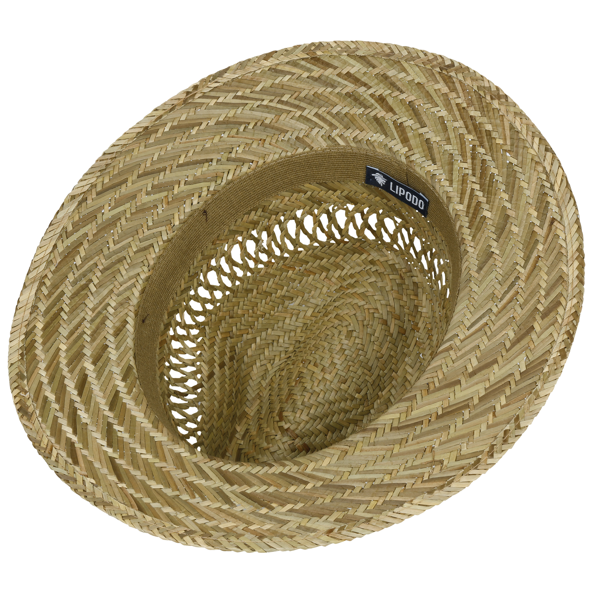 This attractive traveller hat from Lipodo is bound to win you over with its natural charm that gives leisure outfits a carefree summery touch. Its wickerwork material, made from 100% straw, displays a stylish zigzag pattern. Another woven pattern can be seen in the centre of the crown. This airy yet decorative accent is made the centre of attention by a high quality leather effect trim band.