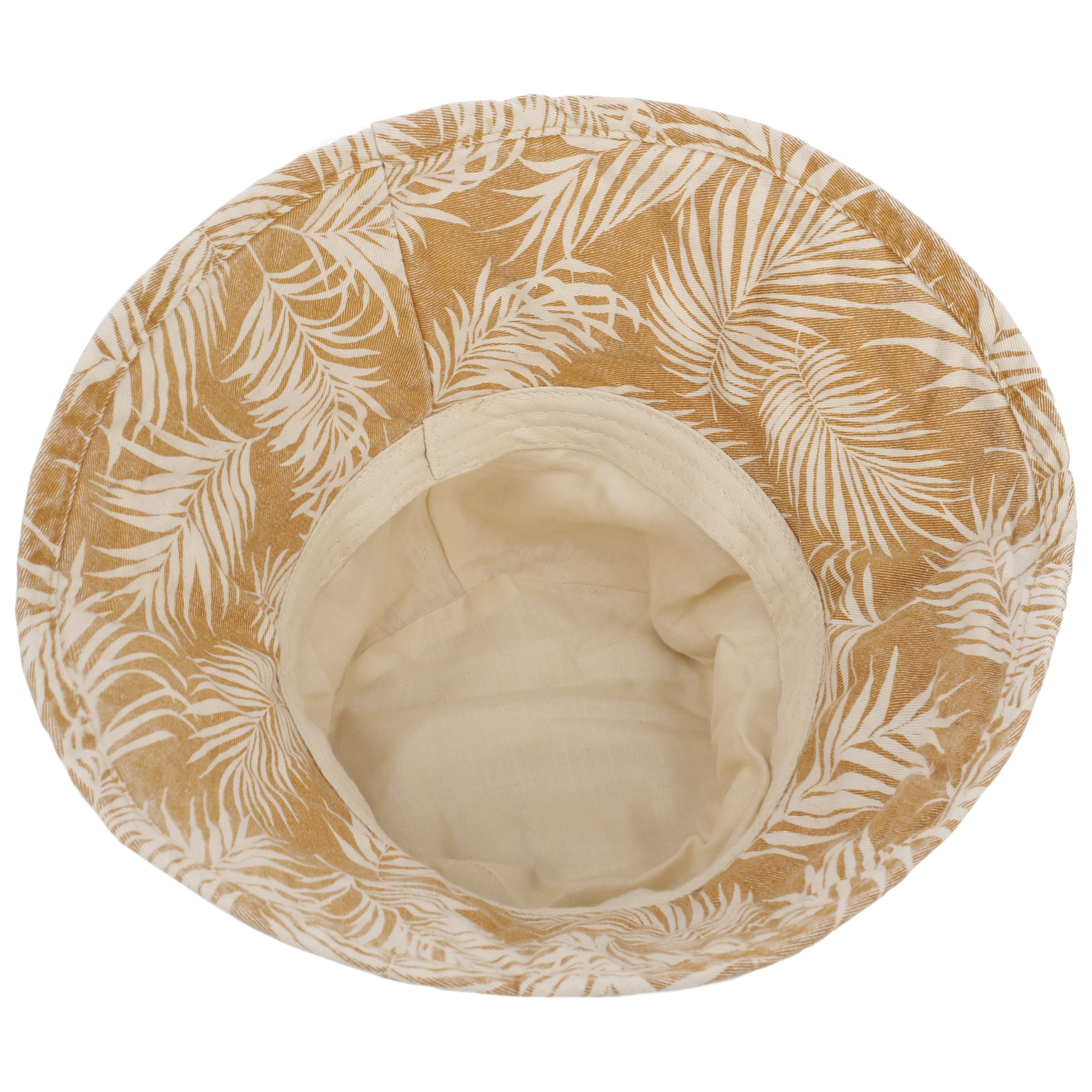 Classic bucket hat on the top, long, sweeping brim on the bottom. This makes the sun hat made of pure organic cotton the ideal protection against aggressive sunshine or prying eyes. So you can chill out and enjoy a cool drink with your homies. The original leaf pattern looks just as good in the urban jungle as it does on the beach of a lonely island.