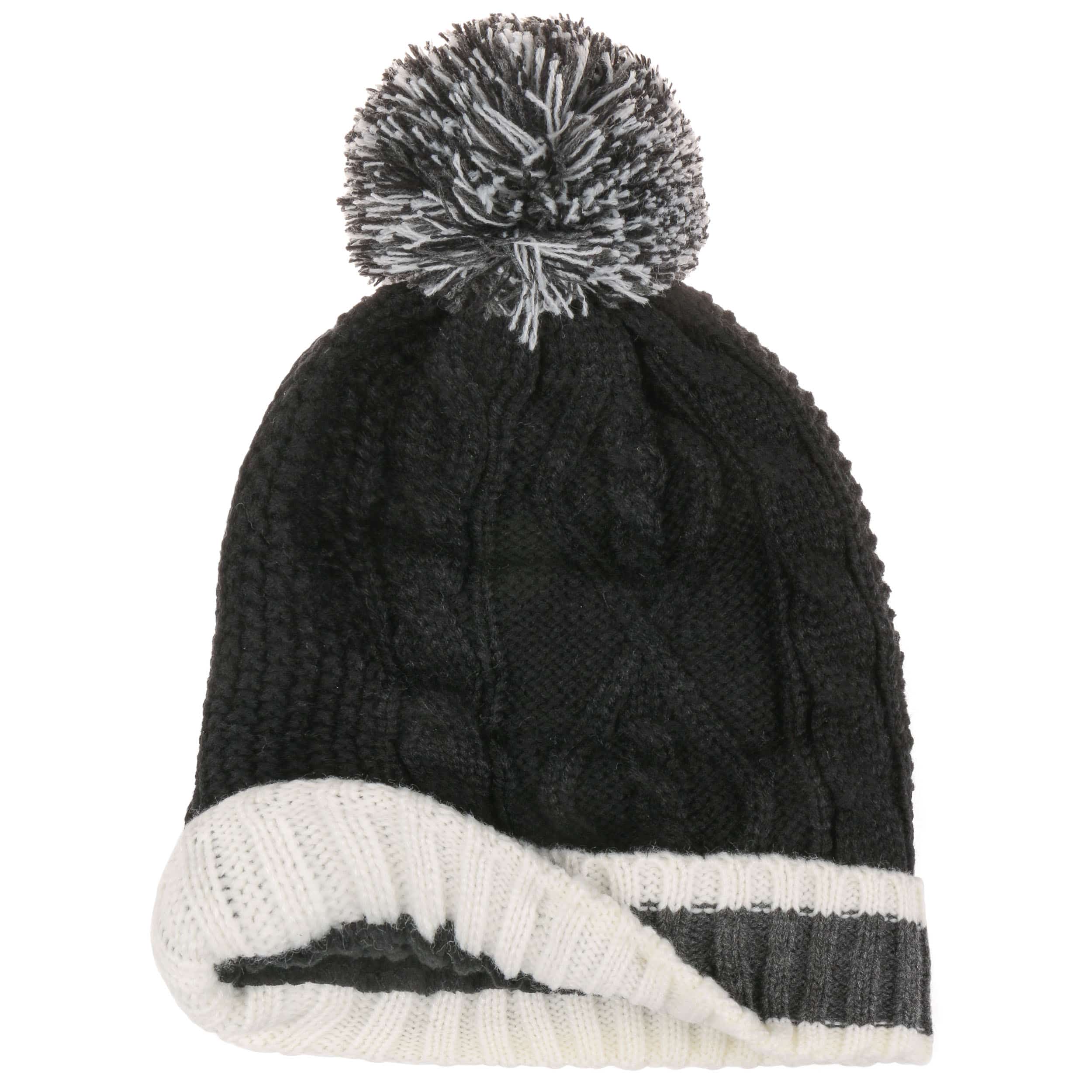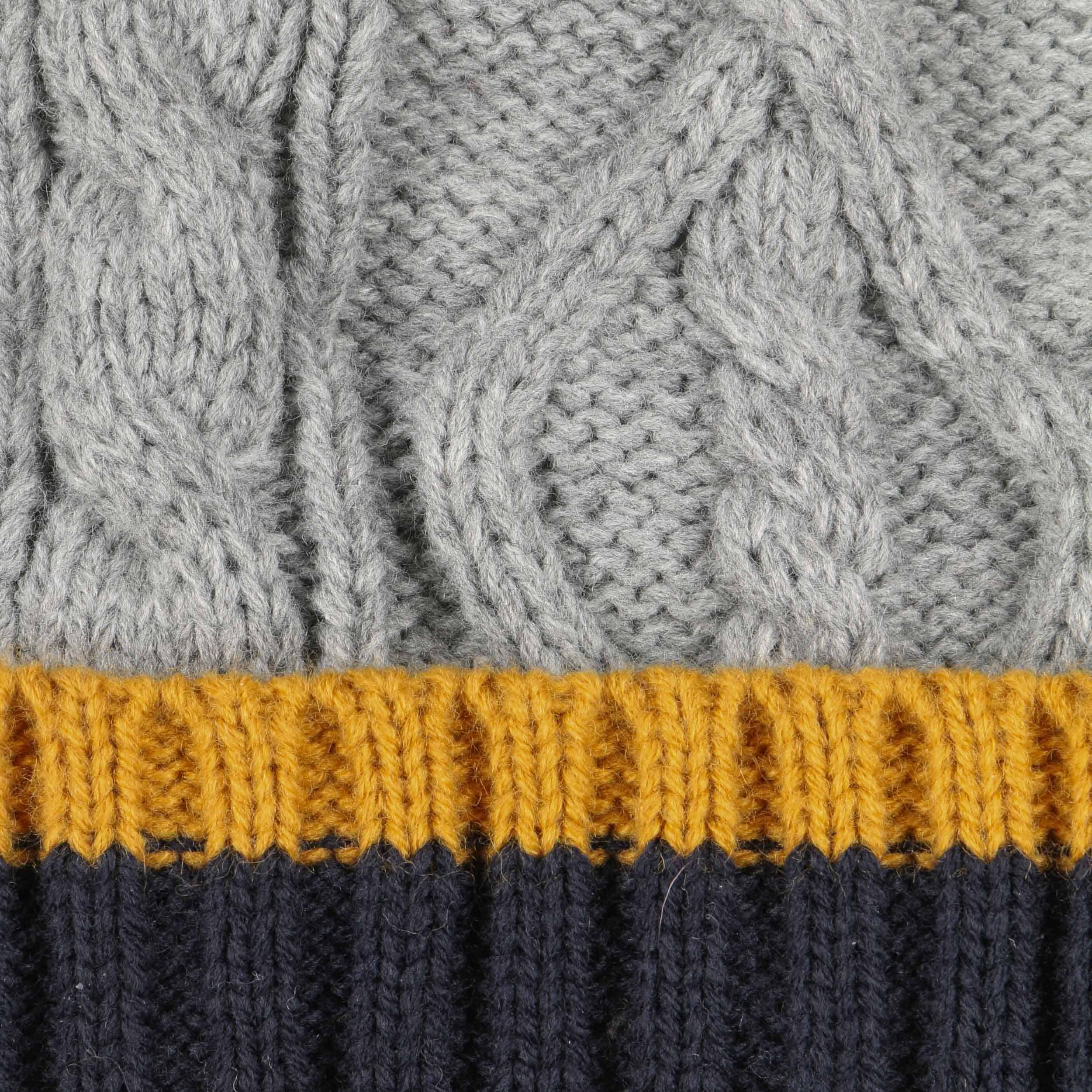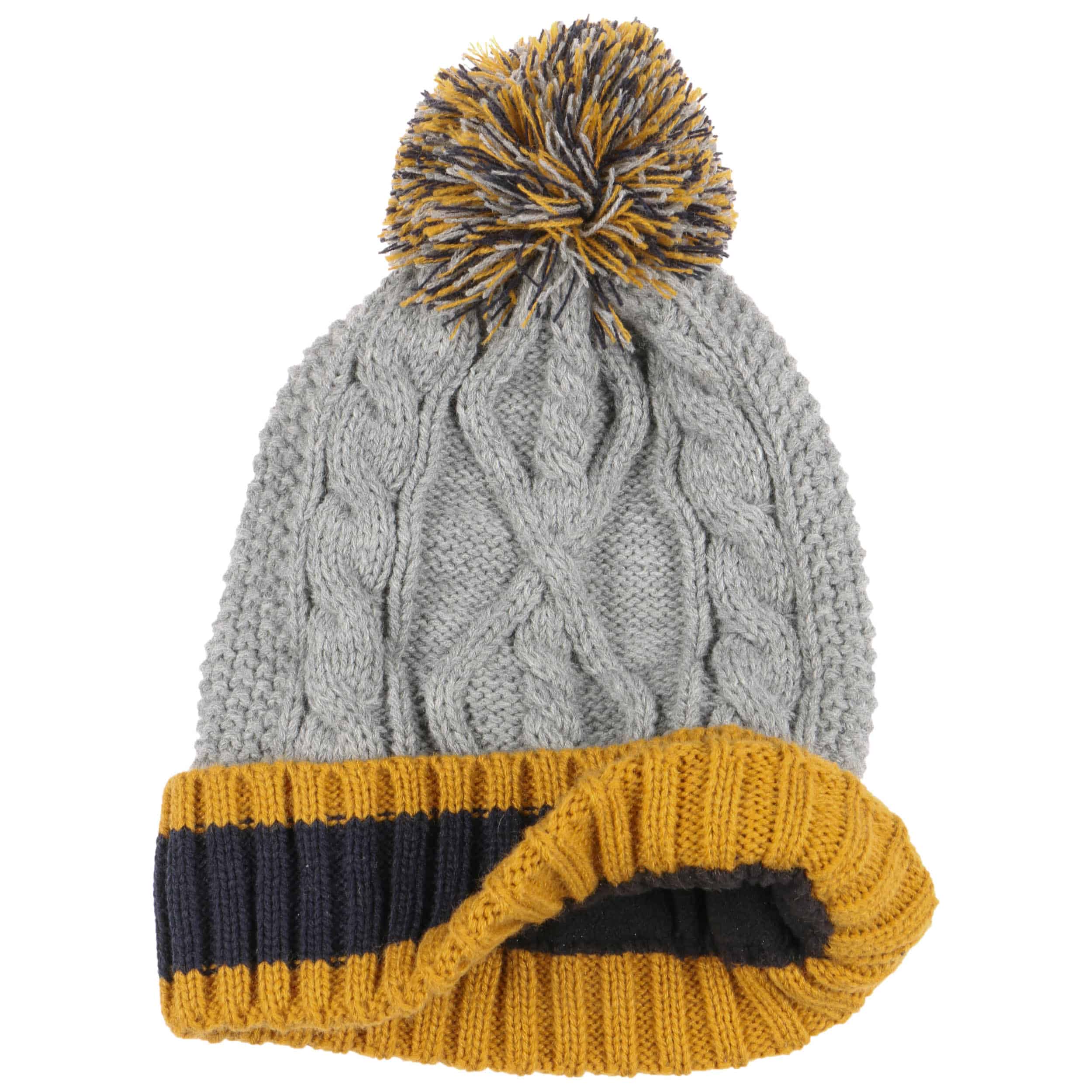 Inside, the Lipodo beanie has a heat-insulating fleece lining which nestles protectively against the head right down over the ears. Above the trendy striped turn-up brim in a rib knit, the pompom hat continues on in a fashionable plain-coloured cable pattern and ends in a pompom made up of all the colours combined. This makes the winter hat the cosy high point of any outfit and versatile to combine with outfits.