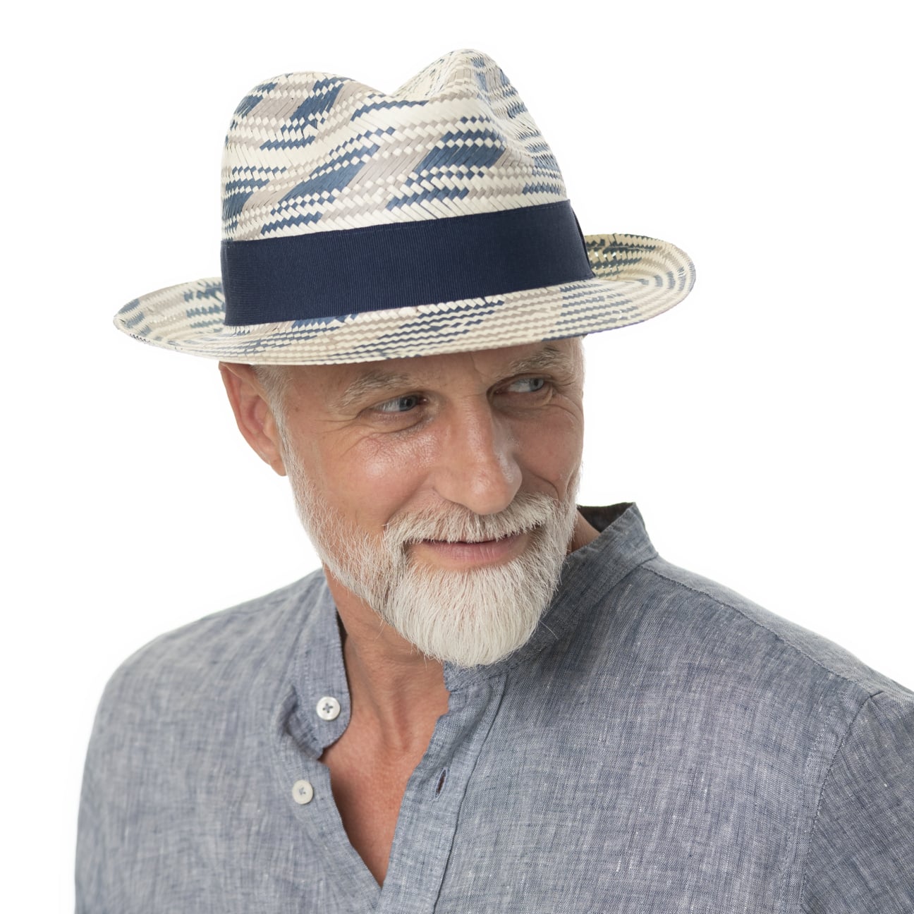 Tricolour Fedora Straw Hat by Lipodo blue-grey
