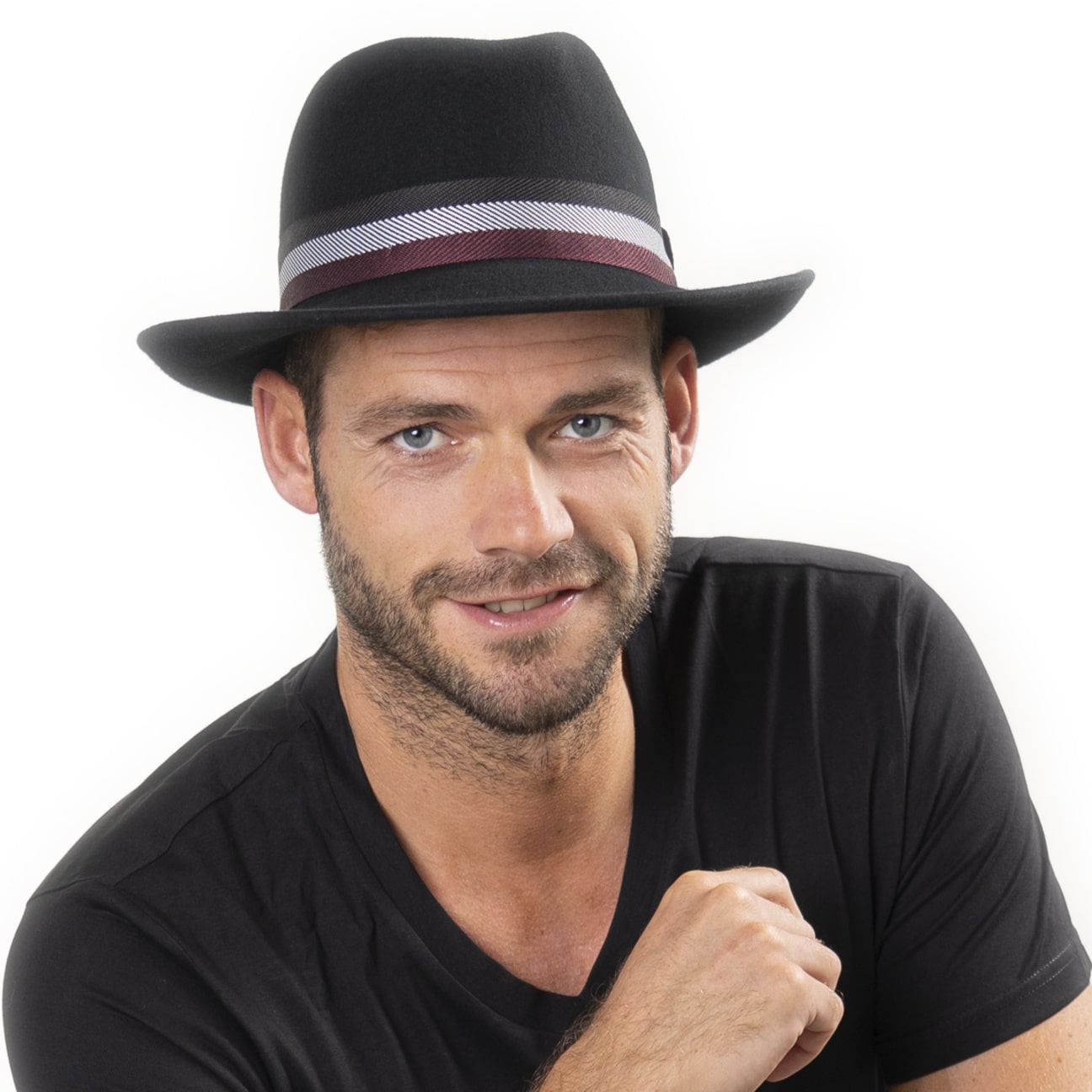 - Tricolour Ribbon Bogart Hat by Lipodo - bordeaux 1