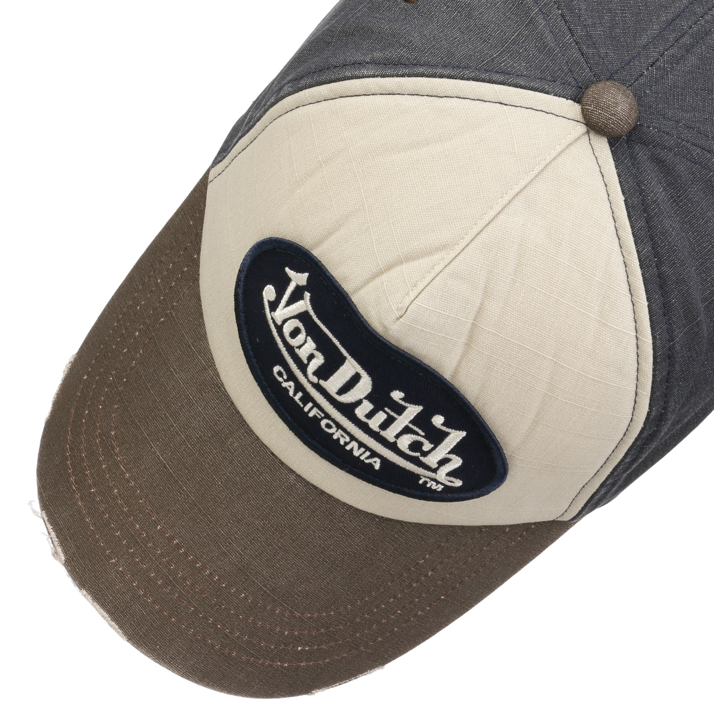Von Dutch is a Californian cult brand which was founded in 1999. The fashionable designs appeal with a modern rustic charm. Von Dutch is especially well-known for its trucker caps – acclaimed by celebrities and at the same time a trendy accessory for everyone. The casual styles with a retro look really stand out from the crowd and are stylish eye-catchers. Von Dutch caps made it from the US American biker scene to the heads of fashion-lovers worldwide. The label has achieved international success with fans all over the world.- Trucker Cap Distressed by Von Dutch - grey-beige 1
