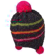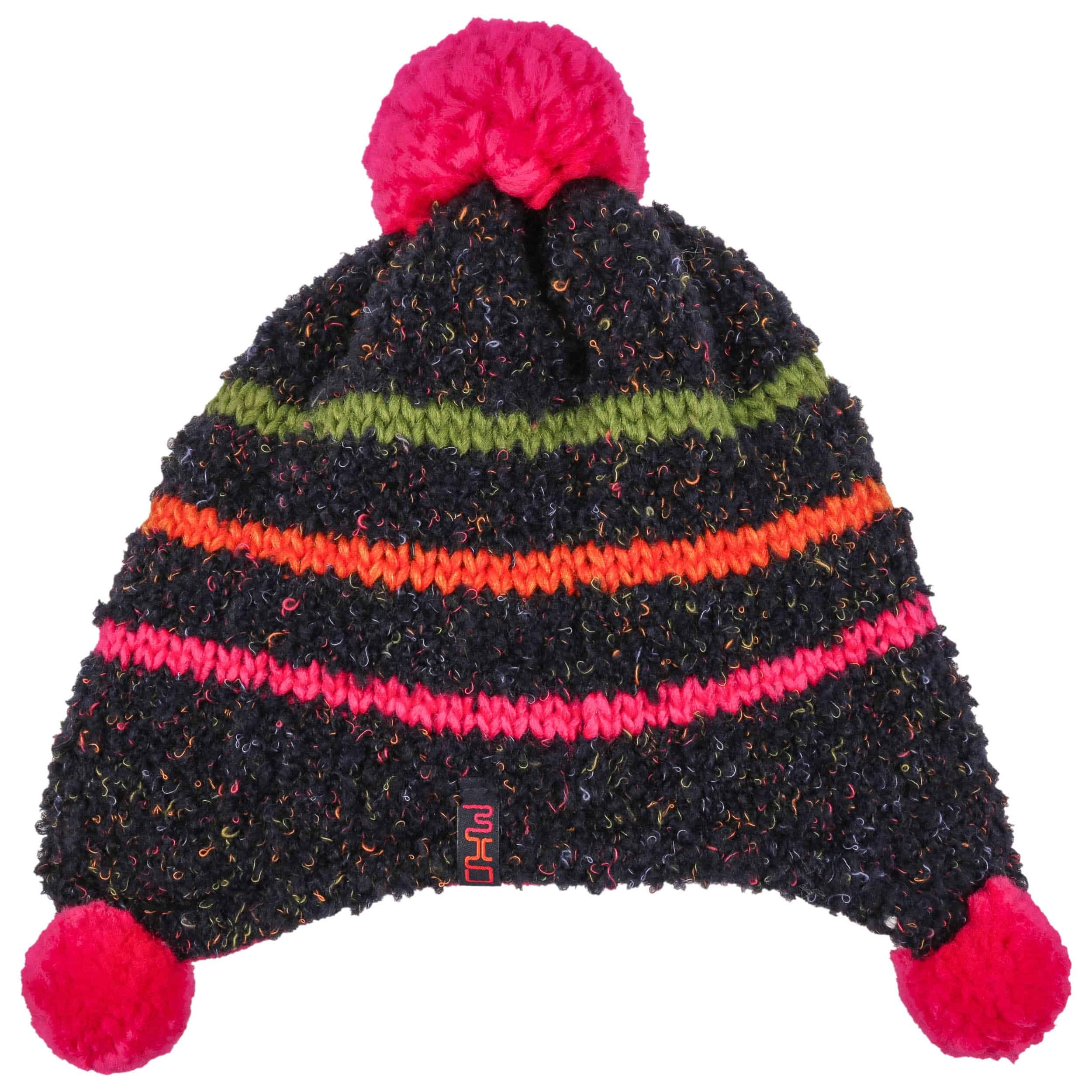 Even stubborn hat resisters will be quickly won over by this maximo beanie. An exquisite, stretchy mix of materials with wool and cotton is complemented by a cuddly, warm, supple fleece lining that stretches right down over the elongated sides. The cheerful striped pattern and fluffy pompoms on the side and top make children’s eyes light up as soon as they see this Inca hat. Kids will want to wear it.