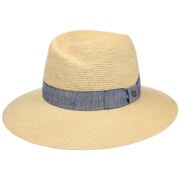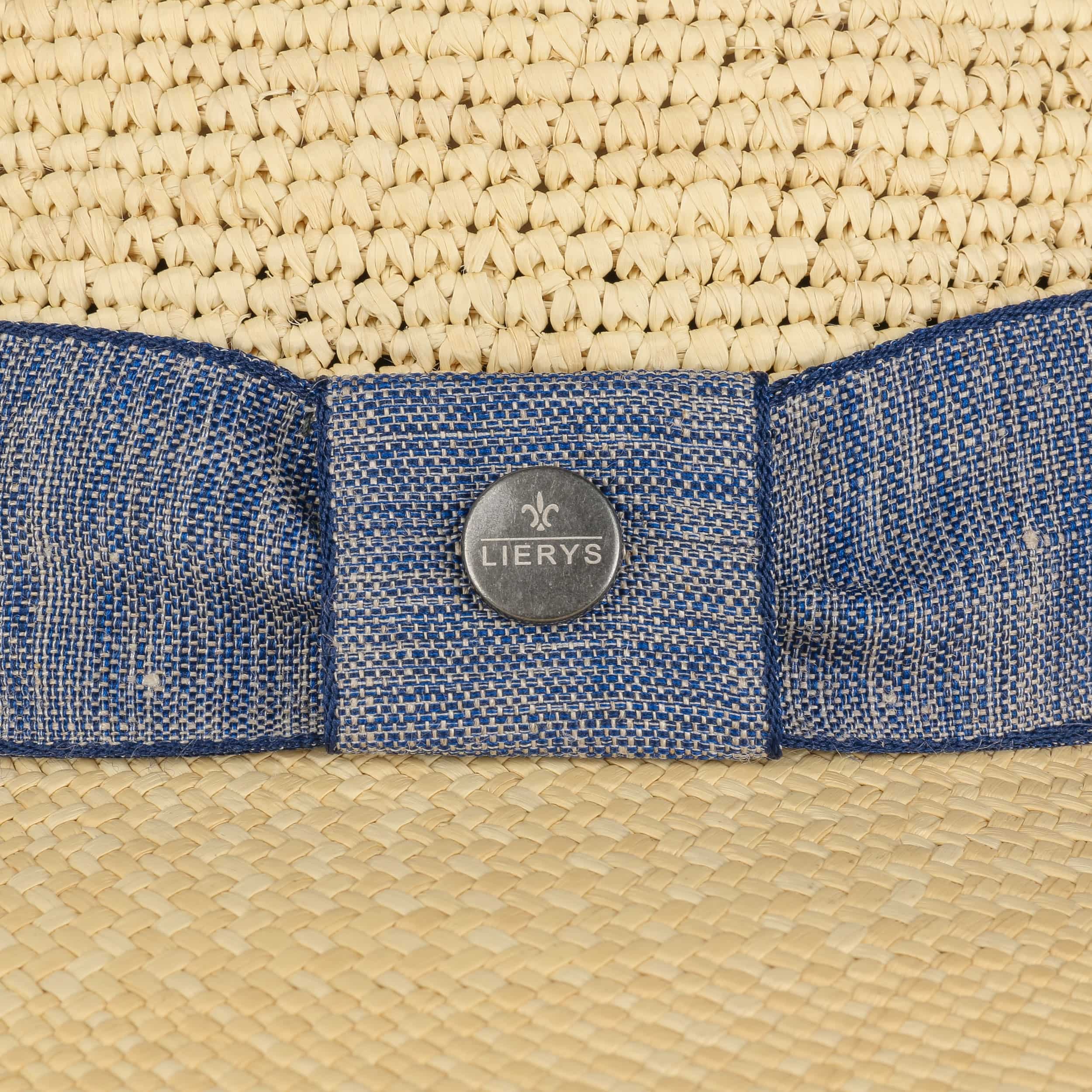 The label with the iris logo has dedicated itself to making modern, stylish and comfortable headwear along with matching accessories. Baseball caps, Trilby hats and Bogart hats have been made into timeless designs that give an outfit a classy splash of colour and bring a smart cut to your headwear. High quality knitted sets, which are available individually as beanies, peak pull on hats, Laplander hats, headbands, scarves, gloves etc., discreetly accentuate each lady’s or gentleman’s individuality. From woollen hats to flat caps, Lierys accessories can be worn in endless fashionable combinations.- Twisted Crown Women Panama Hat by Lierys - nature-blue 1