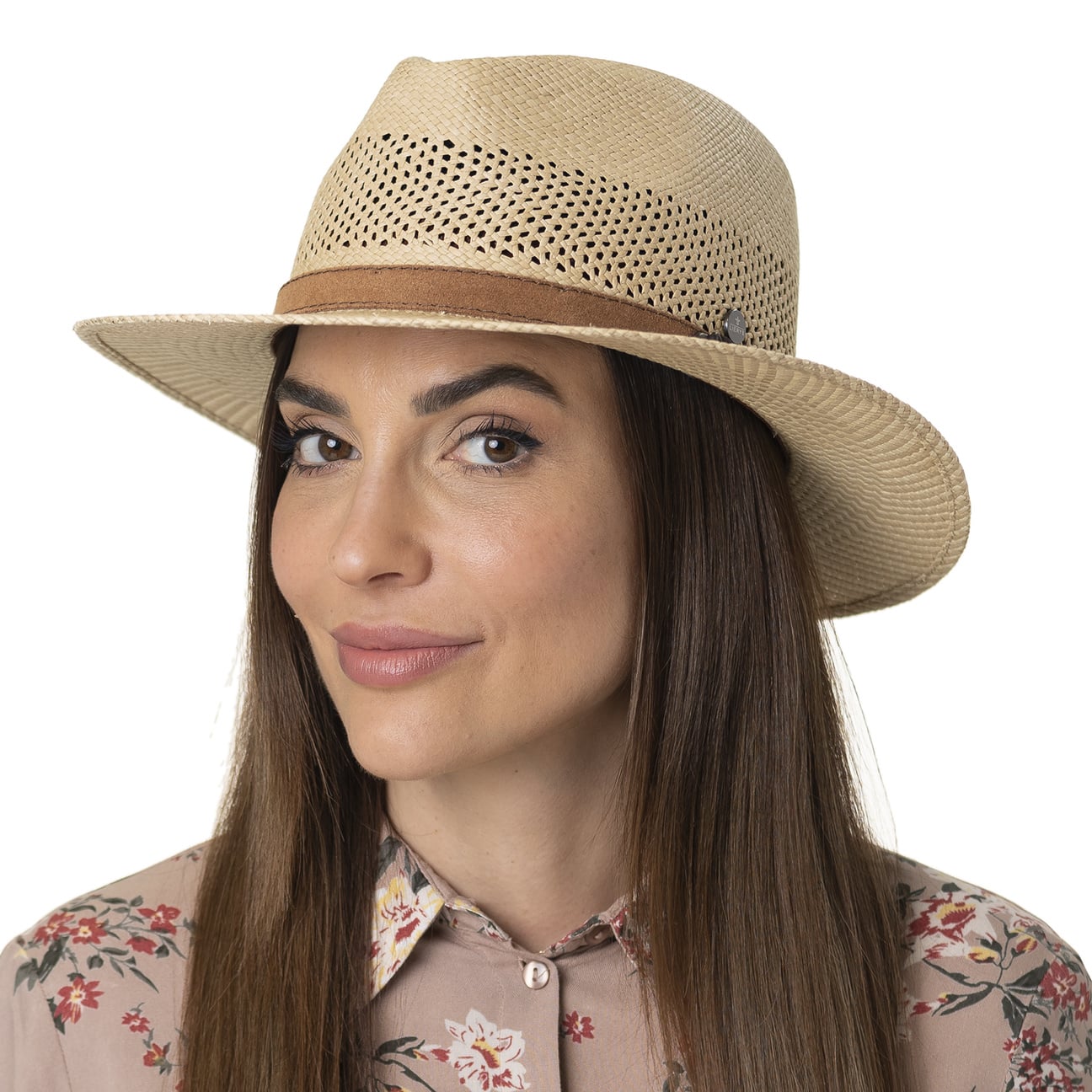 In summer, you can’t do without the airy straw hat from Lierys. It is woven in Ecuador from 100% Panama straw and features a brim patterned in two natural shades. A wide air-permeable strip is incorporated into the crown to keep your head cool on hot summer days. The narrow trim band is made of leather.