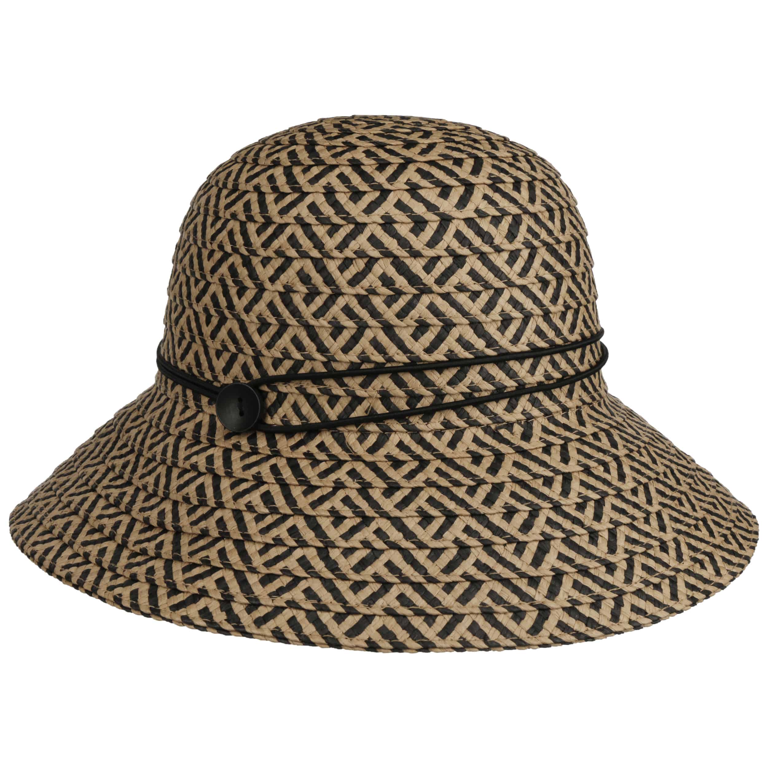 With its beautiful, high-contrast all-over pattern, this carefully crafted cloche from Seeberger attracts attention. The abstract zigzag is presented in powerfully contrasting colours - and is particularly expressive in this way. The look is rounded off by a modern cord decoratively placed around the crown.