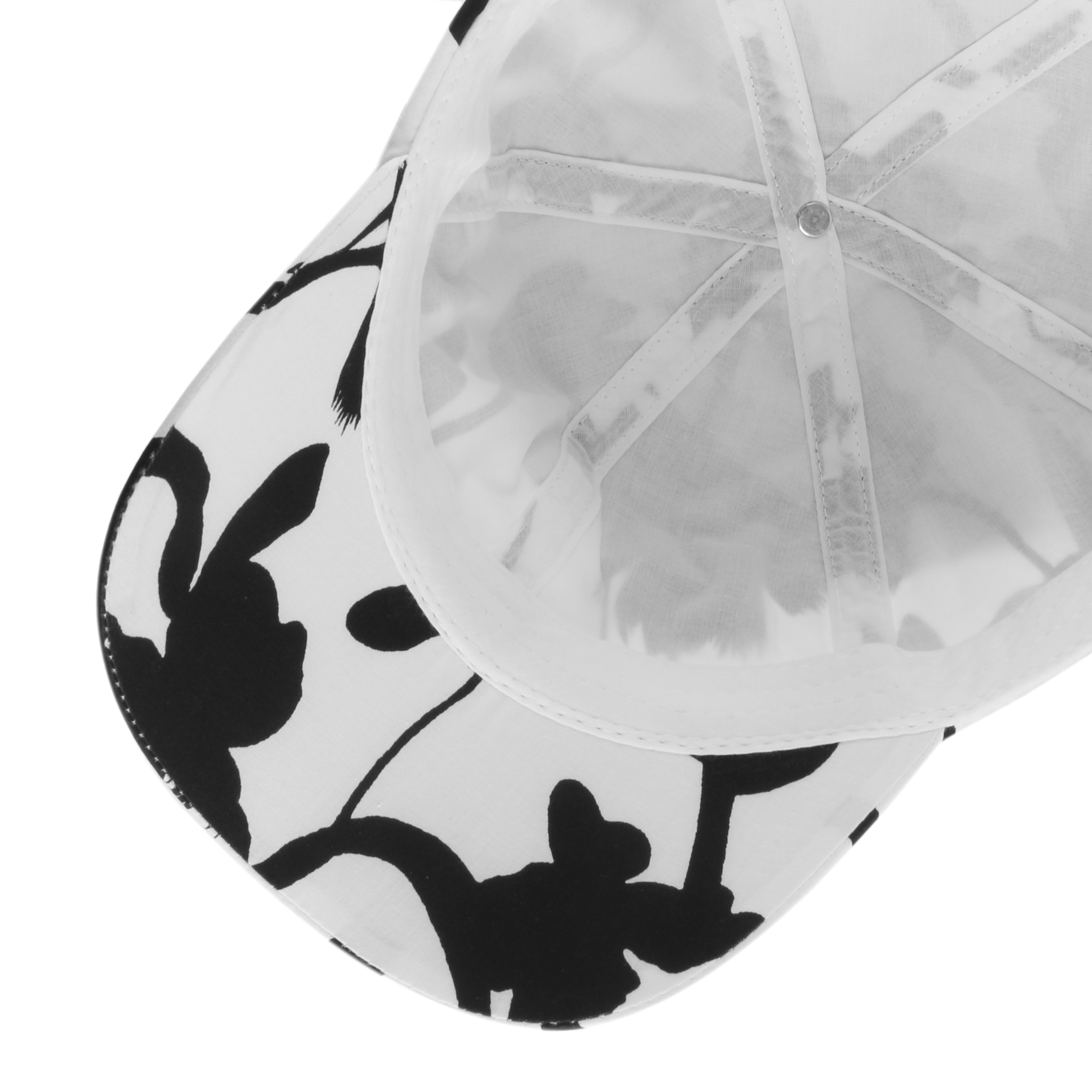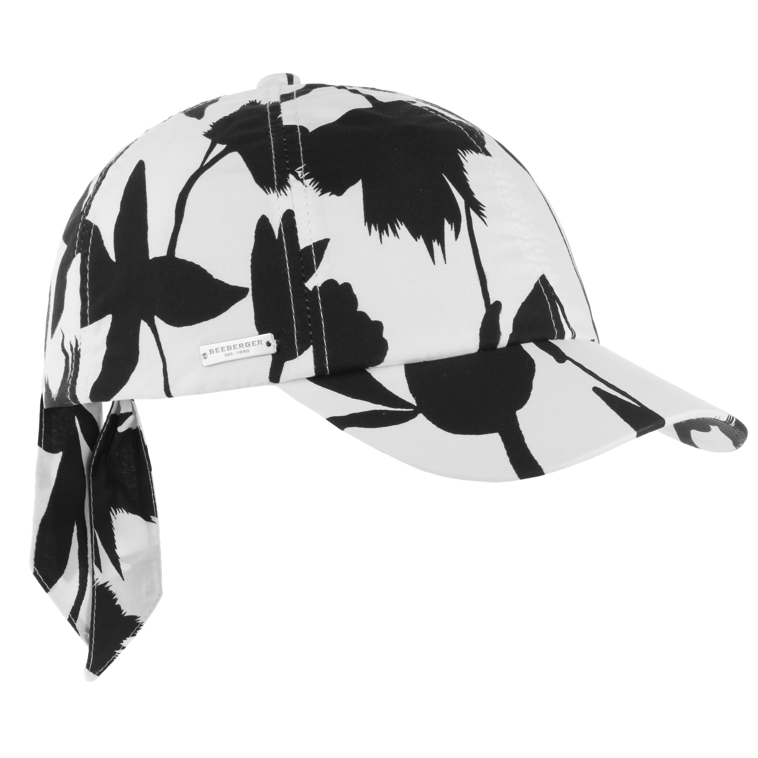 Floral pattern in a stylish two-tone look: This sun hat from Seeberger skilfully combines a floral design with classic sportiness. This means the practical cap looks just as good on the sports ground as it does in the city. Made from pure cotton, the hat with sweeping peak is lightweight and comfortable to wear. The size is adjusted using the bow at the back of the head, which also adds a fashionable accent.