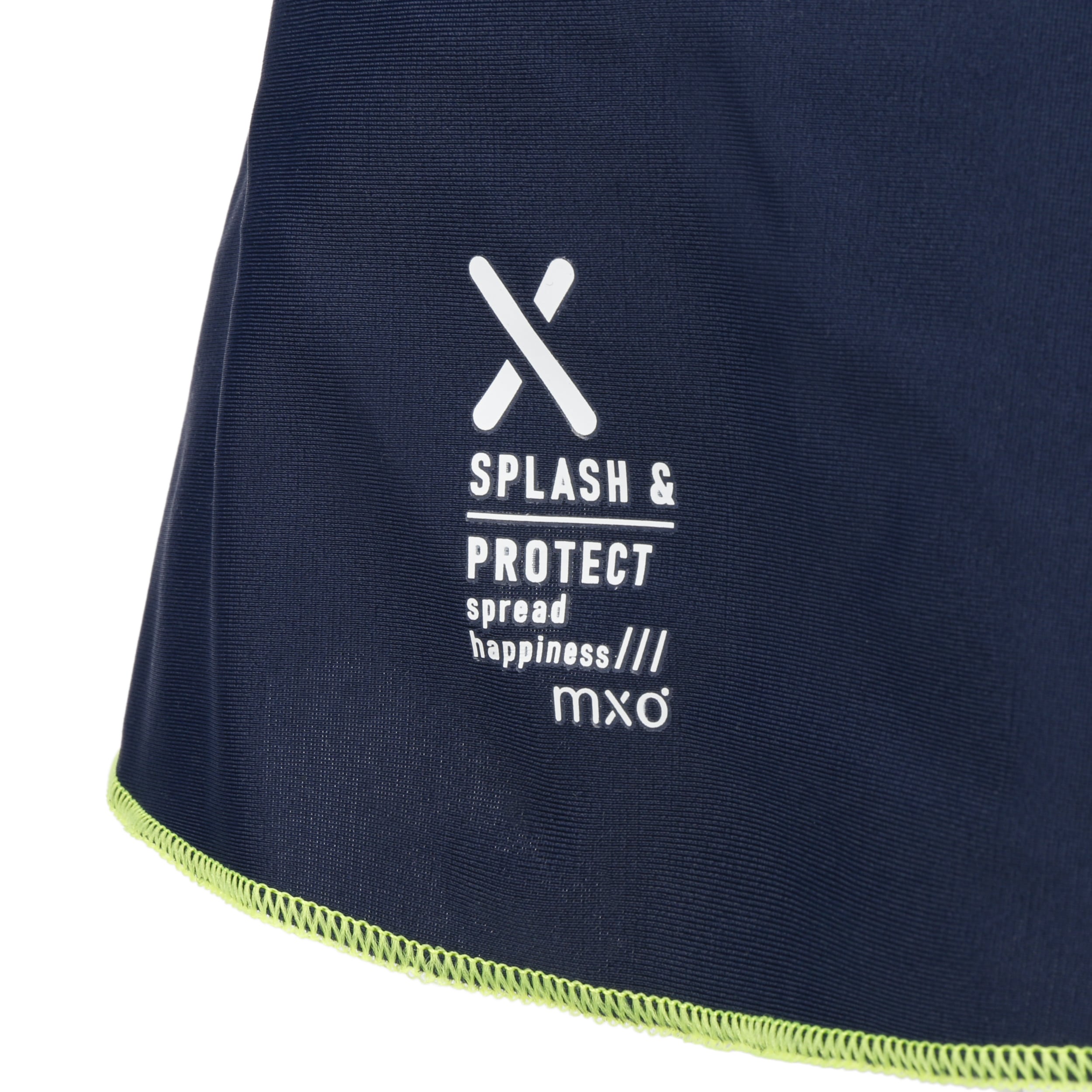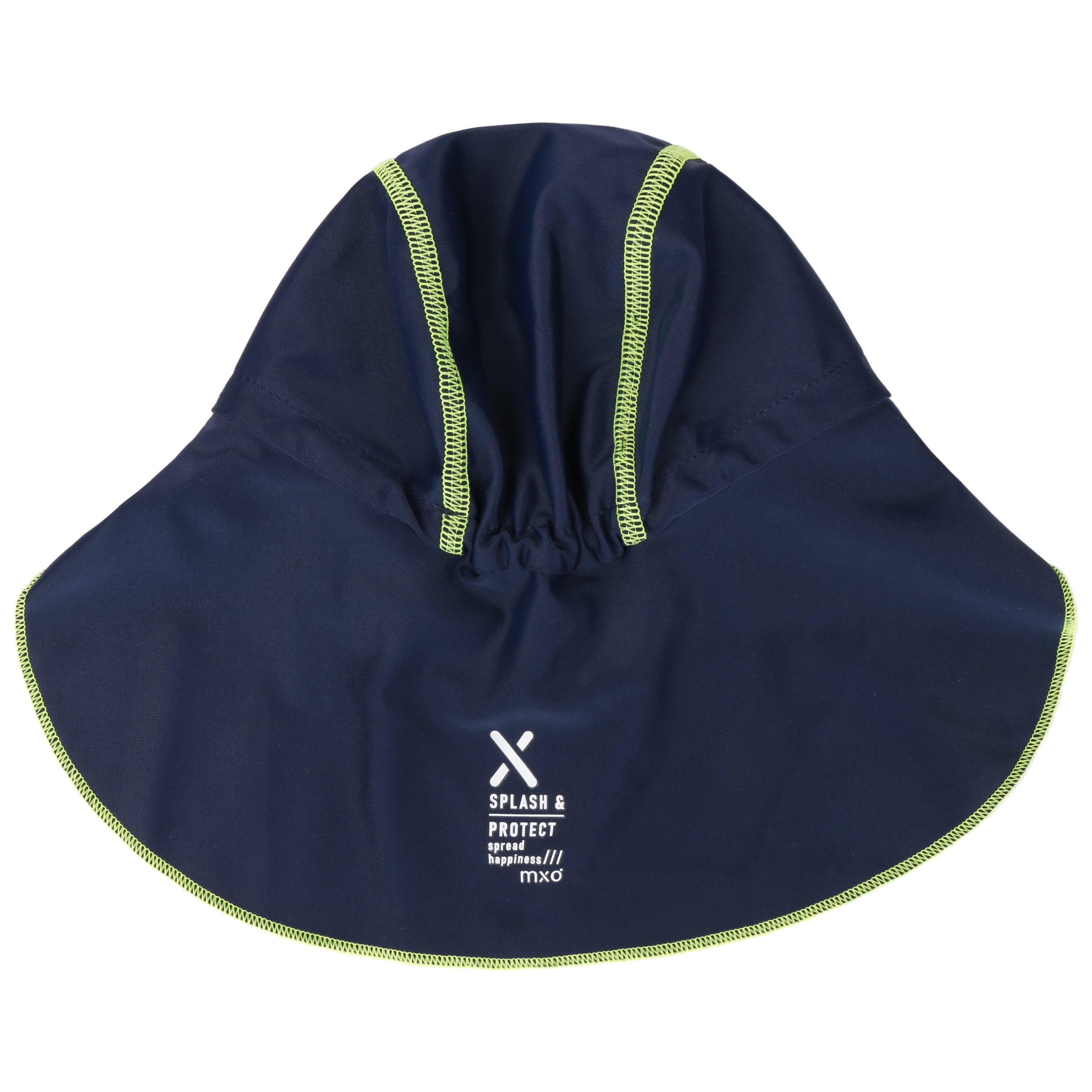 This sporty cap from Maximo is an indispensable favourite when frolicking in the waves or swimming in the paddling pool at home. Even when wet, it sits lightly and comfortably on the head and protects against intense UV radiation with factor 50+. The long neck protector also covers the parts that swimming costume or beach shirt leave free. The cool two-tone look appeals to boys and girls.