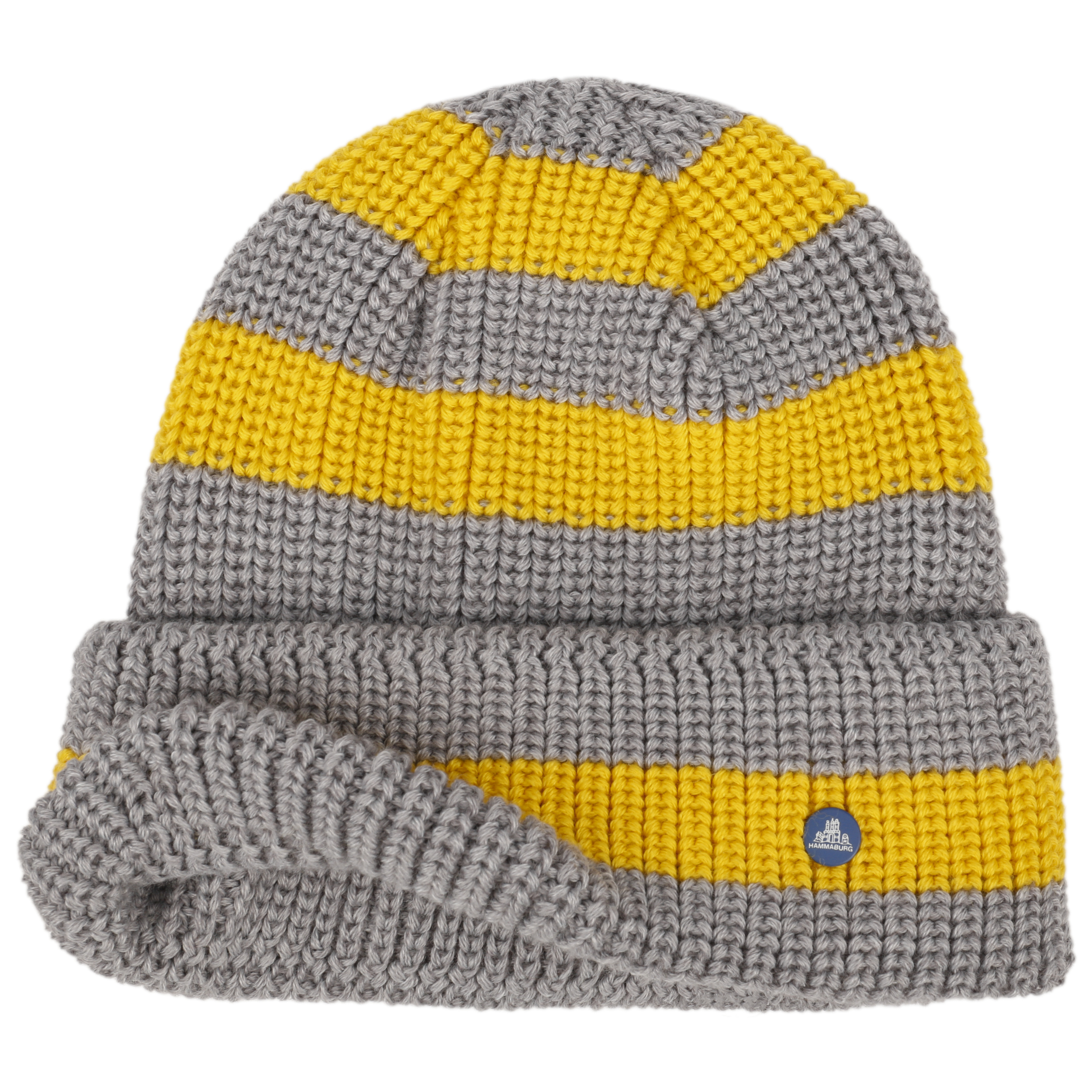 With striking block stripes in bright colours, this soft winter hat will put you in a good mood. The wide turn-up cuff and the coarsely knitted stitches give the beanie a sporty look that goes perfectly with jeans and anoraks, leather jackets and sneakers. Whether lady or gentleman, this trendy Hammaburg cap looks good on any head.