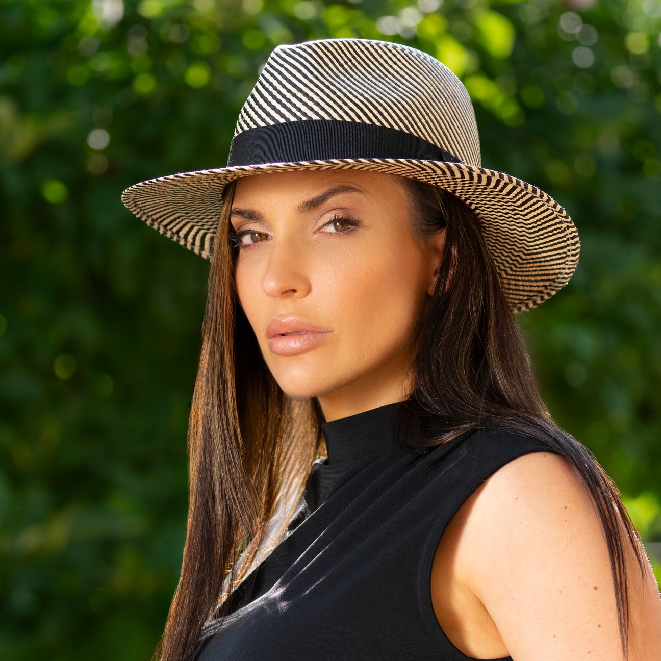 Fashionable summer hat with integrated UV protection.