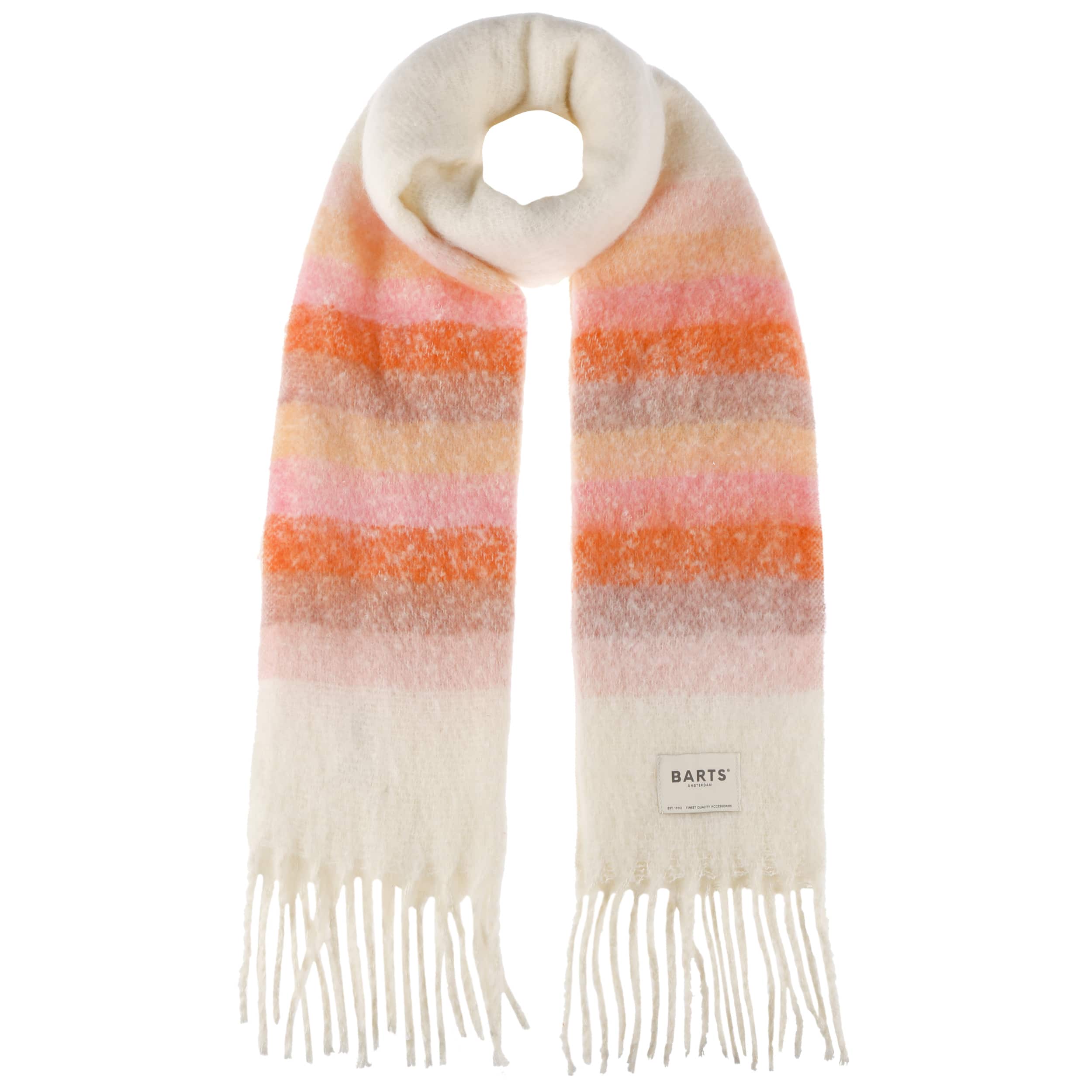 This woven scarf from Barts is both sustainable and comfortable, made from fibres derived from recycled plastic. Its fine craftsmanship, long fringes at both ends and subtly blended stripes give this winter scarf a smooth, stylish look. It pairs beautifully with any outfit, whether worn simply or wrapped twice around the neck.