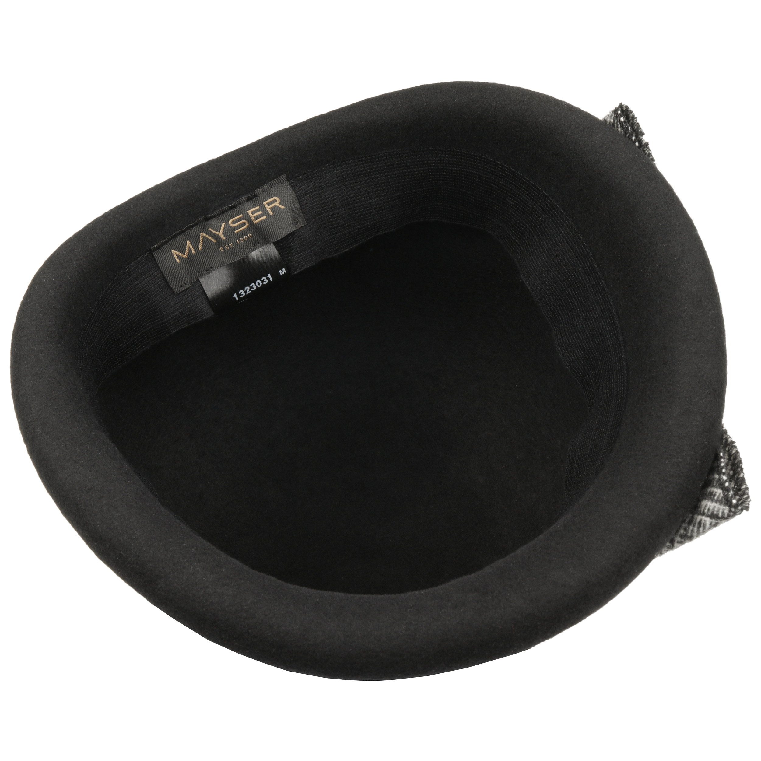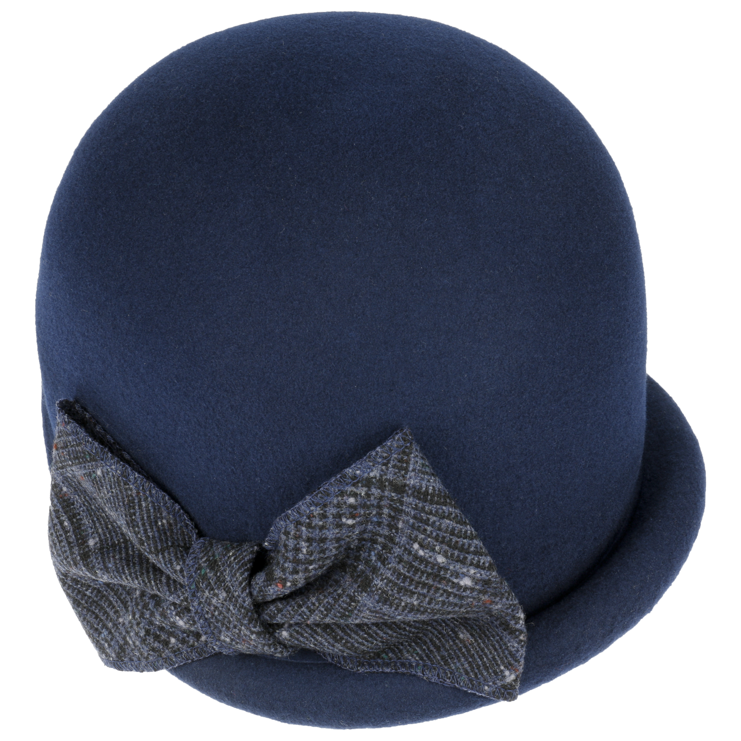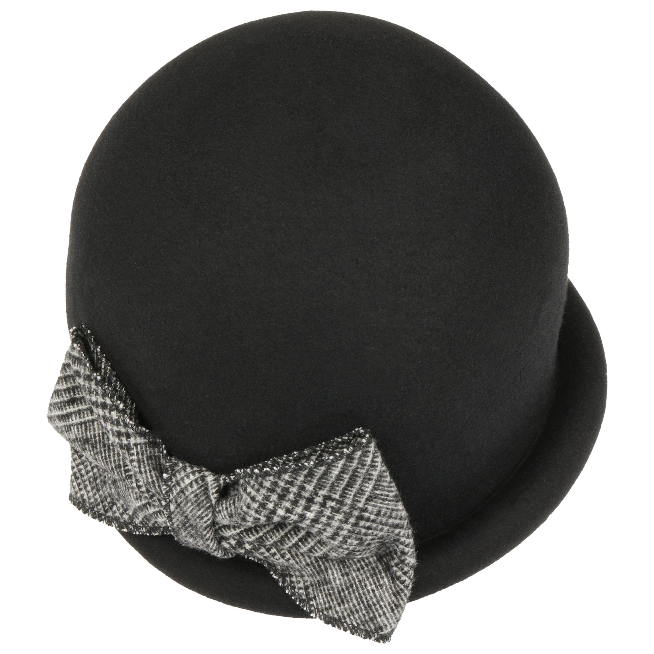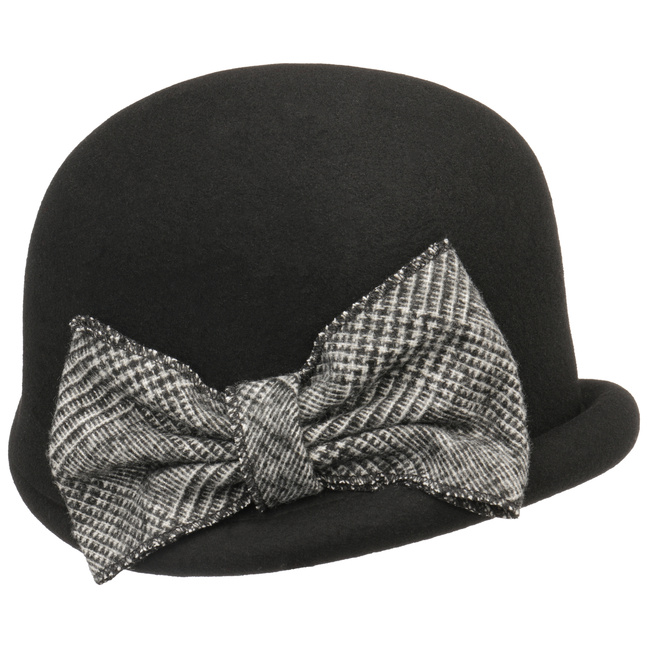 With its modern vintage look, this high-quality cloche from Mayser looks particularly smart and exciting. Rounded shades and an opulent, visually contrasting bow appliqué make this handmade hat into an attractive eye-catcher. One of the hat’s special features is the partially turned up brim, which has been artfully rolled upwards.