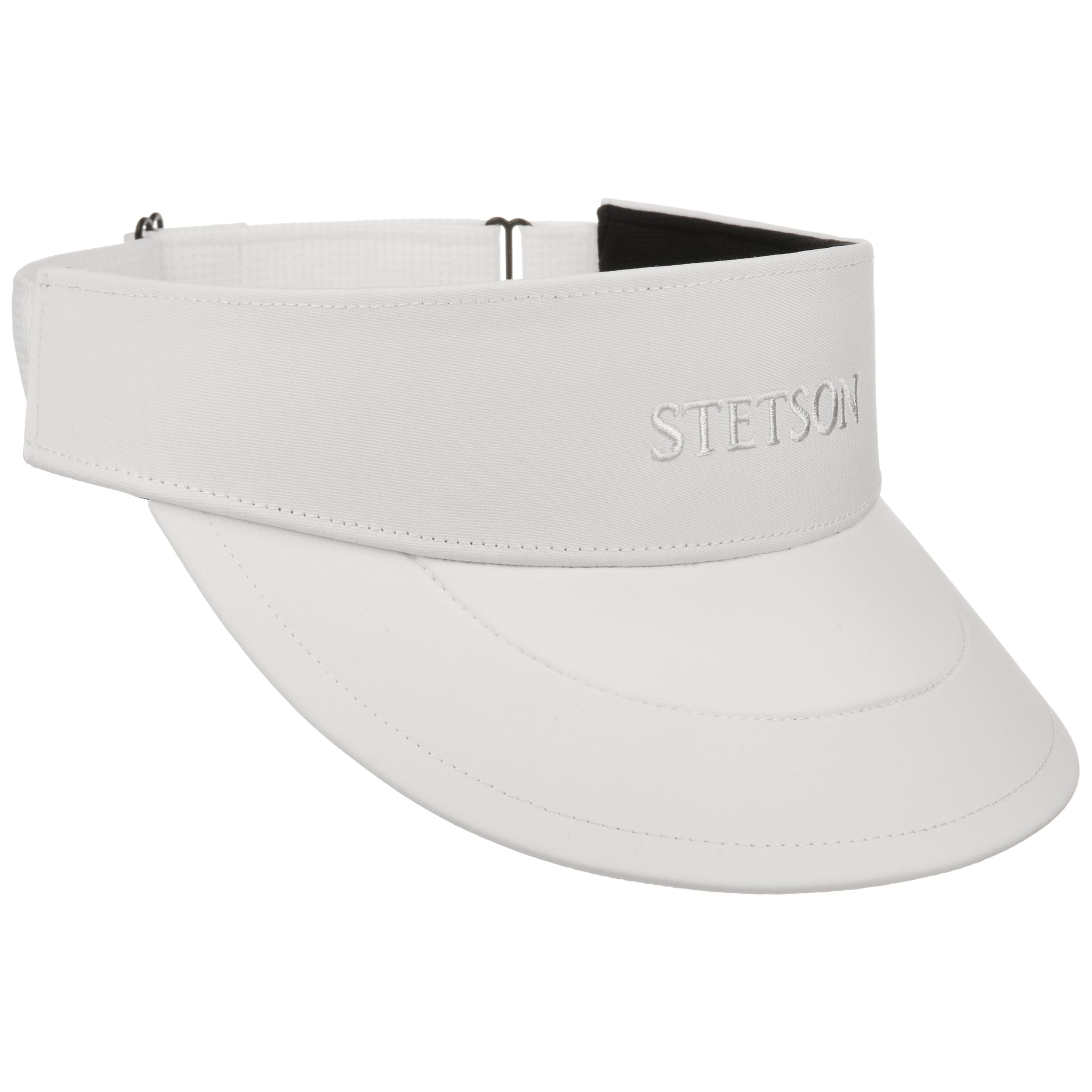 The visor from Stetson is made of sweat-absorbing fabric and is ideal for all sporting activities. A proportion of stretchy elastane gives it a comfortable fit. The size can be adjusted at the back of the head for even more comfort. The curved peak provides protection from the sun`s glare during outdoor sports, while the eye-catching colouring can be combined in a variety of ways.