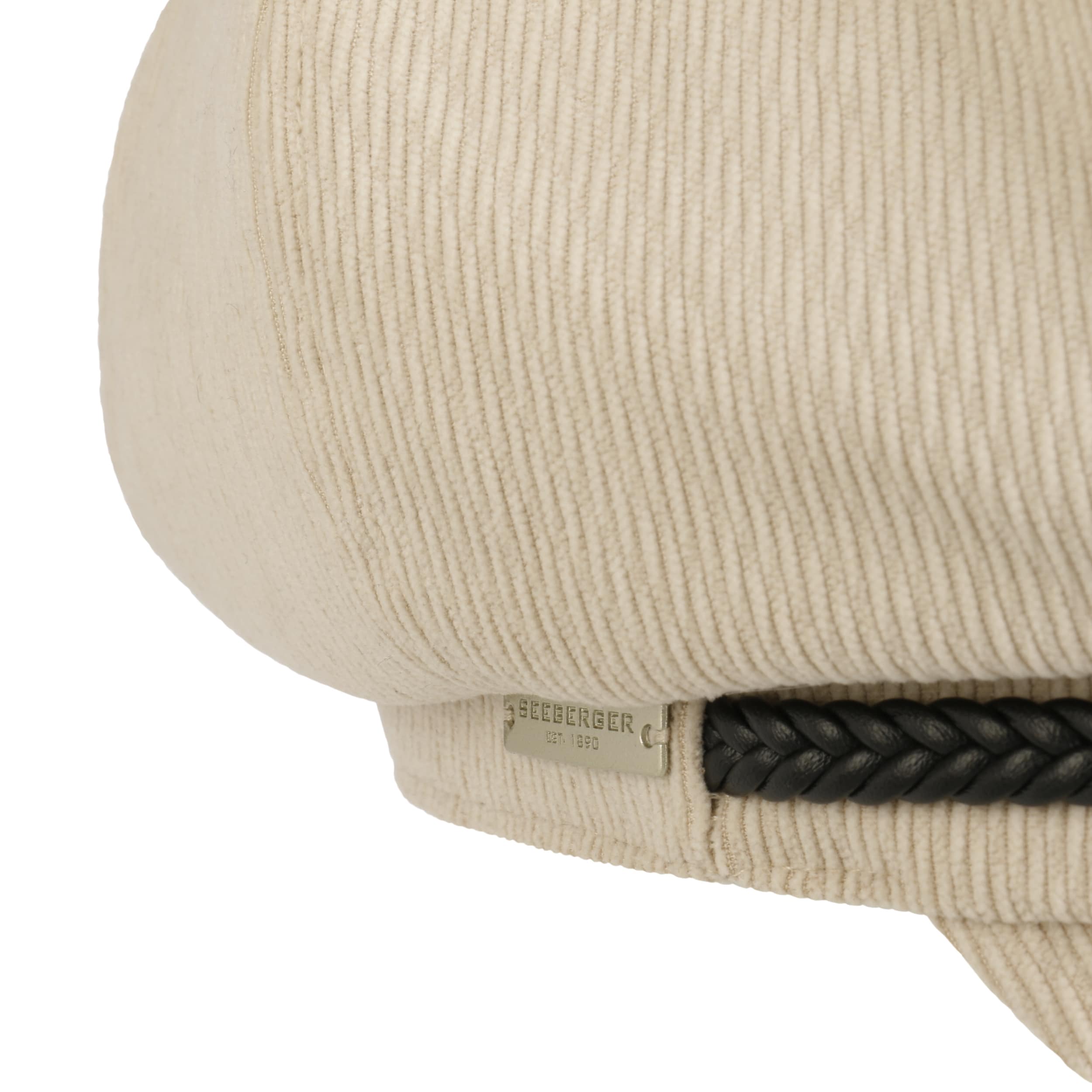 This timeless baker boy cap from Seeberger combines a sense of style with a flattering fit. The refined shape of the peaked cap creates an elegant outline, while the finely textured corduroy made of velvety material makes it particularly comfortable to wear. An integrated stretch lining band provides the perfect fit. The soft cotton lining is another distinctive feature, while the detailed braided decoration gives the hat its feminine charm.