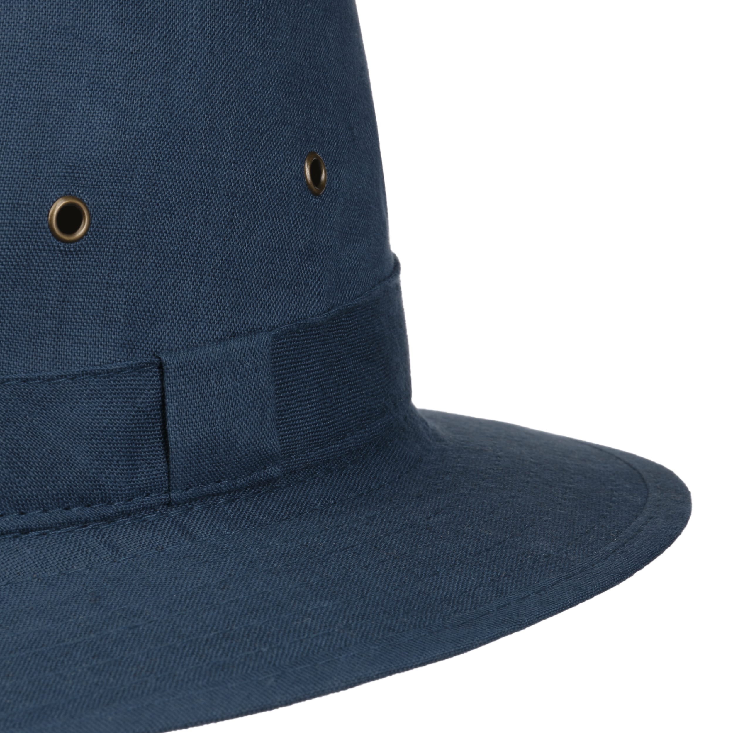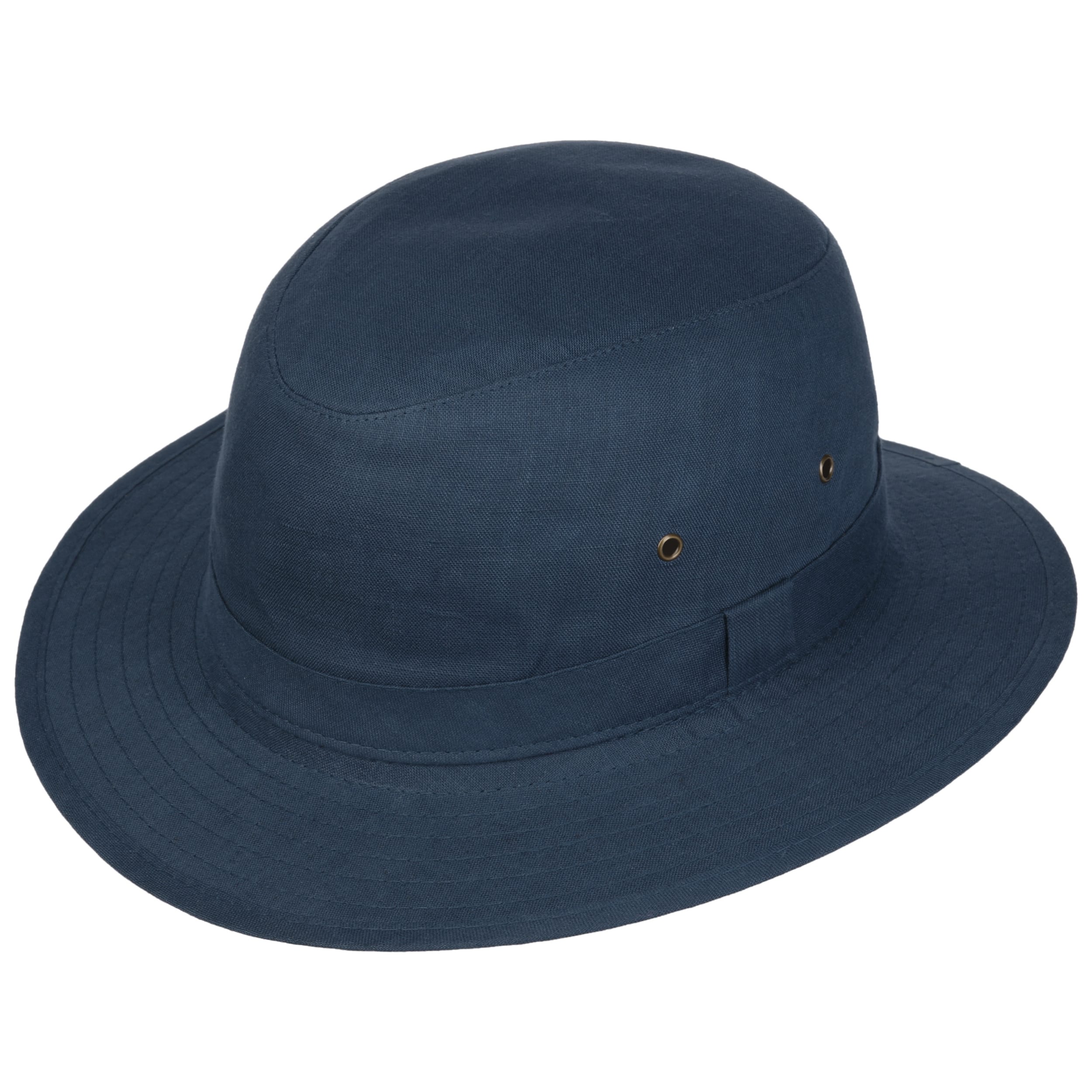 This traveller hat by Lipodo combines linen’s natural temperature-regulating and moisture-wicking properties with metal eyelets for enhanced airflow. Its sleek, unicoloured design and well-shaped crown and brim make it a stylish yet practical choice for men and women.