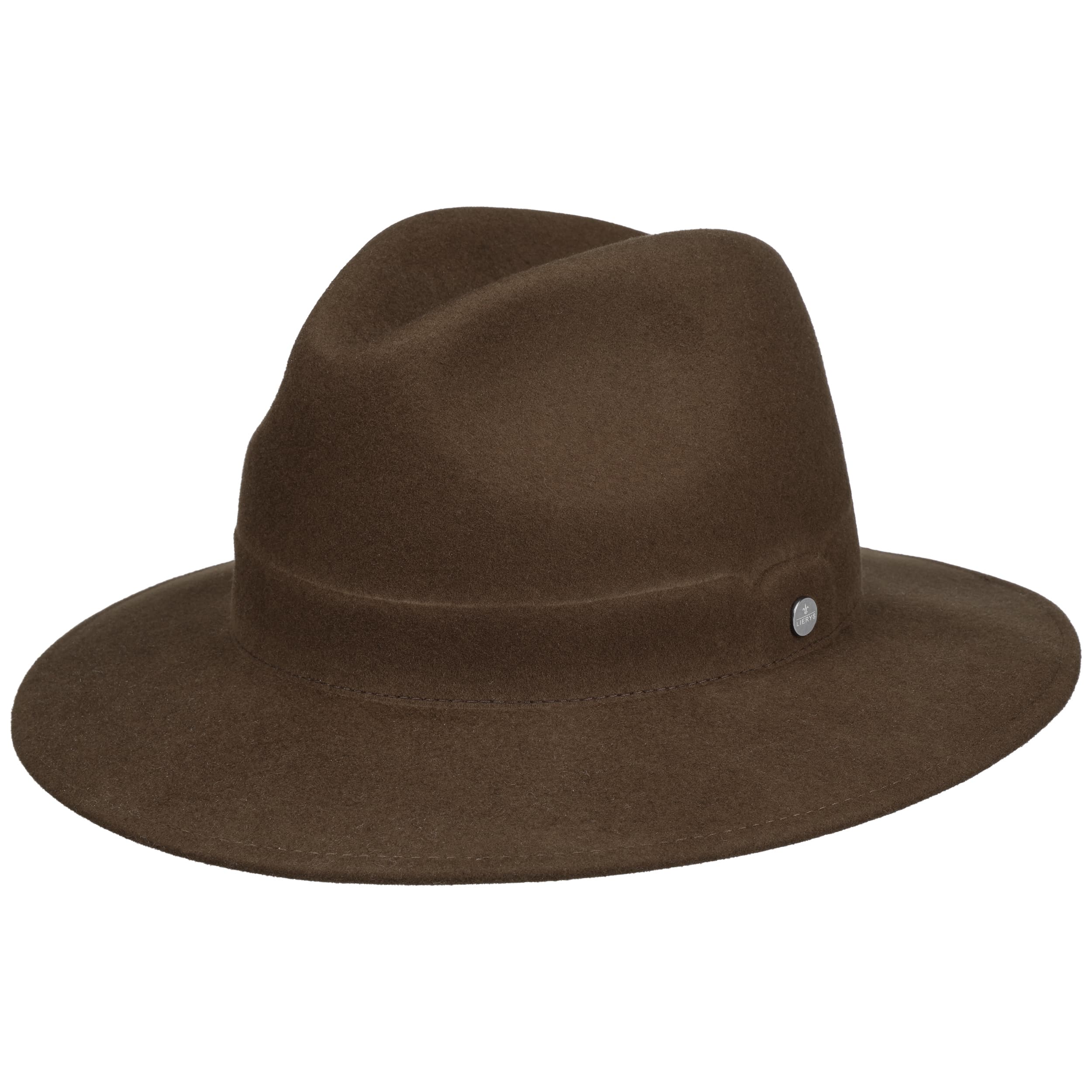 The traveller hat has a classic shape with a wide brim and fine felt yarn band. The Lierys brand name is a byword for timeless understatement that will impress on a walk in the park as well as on urban adventures. High-quality wool felt with a cashmere-soft feel is comfortable to wear and provides reliable protection against wind and weather. The simple, single-colour design allows for numerous possible combinations. Made in Italy, this felt hat impresses with its authentic craftsmanship.