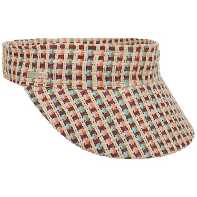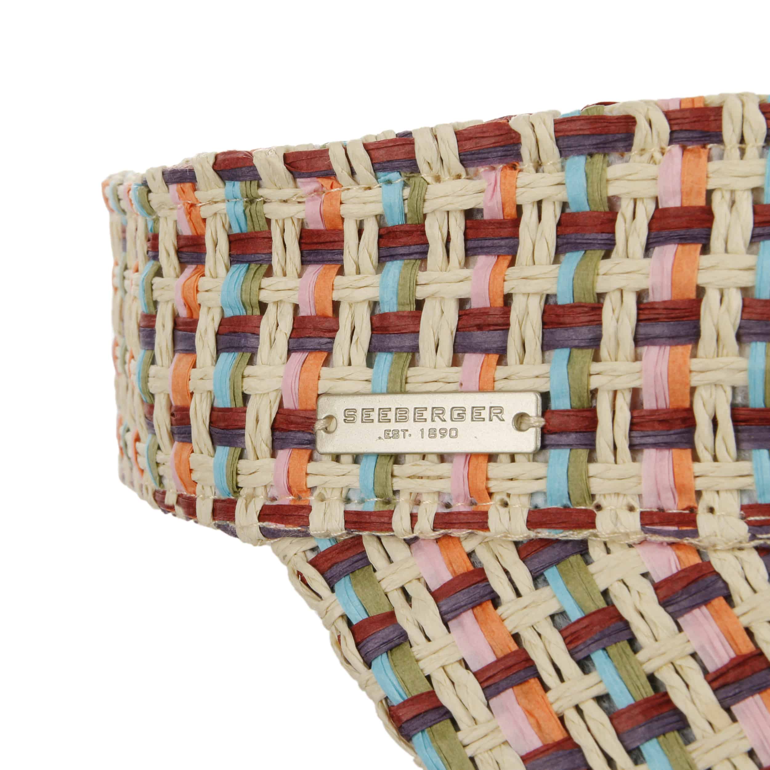 Paper straw gives the Seeberger visor a light summer feel. It provides shade to the face and nose while fresh air flows through the hair. Crafted from vibrantly patterned woven straw, this cap offers a fashionable touch for sunny days.