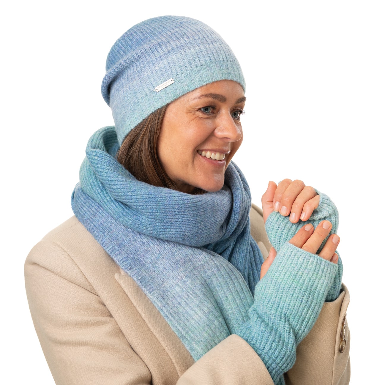 The family-owned entreprise from Allgaeu established in 1890 is known for stylish and timeless women's headwear. Using sophisticated fabrics pleasant to wear, Seeberger stands for very feminine, eye-catching women's hats: winter caps, cloth hats as well as different types of baker boy hats, broadbrimmed hats and berets.- Veliva Knit Scarf by Seeberger - beige 1