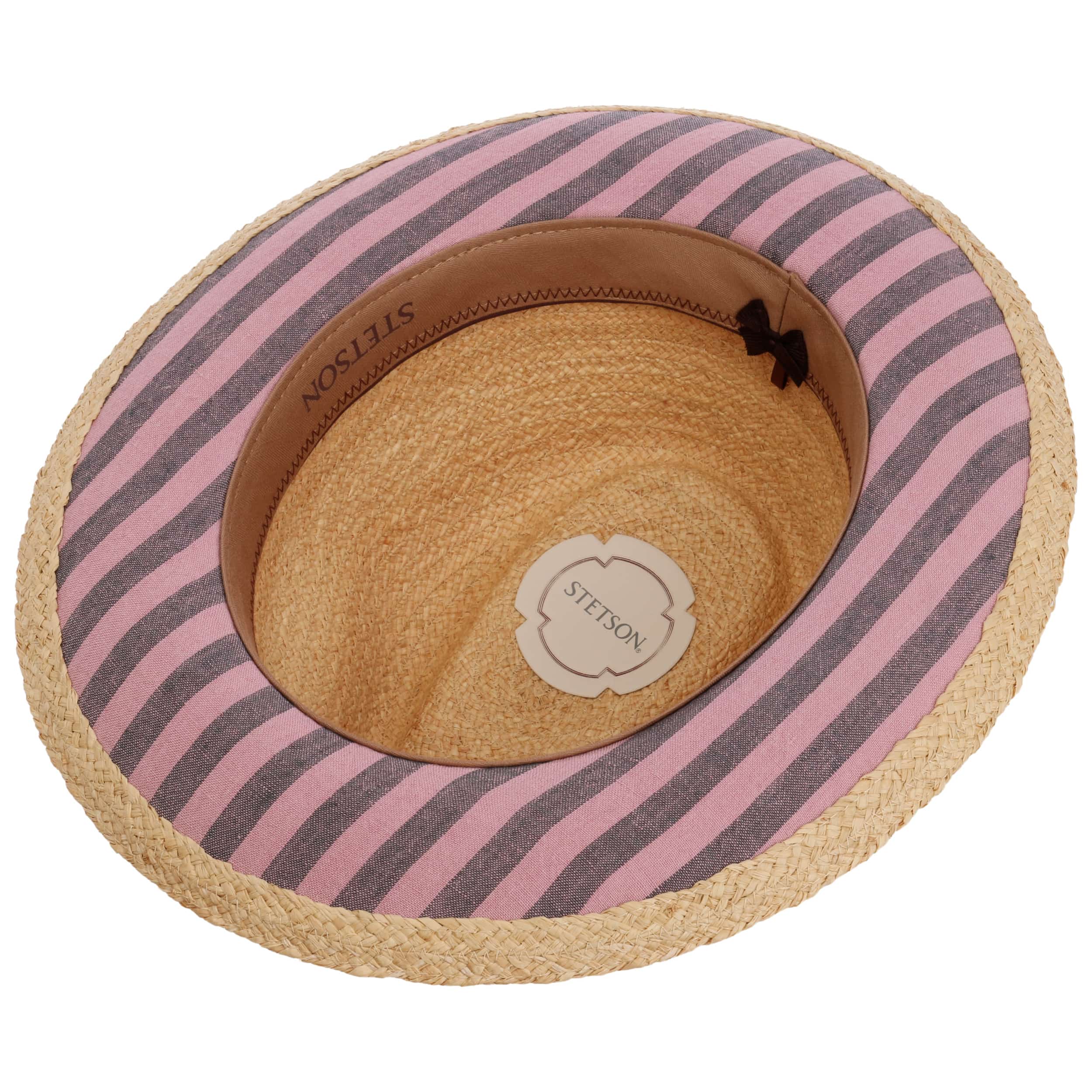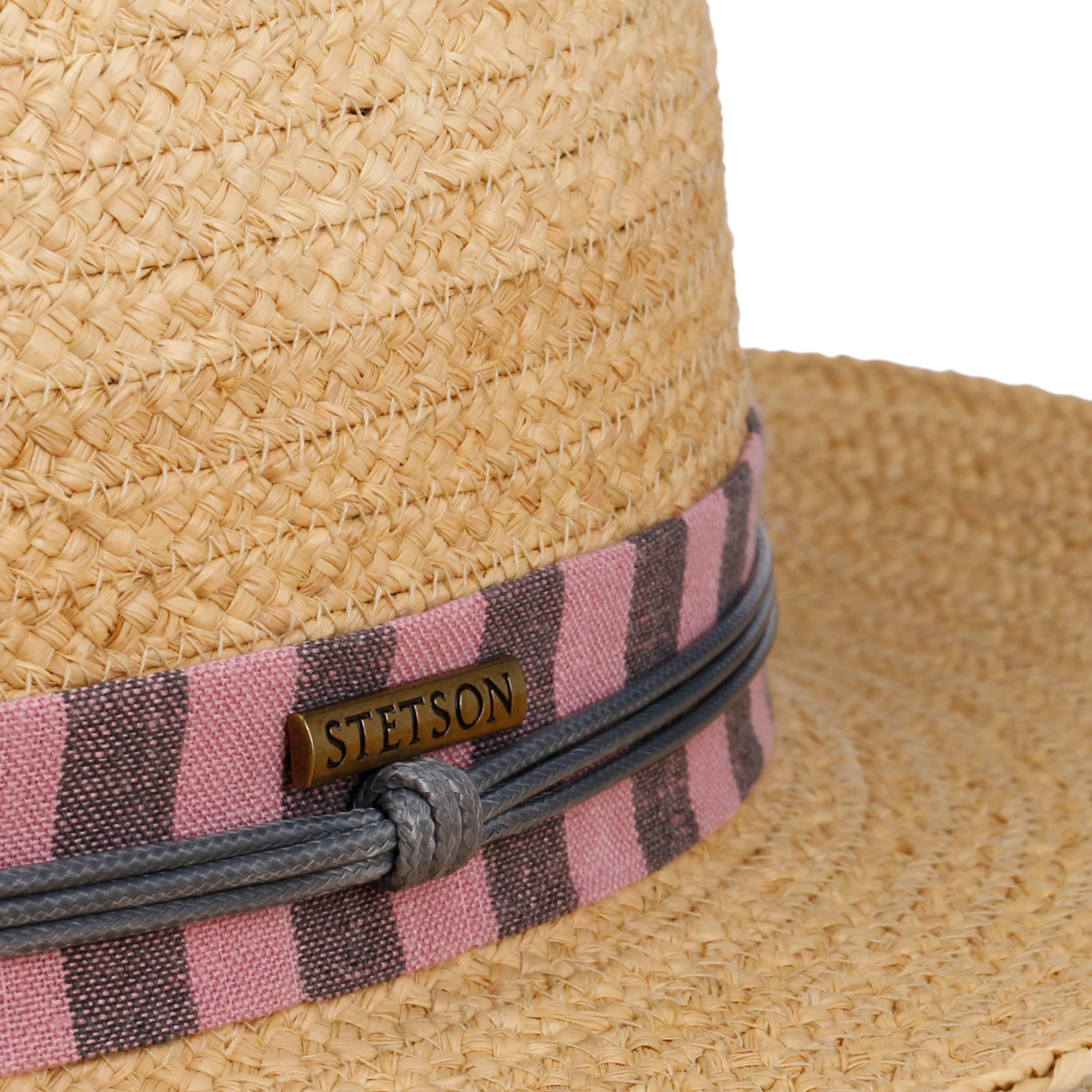 Since 1865, the name of John B. Stetson has been a synonym for best quality cowboy and Western hats. With the increasingly popular VitaFelt and VitaStraw collections, the U.S. brand has become pioneer of lightweight, water repellent and packable headwear. In the meantime, Stetson manufactures a wide range of first-class styles: army and baseball caps, flat hats, docker caps, beanies, trilbies and cowboy hats in many different designs.- Veluro Fedora Raffia Hat by Stetson - nature-pink 1