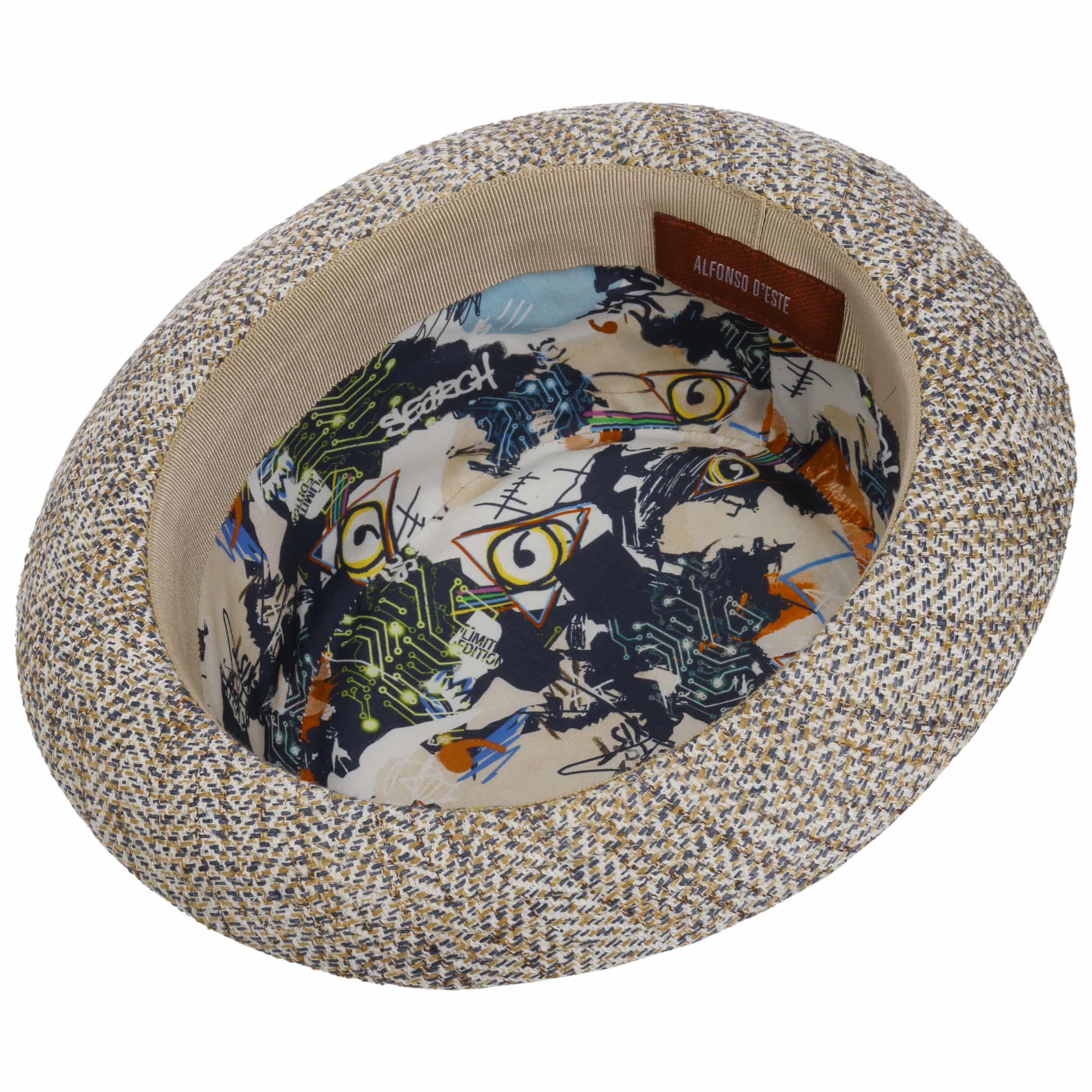 With a variety of elegant hat and cap styles, the long-established brand Alfonso D´Este offers la dolce vita to wear. The designers and founders of the Italian hat company Salvatore Marciano and Vincenzo Marcellino create classic headwear in a contemporary design for the modern wardrobe. With attention to detail, high-quality materials are processed in Italy from superb craftsmanship to create exquisite one-of-a-kind pieces. In Alfonso D´Este's first-class range, sophisticated patterns meet authentic hat classics and promise a tasteful look, from flat caps to berets and fedoras.- Vendello Pork Pie Cloth Hat by Alfonso D’Este - beige-blue 1